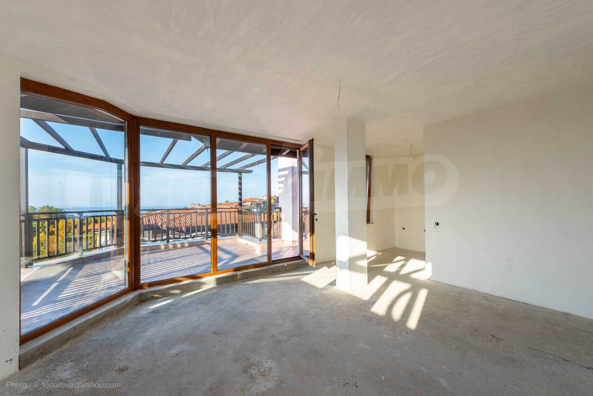 We present a panoramic three-room apartment of 159.21 m2 for sale, in a new complex, located in the middle of a pine forest, only 250 meters from "Tsarski Zaliv" and "Zlatna Ribka" beach, minutes by car from the city of Sozopol.