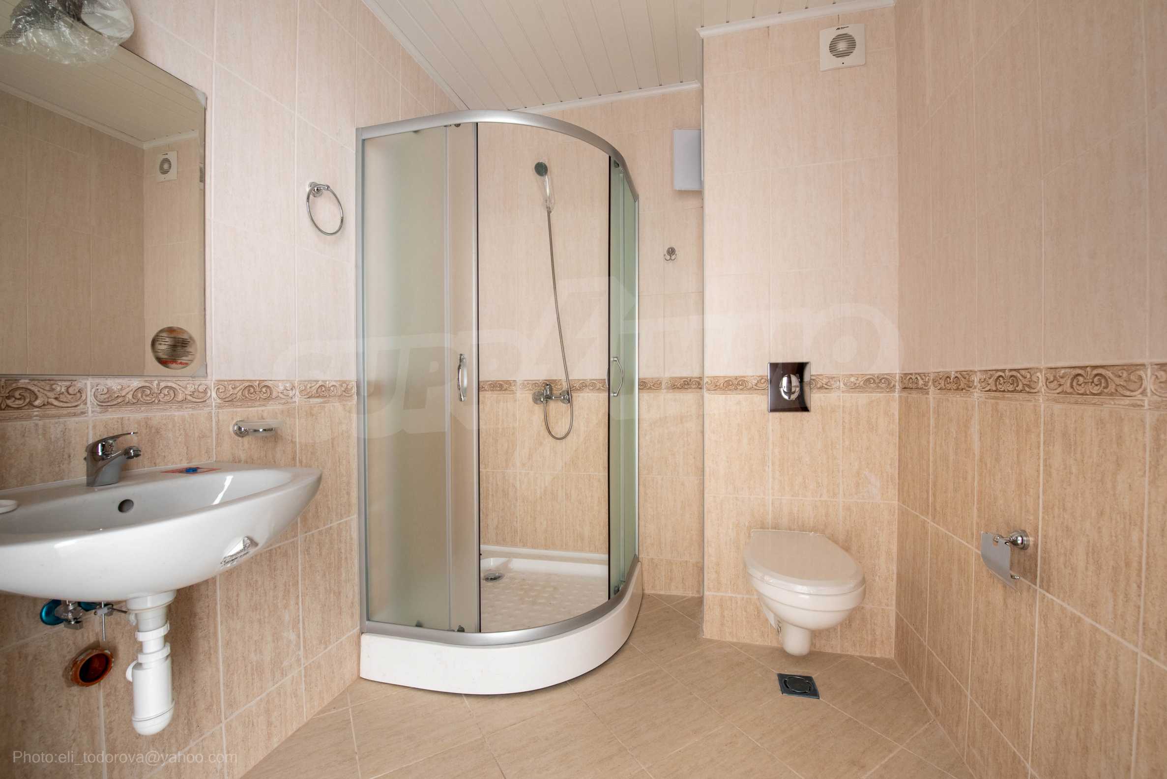 We present a studio of 51.22 square meters in a new complex, located in the middle of a pine forest, only 250 meters from "Tsarski Zaliv" and "Zlatna Ribka" beach, minutes by car from the city of Sozopol.