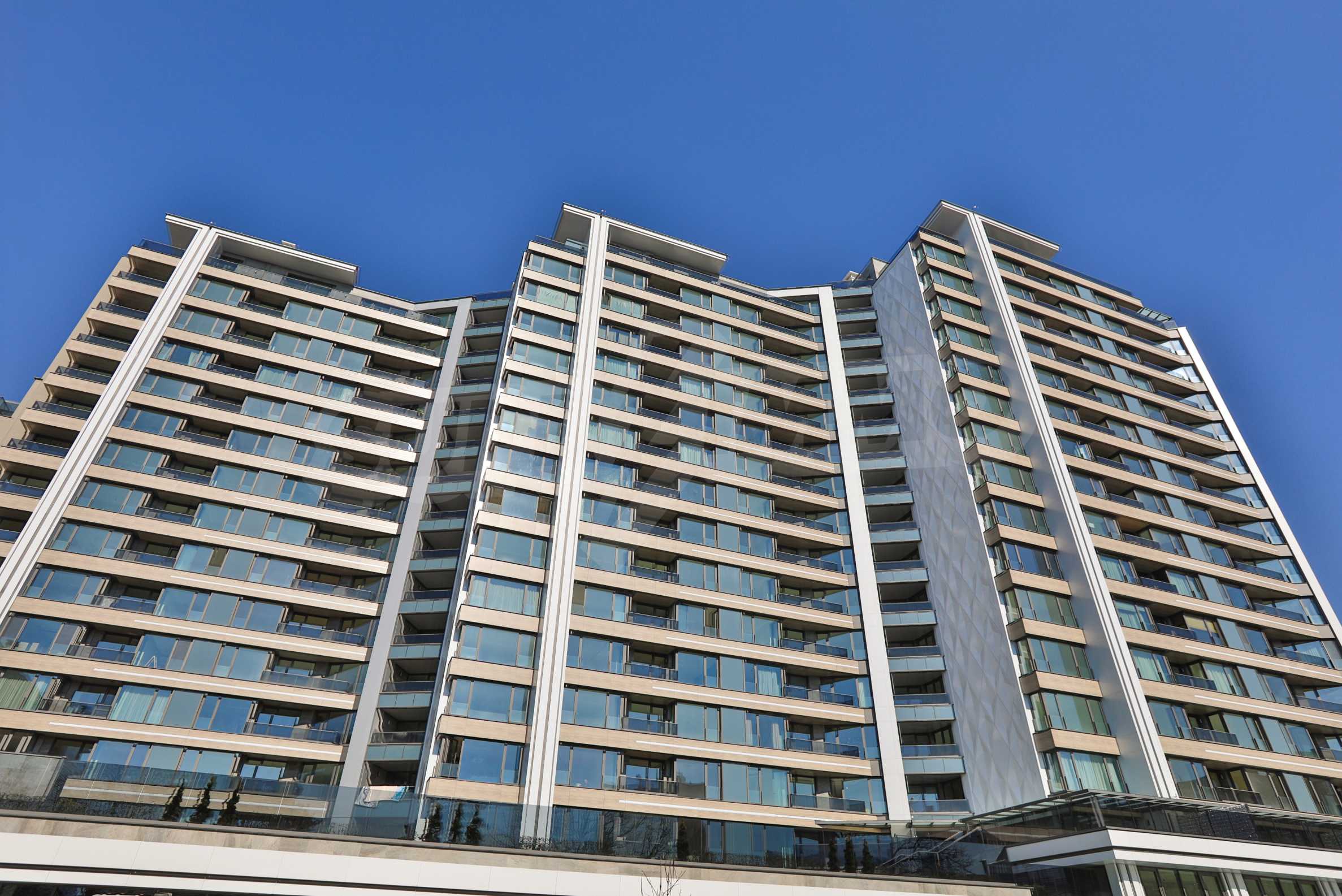 The building stands out with a modern look, combined with luxurious common areas and additional amenities for residents.