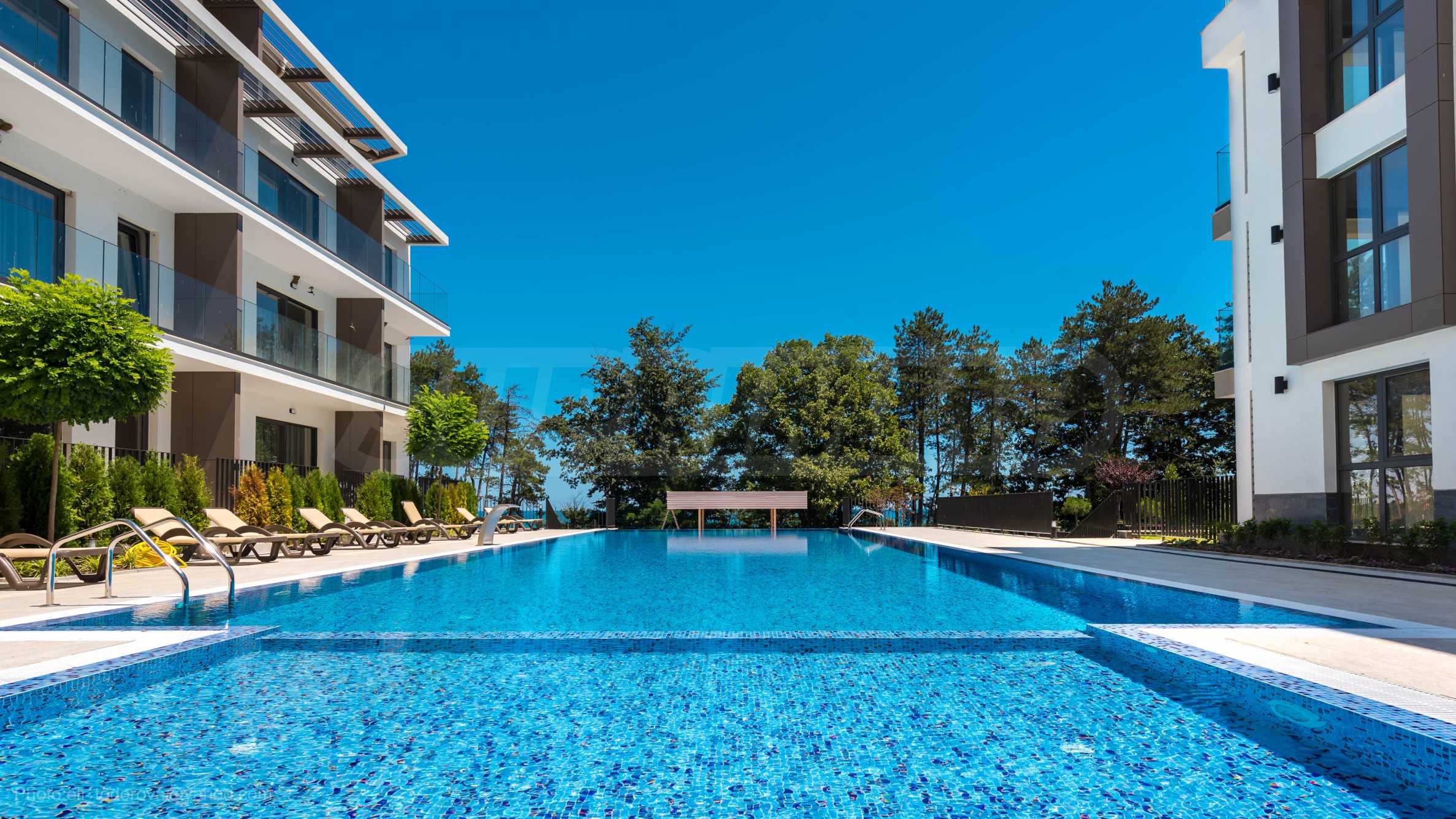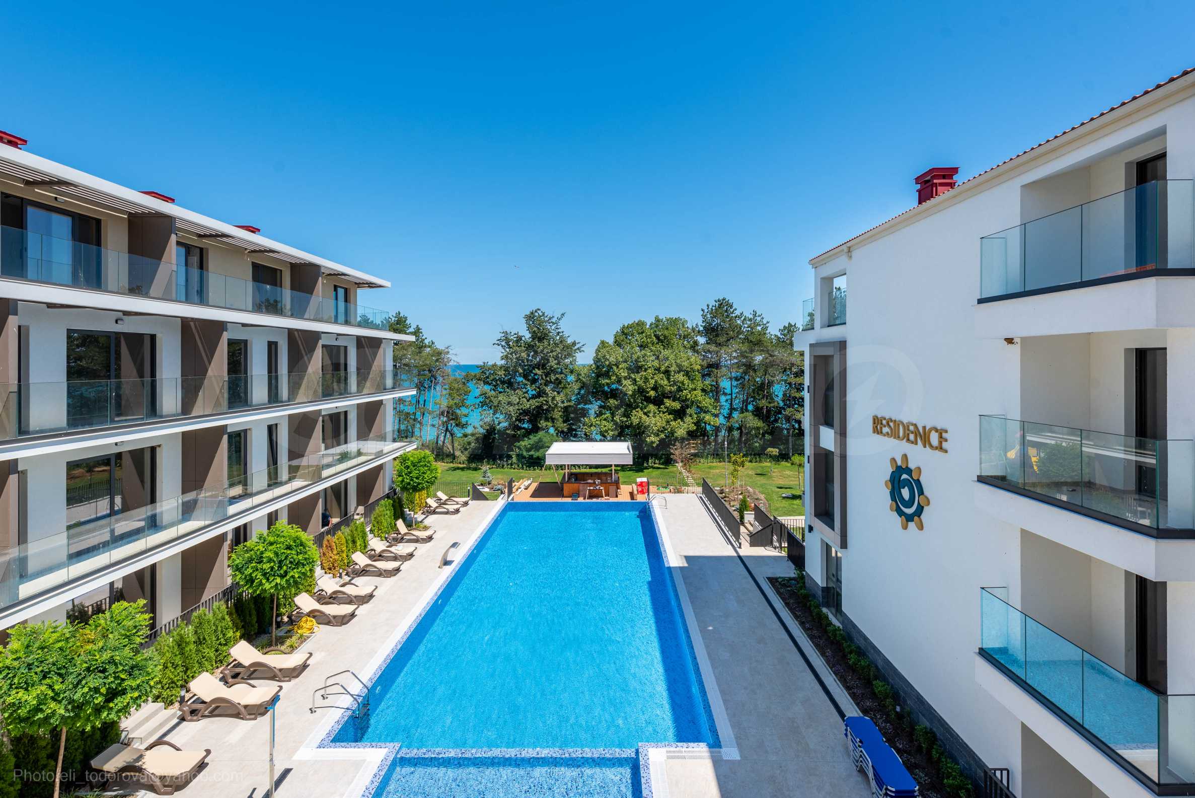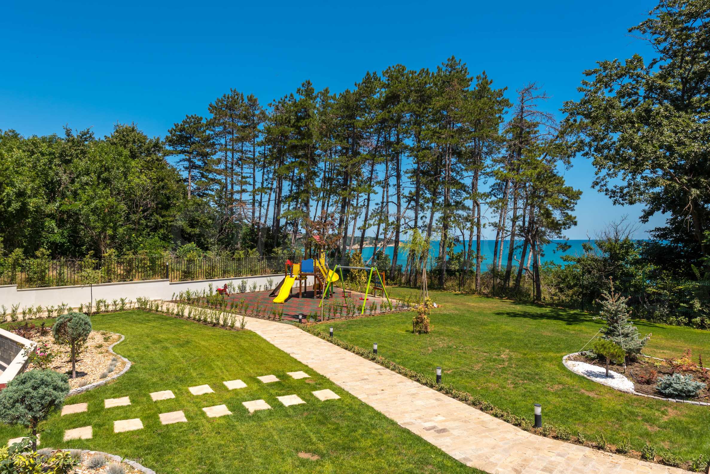 The project consists of 2 boutique buildings, situated on the beach, and the beach is reached by a picturesque path - the rocky shore in the pine forest. Near it are five-star hotels that have all the necessary infrastructure for recreation (shops, restaurants, fitness centers, SPA salons), as well as fully equipped spacious beaches, access to which, according to Bulgarian law, is open to all comers.