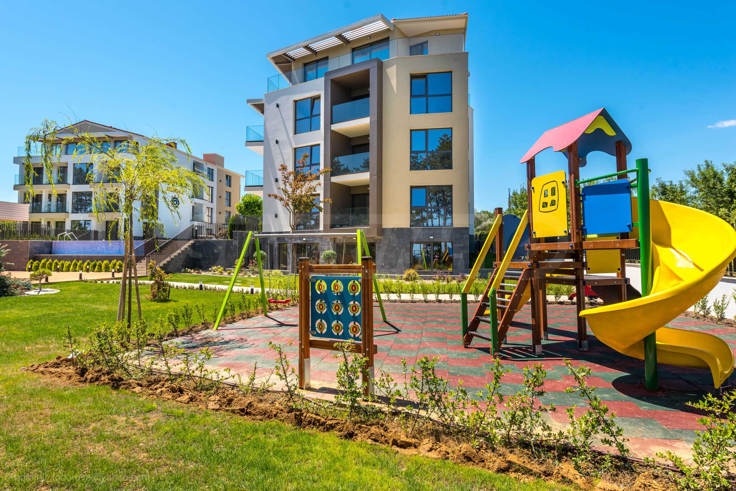 The impressive residential and holiday complex in which the property is located, is completed by the summer season 2022. The location is convenient for both recreation and living, just 3 minutes from the infrastructure of Byala, and with quick access by car and to town of Obzor.