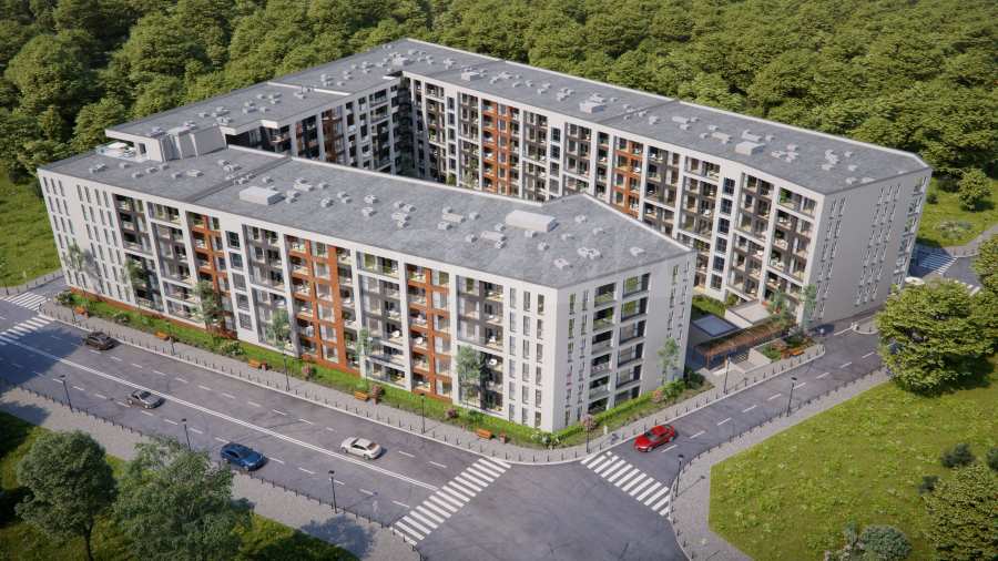 The complex consists of 7 entrances, 2 underground floors with garages and parking spaces and 6 above-ground residential floors with one-, two-, three- and four-bedroom apartments.