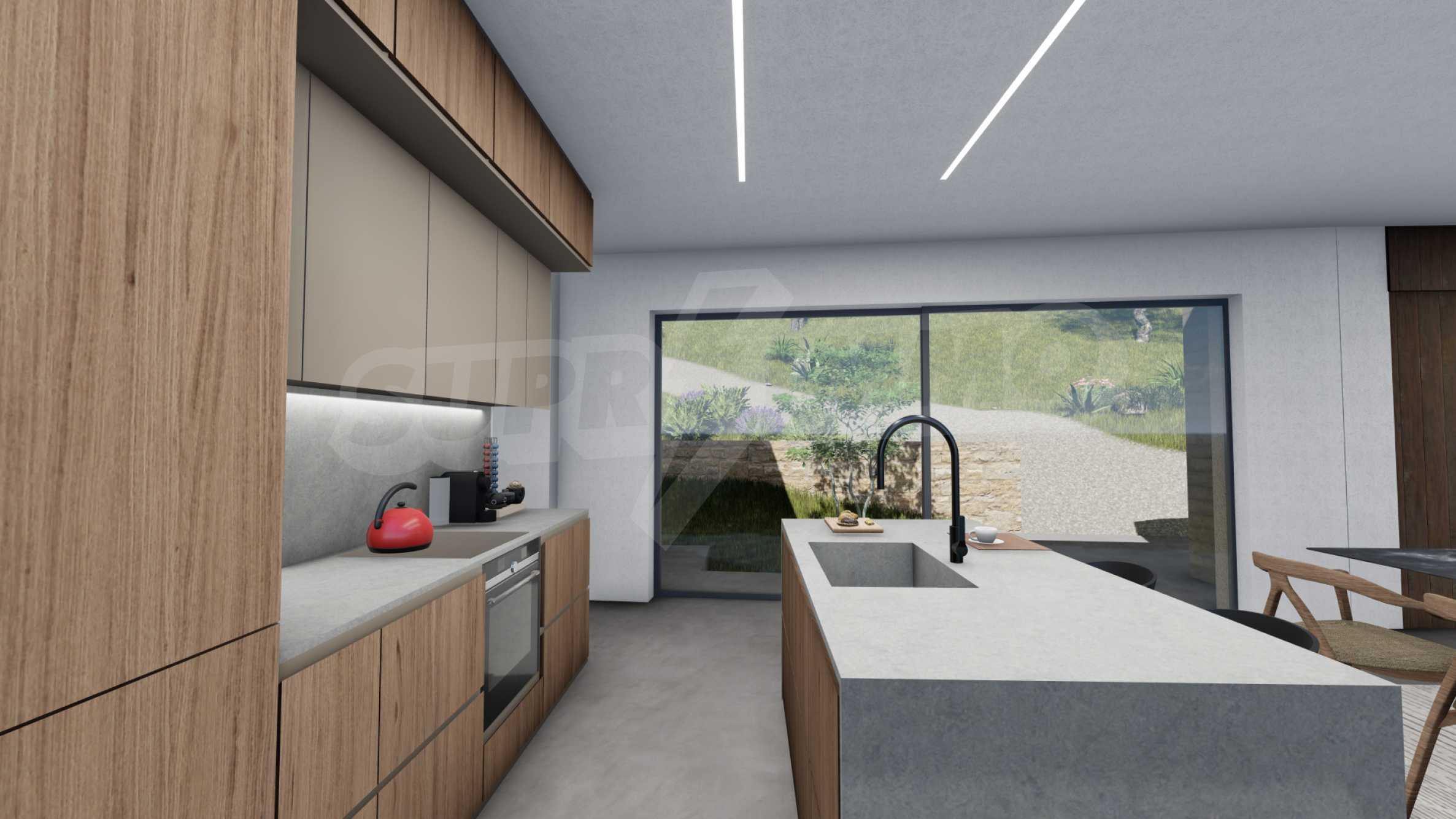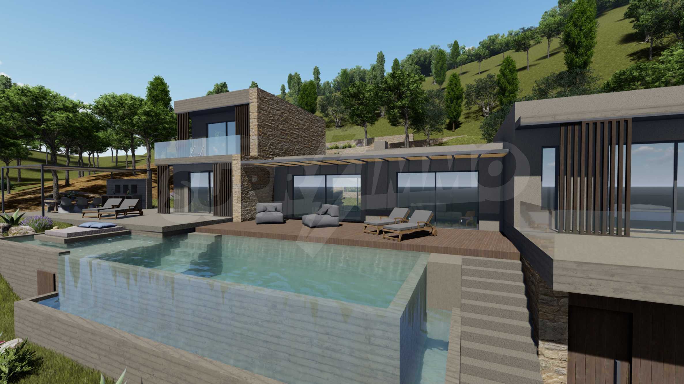 The villa is designed and built to the highest possible standards. Clean lines and comfort are at the heart of its design. The construction materials used are of the highest class. According to our vision, the architecture of the house is inspired by the local style, use as much local materials as possible - mainly stone, wood and sand. We respect nature and our desire is to coexist in harmony with it. Some functional solutions rely on renewable sources - solar panels, rainwater tanks and heat pumps. We care for what existed hundreds of years before us, so in some cases we move and transplant old olive trees when possible and necessary.
