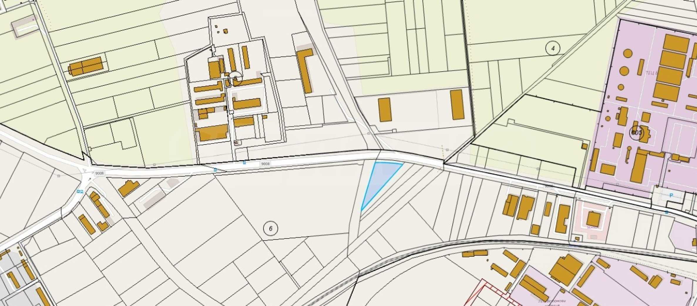 The plot is regulated and has a 74-meter access to the main road. Near the property there is a Citroen service station, Burgastsvet and a car morgue.