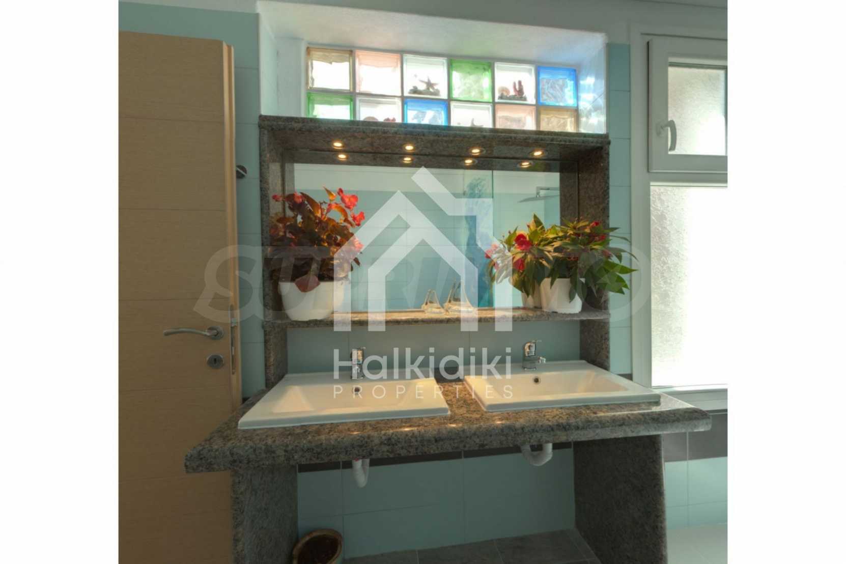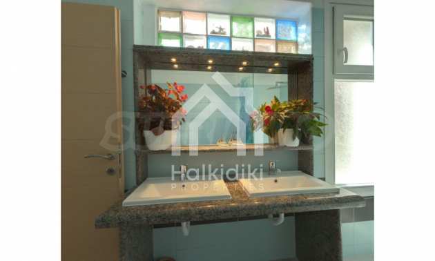 Luxury Residency. Unique detached house in a complex in walkable distance from the sea, at a remarkable spot in Kassandra , in the heart of Halkidiki. The property is located in an area of 700 sq.m. in a distance of 4.3 .km from the center of the village It consists of 2 levels with a total of 156 sq.m. of living area. The property includes 4 bedroom(s) and 5 bathrooms(s)