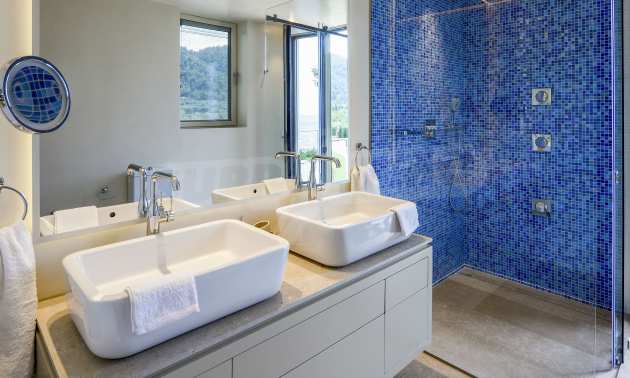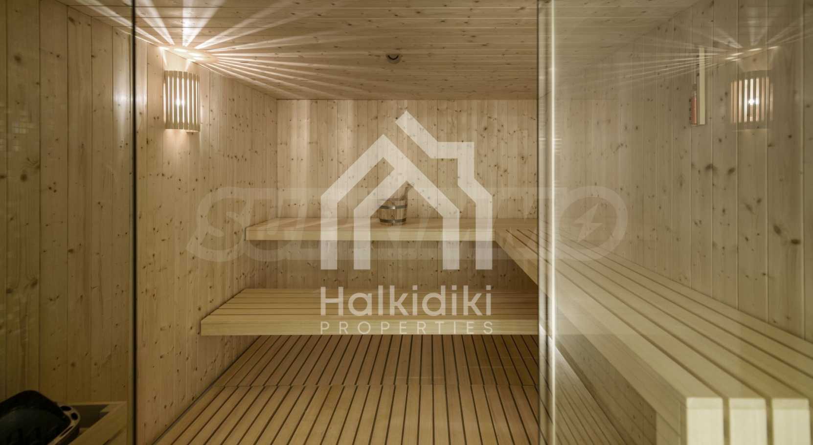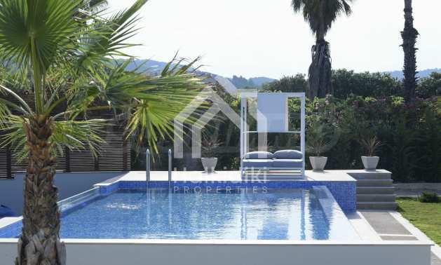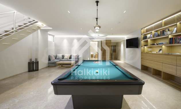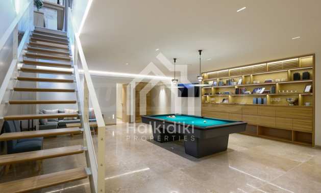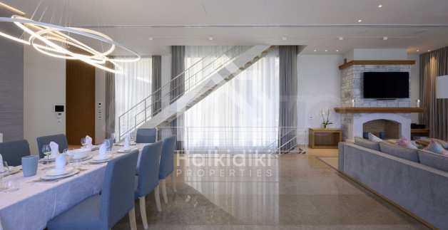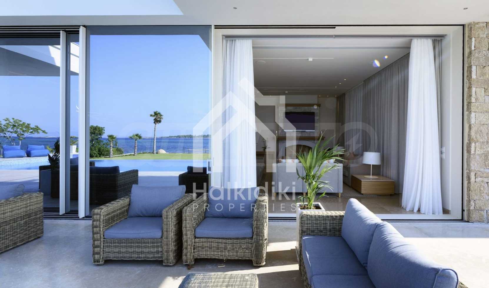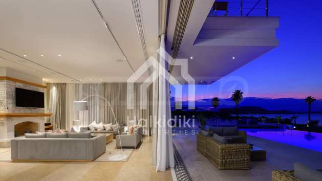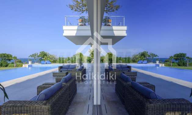 Luxury Residency. Beautiful detached house with swimming pool, In front of the sea, at a very beautiful spot in Sithonia , in the heart of Halkidiki. The property is located in an area of 9599.44 sq.m. , with an amazing sea view, in a distance of 1.3 .km from the center of the village It consists of 3 levels with a total of 1000 sq.m. of living area. The property includes 8 bedroom(s) , 2 WC. , storage and 8 bathrooms(s)