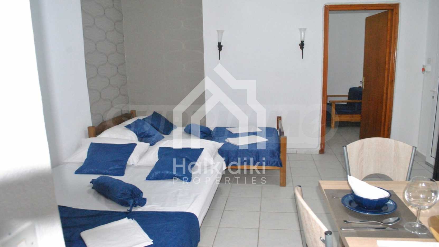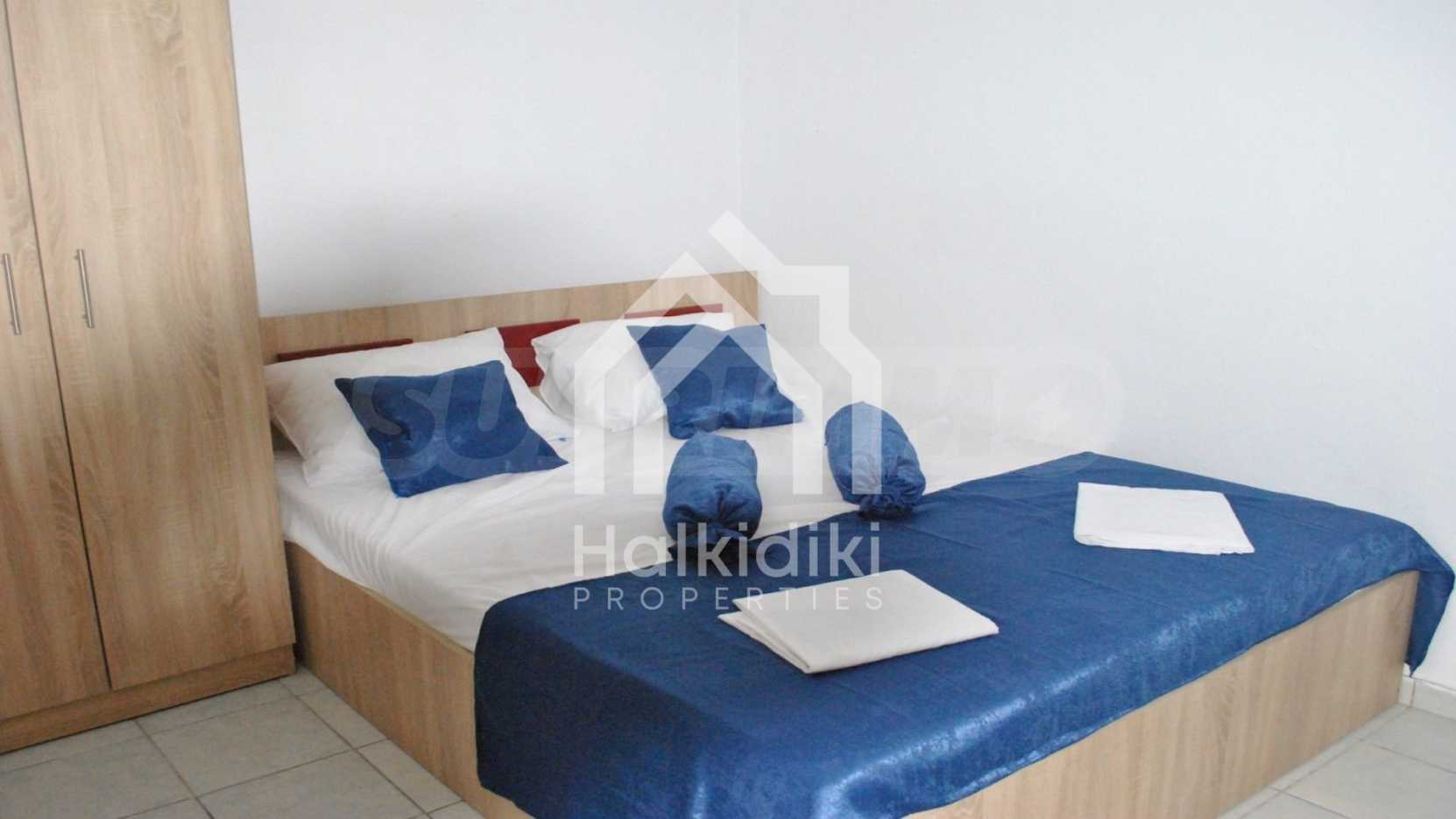 These are two beautiful apartments. The properties are within walking distance from the sea, in an amazing location in the Municipality of Kassandra in Halkidiki. They are located 100m from the center of the village and a very short distance from a beautiful beach. The two apartments are located on the ground floor and the first floor. Each apartment consists of a living room, a bedroom and a bathroom. They are fully furnished and equipped with all electrical appliances.