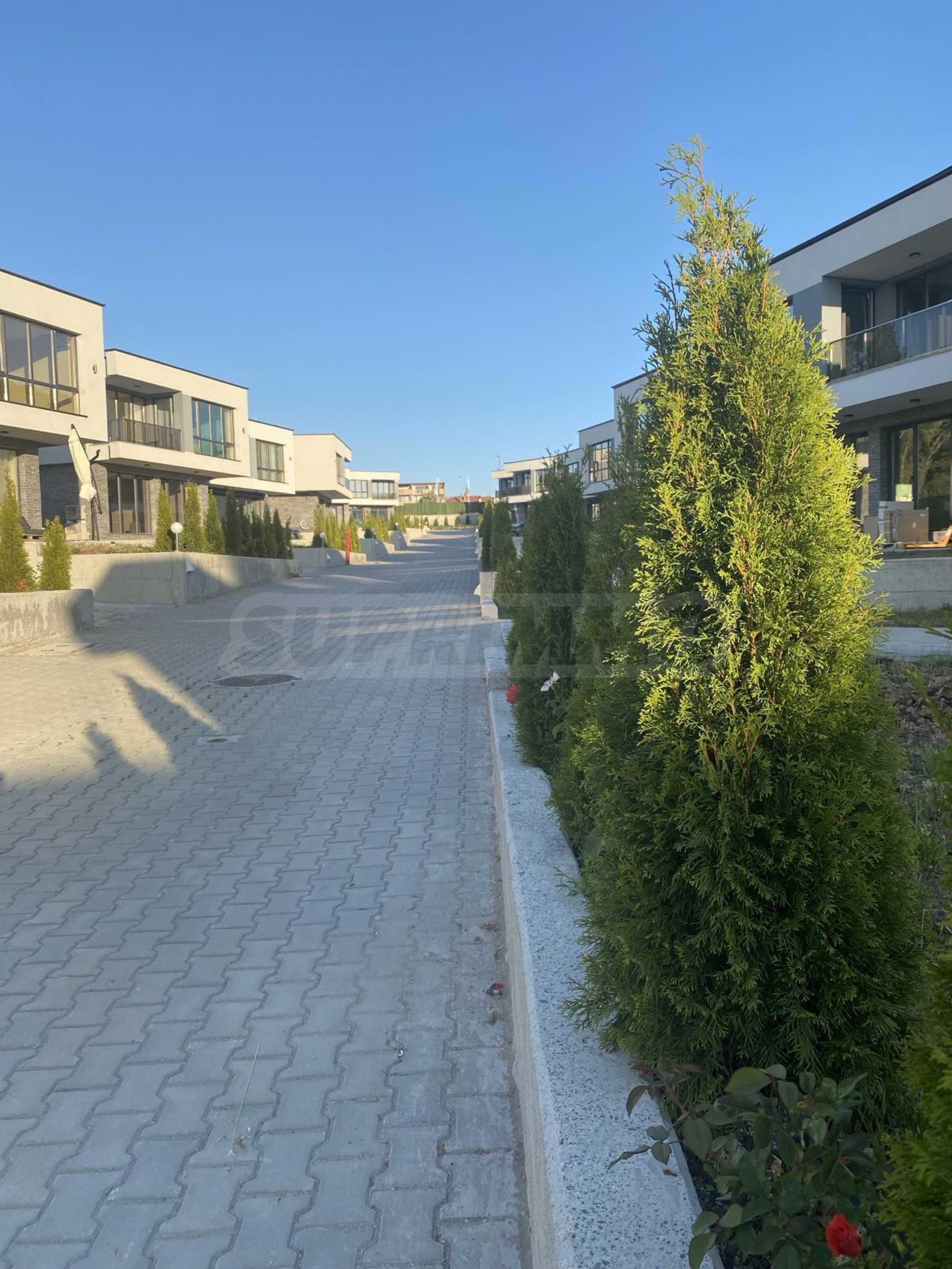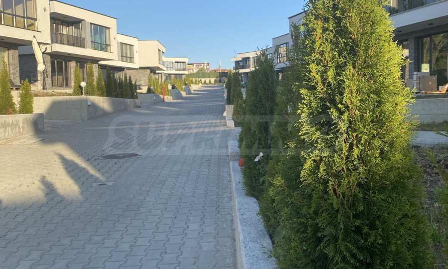 The plot of each house has a parking space and a courtyard with an area of 178 m2 to 364 m2. The complex has an irrigation system with drip irrigation and sprinklers for each house, with individual electronic programmers.