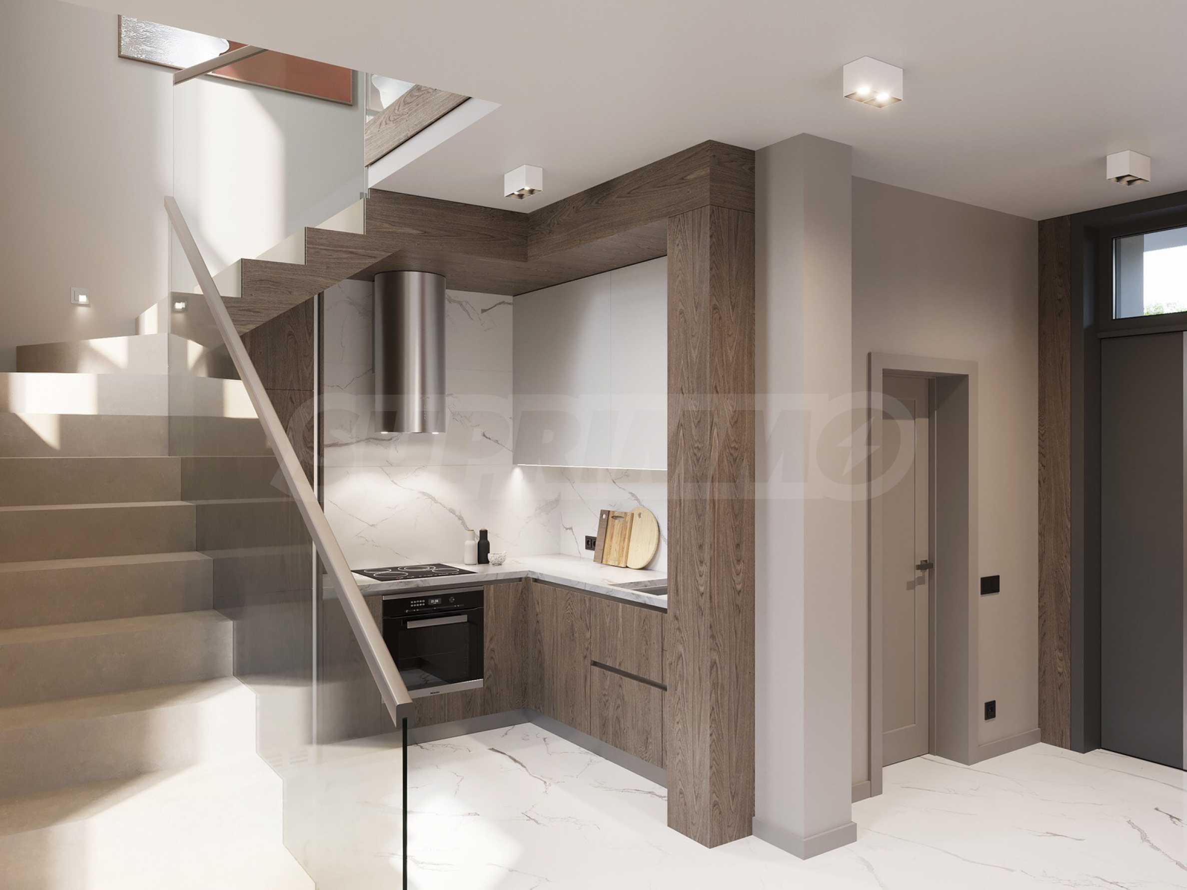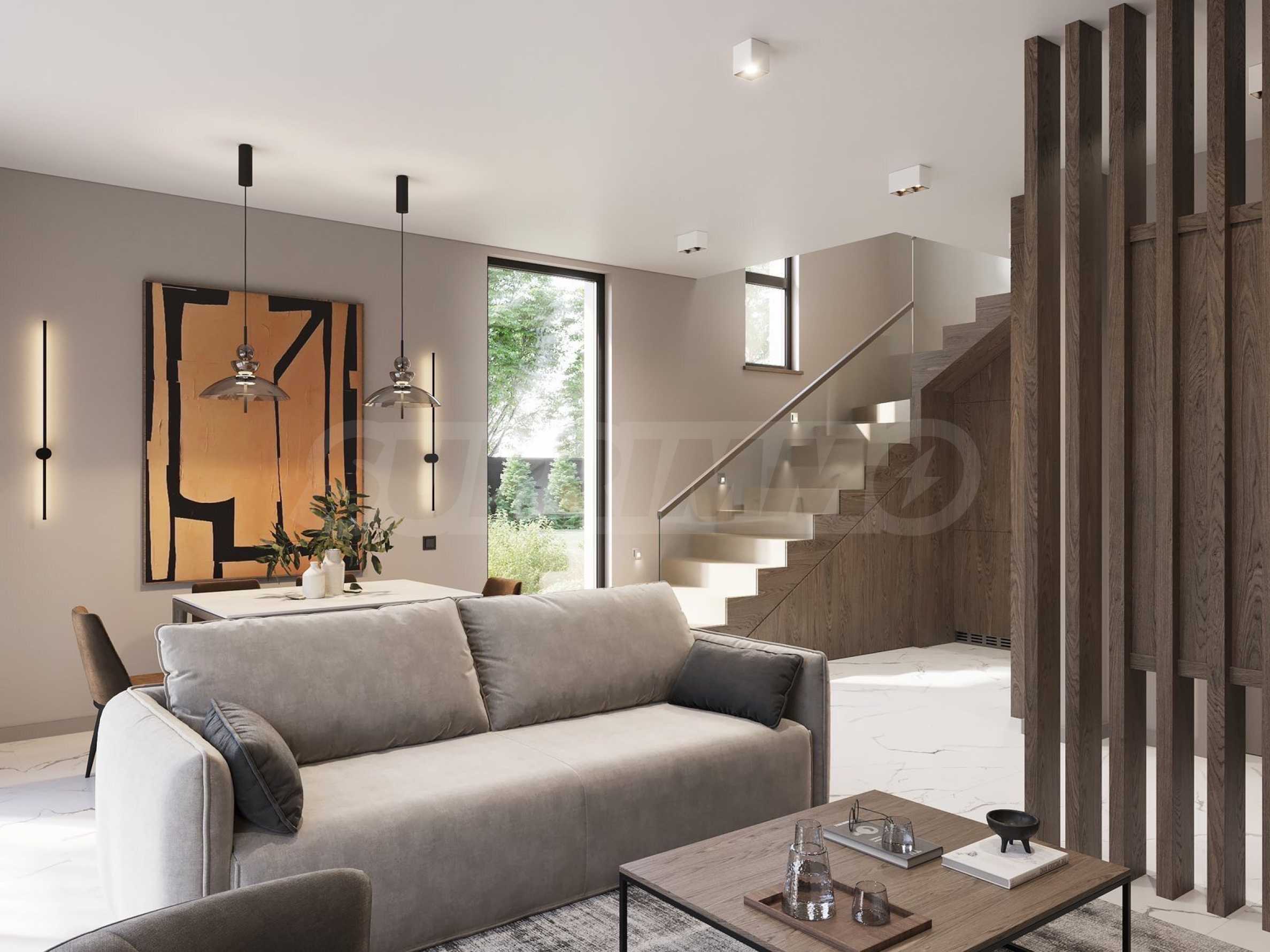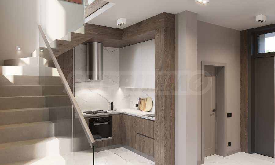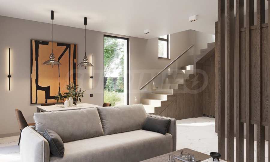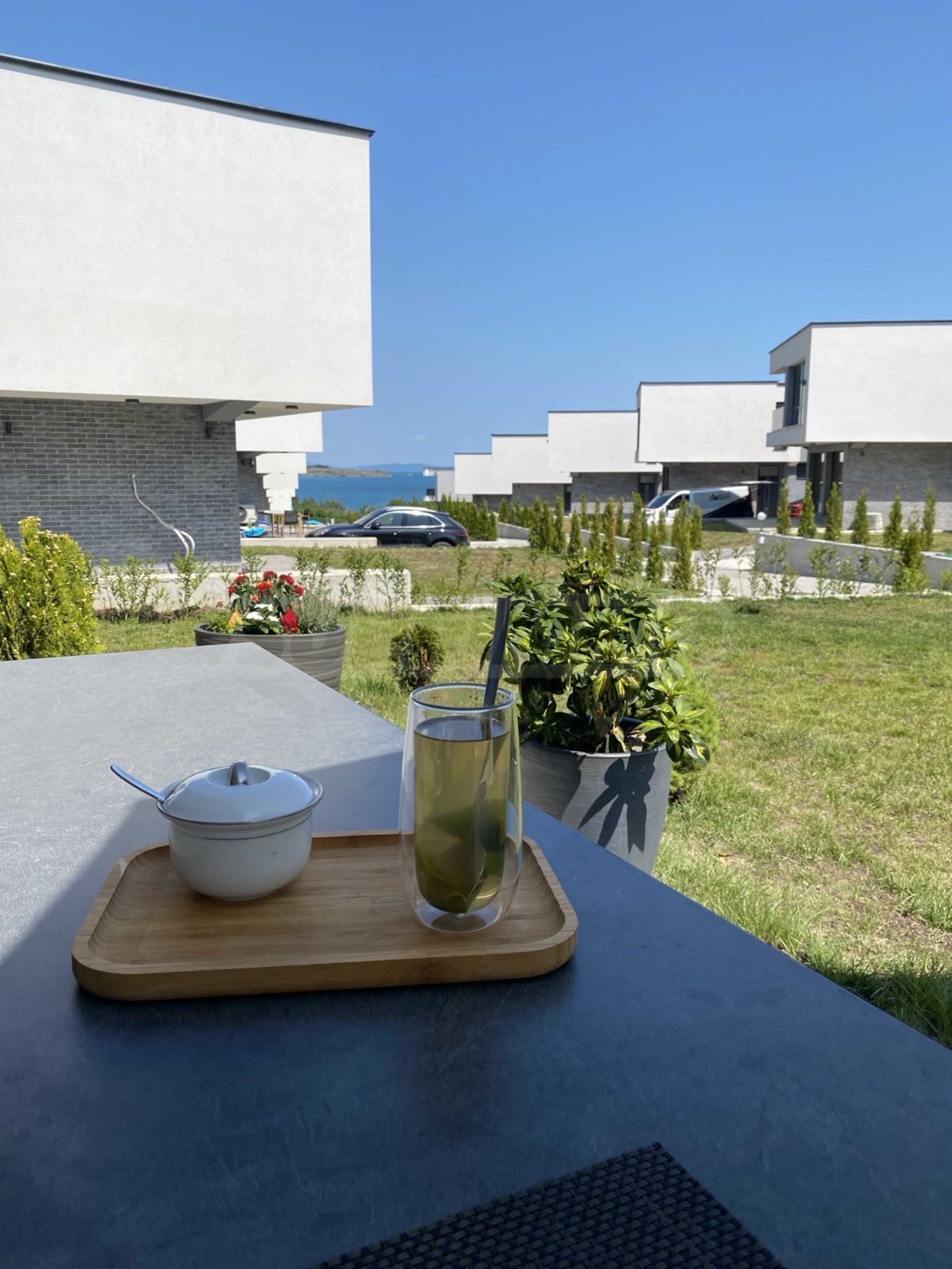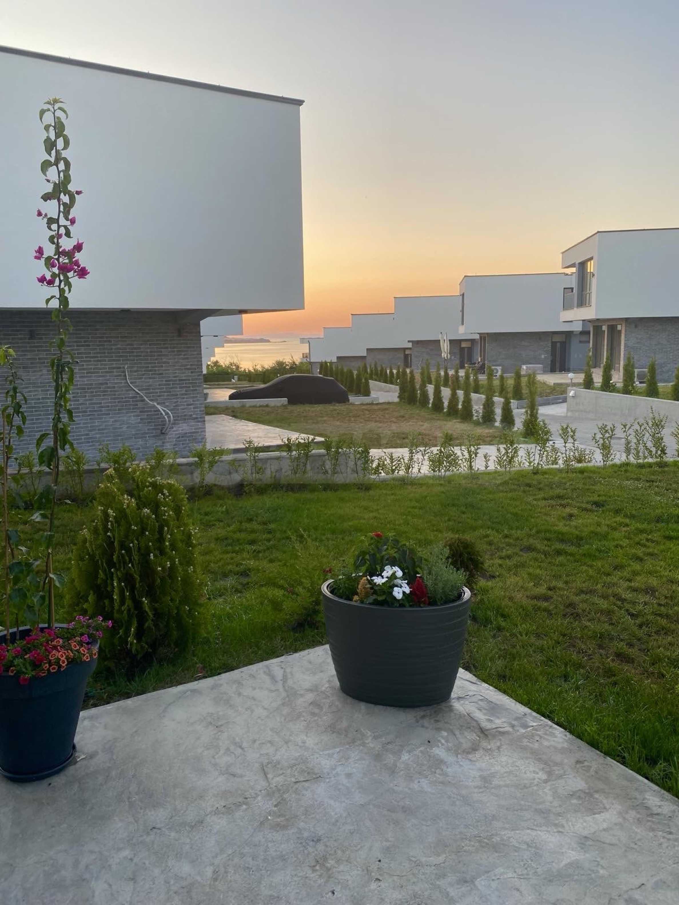 The houses are located on a plot of land with a total area of 8,611 m2., in which 20 plots of land and an internal street are distributed. Thanks to the natural unevenness of the terrain, the complex is designed as a terrace, and from every house you will have incredible panoramic views of the sea.