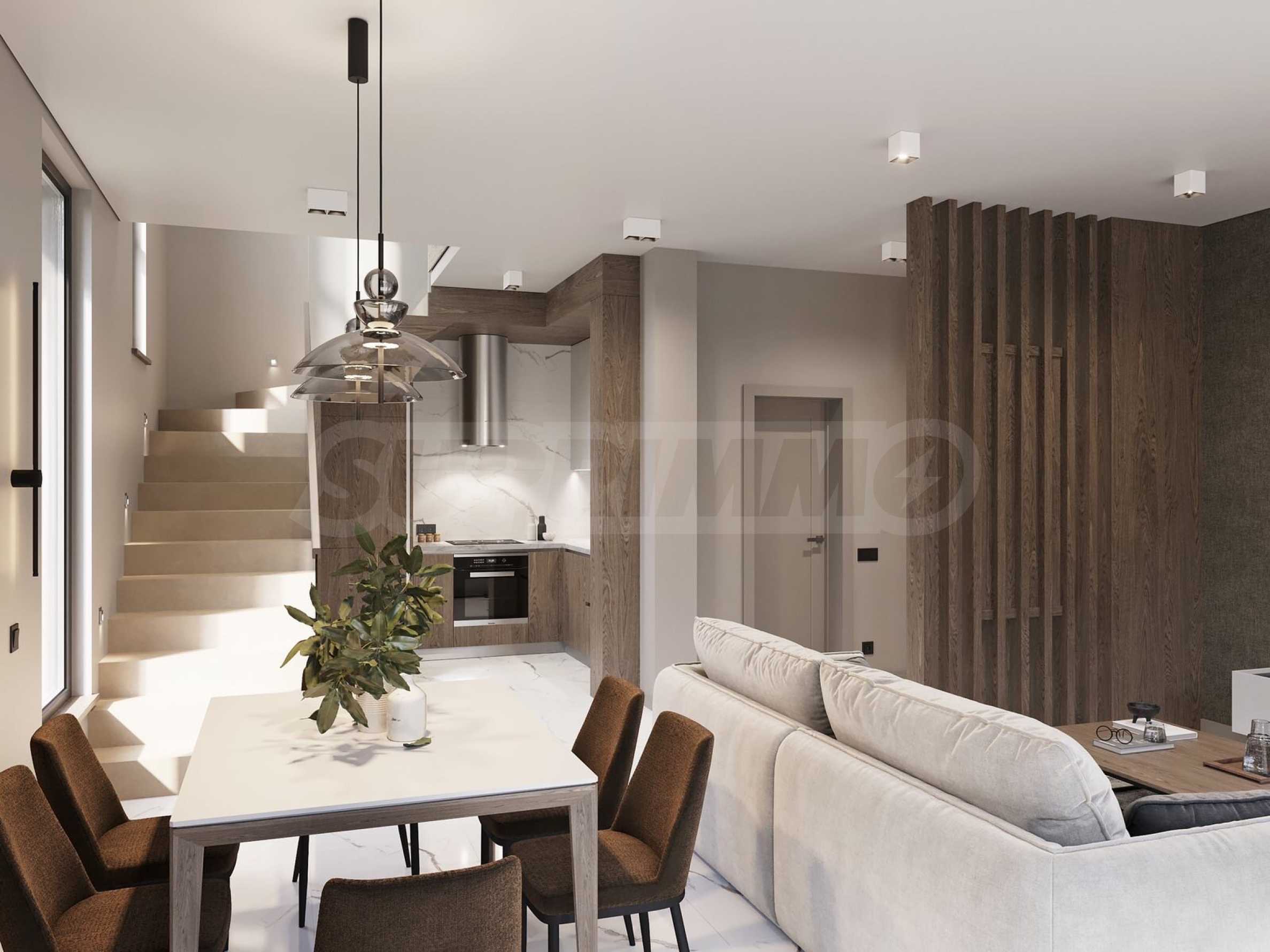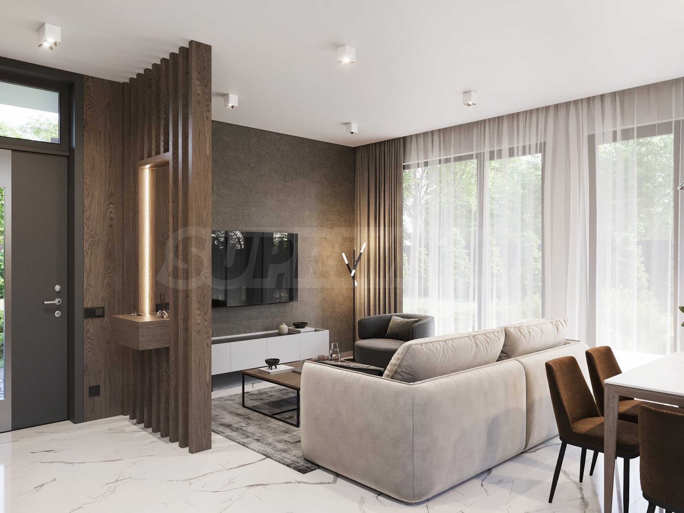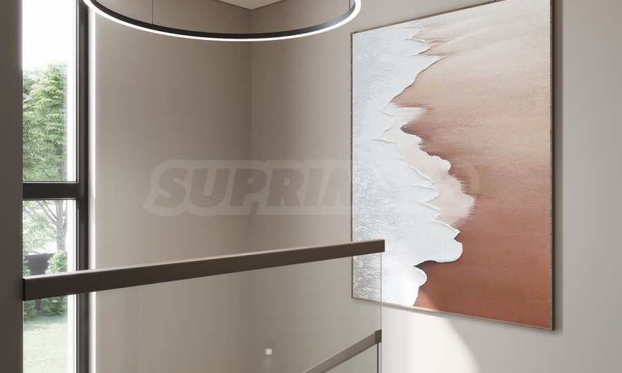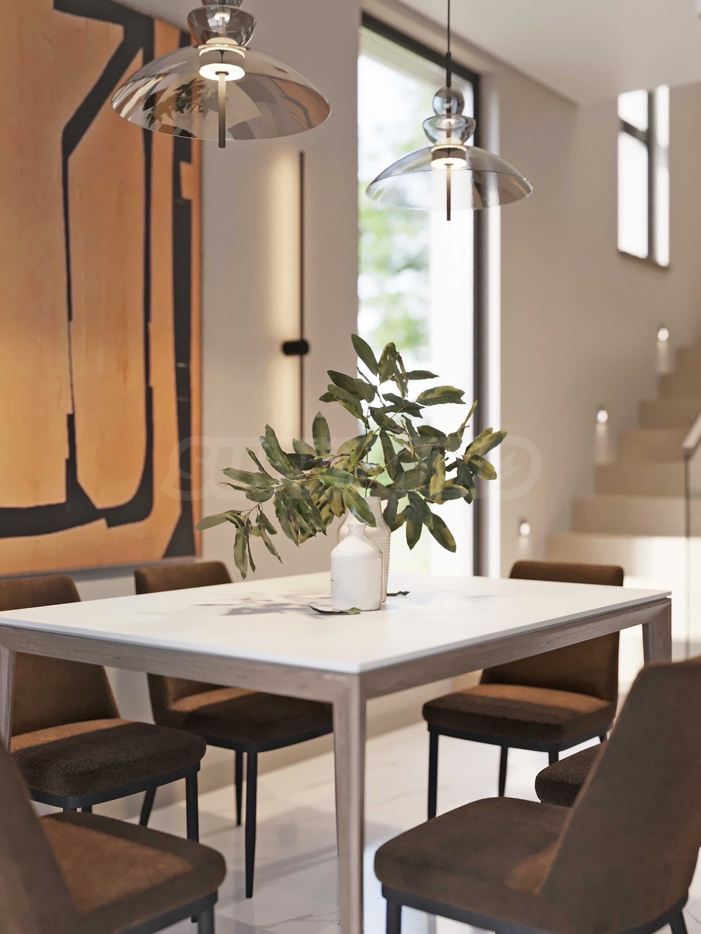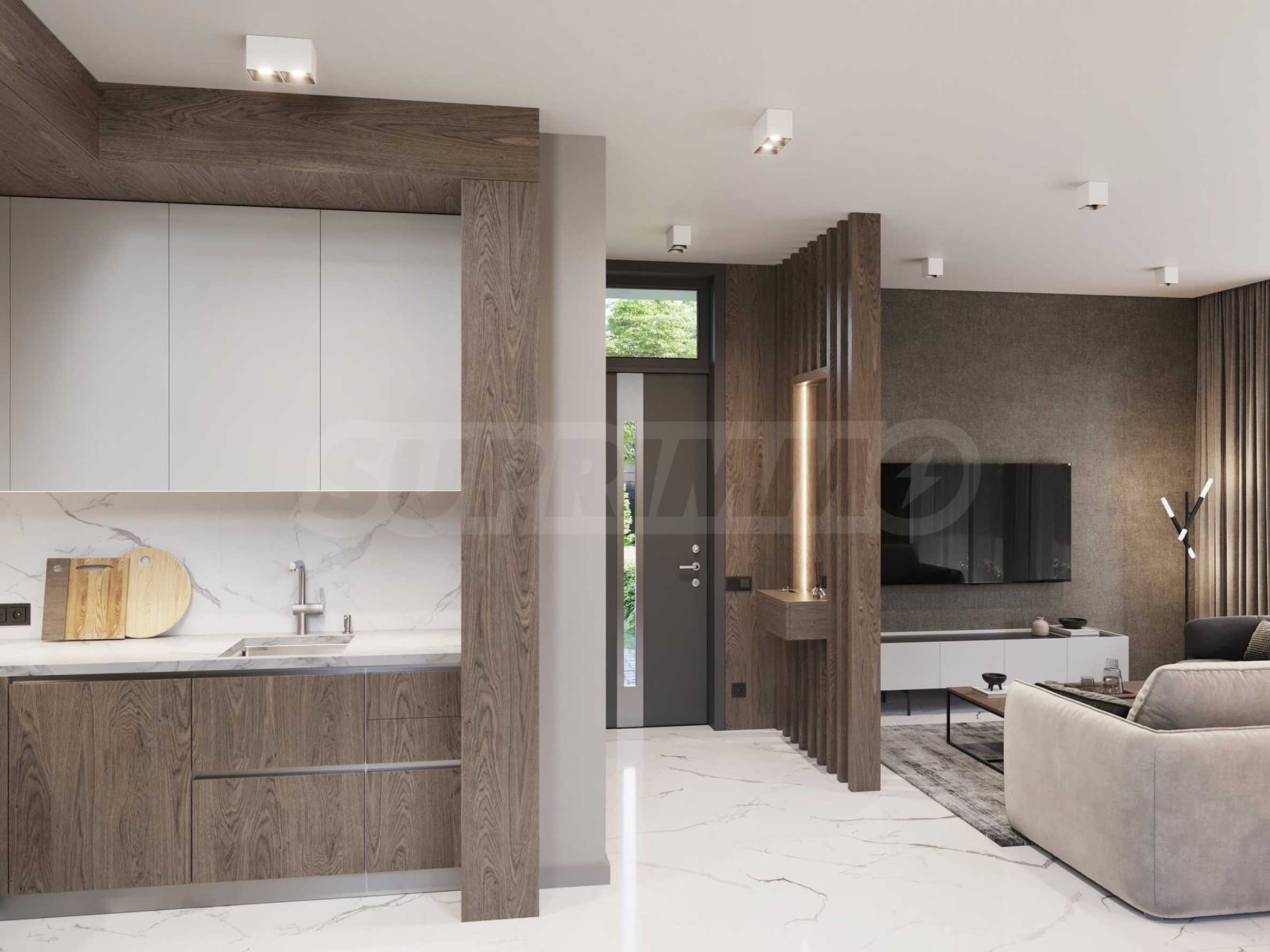 The houses are located on a plot of land with a total area of 8,611 m2., in which 20 plots of land and an internal street are distributed. Thanks to the natural unevenness of the terrain, the complex is designed as a terrace, and from every house you will have incredible panoramic views of the sea.