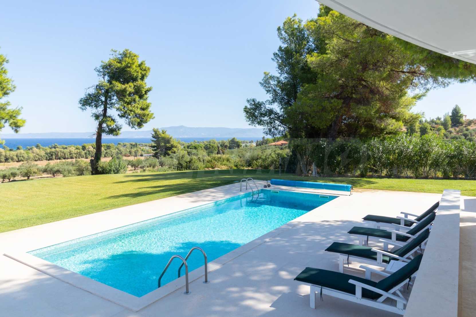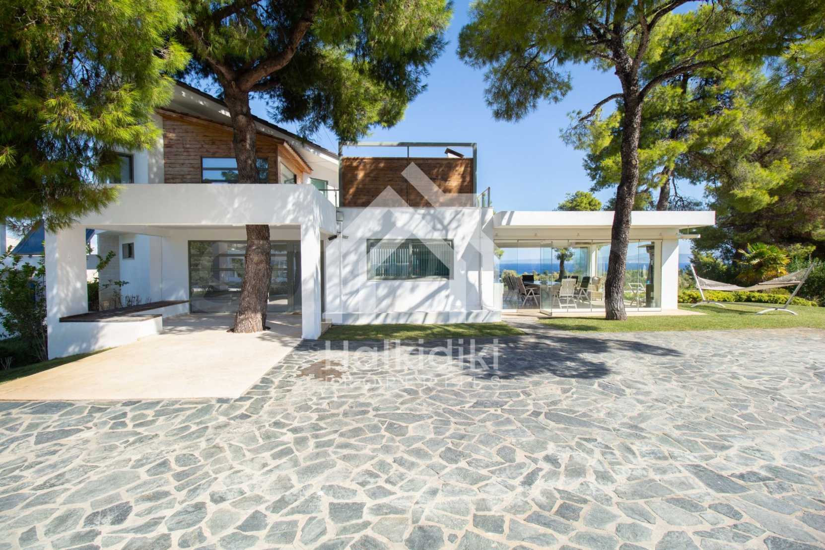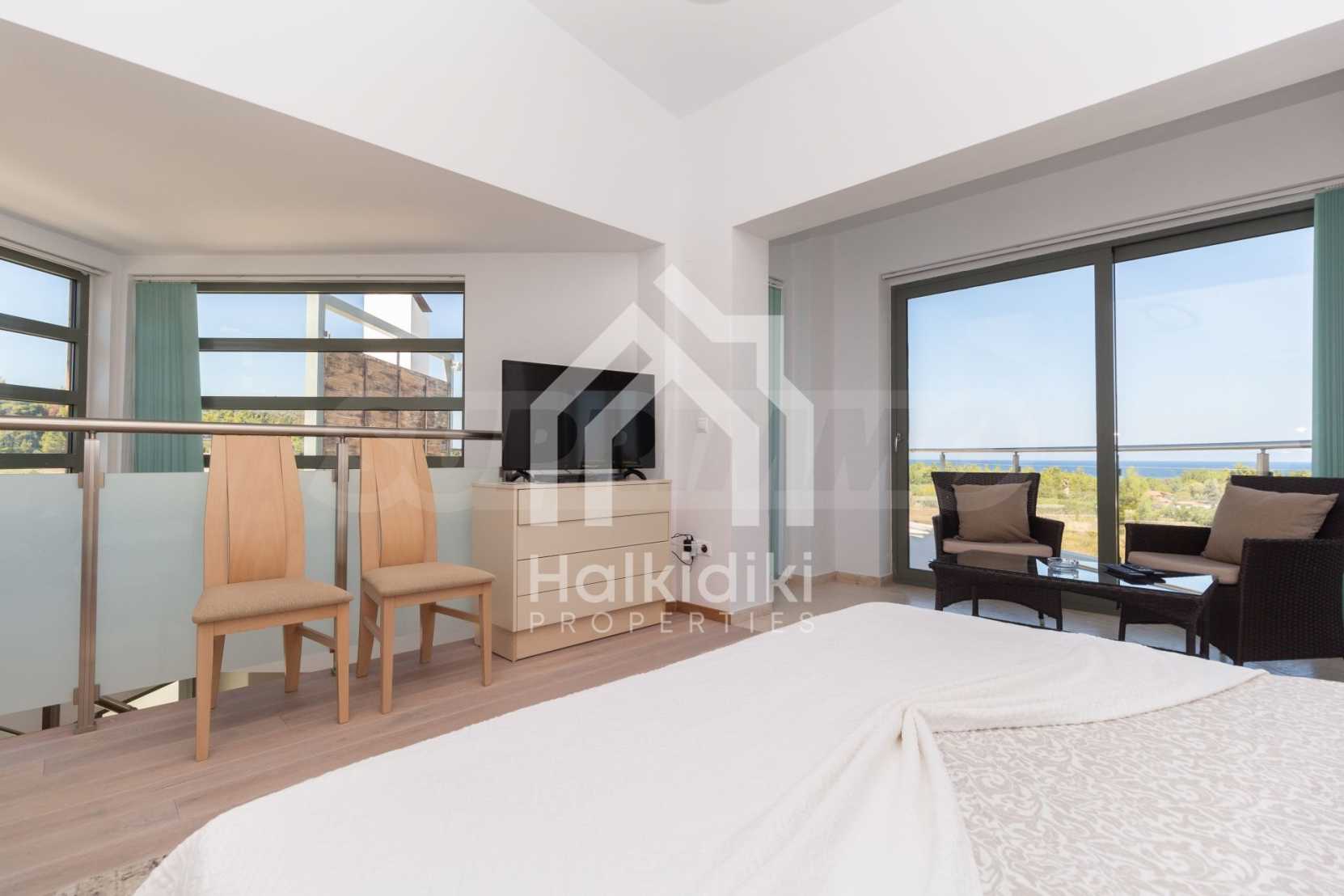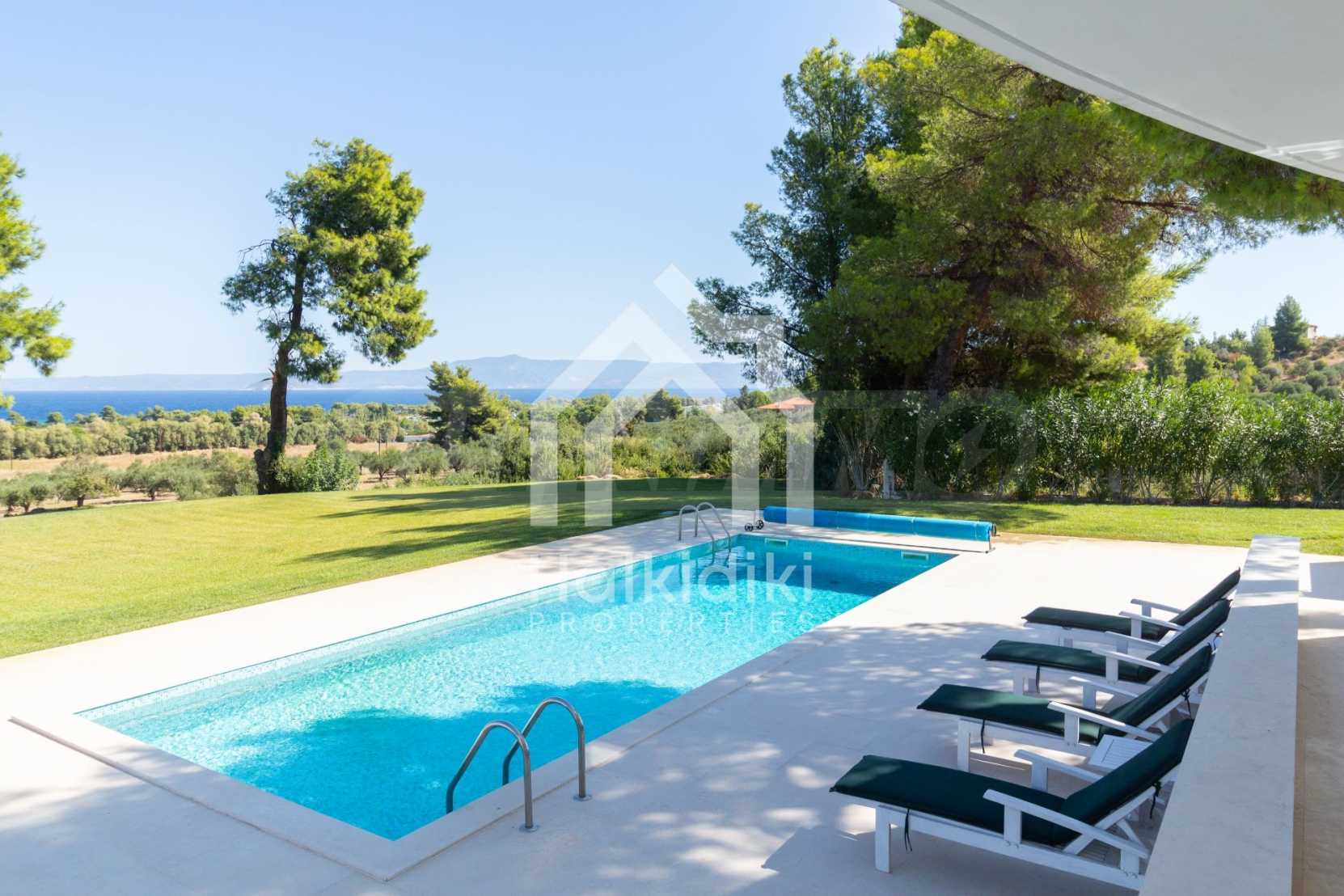 Luxury Residency. Beautiful detached house with a luxurious swimming pool, at a remarkable spot in Kassandra , in the small paradise of Halkidiki. The property is located in an area of 2000 sq.m. , with exceptional sea view, It consists of 3 levels with a total of 330 sq.m. of living area. The property includes 5 bedroom(s) , 1 WC. , storage and 4 bathrooms(s)