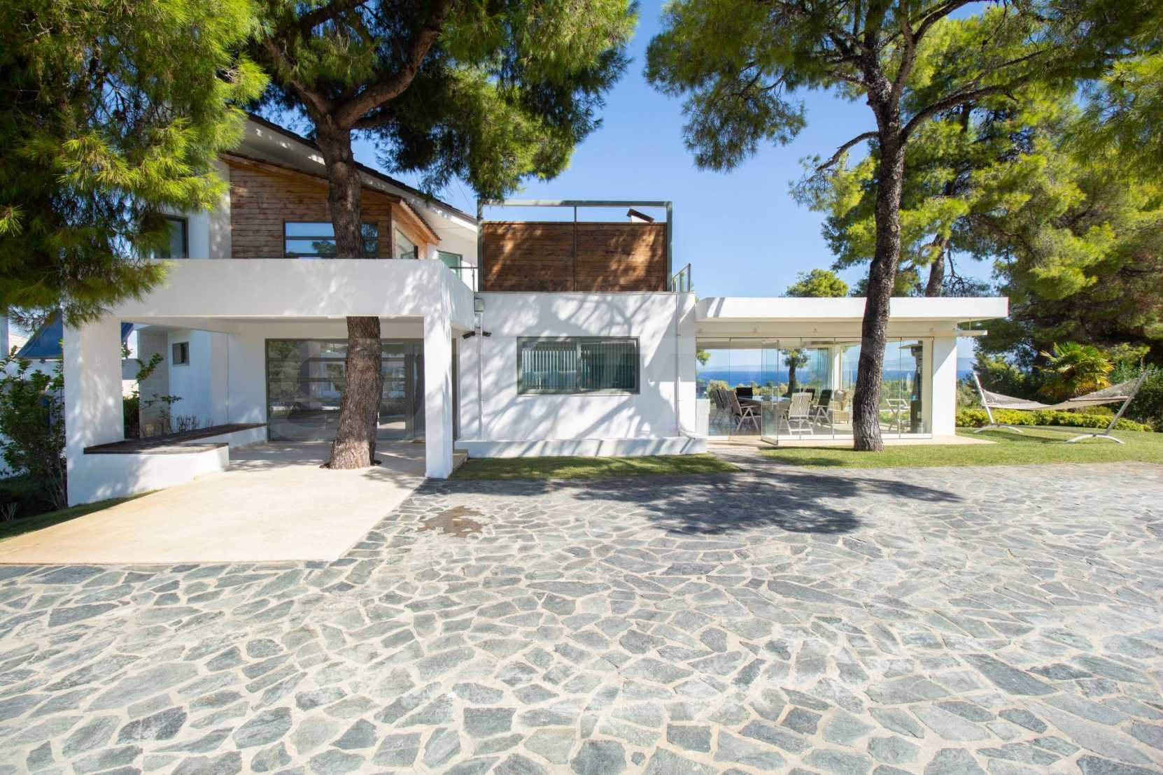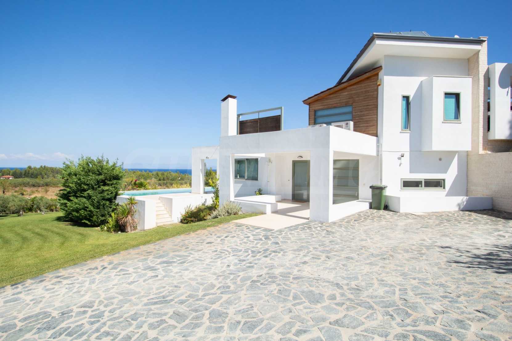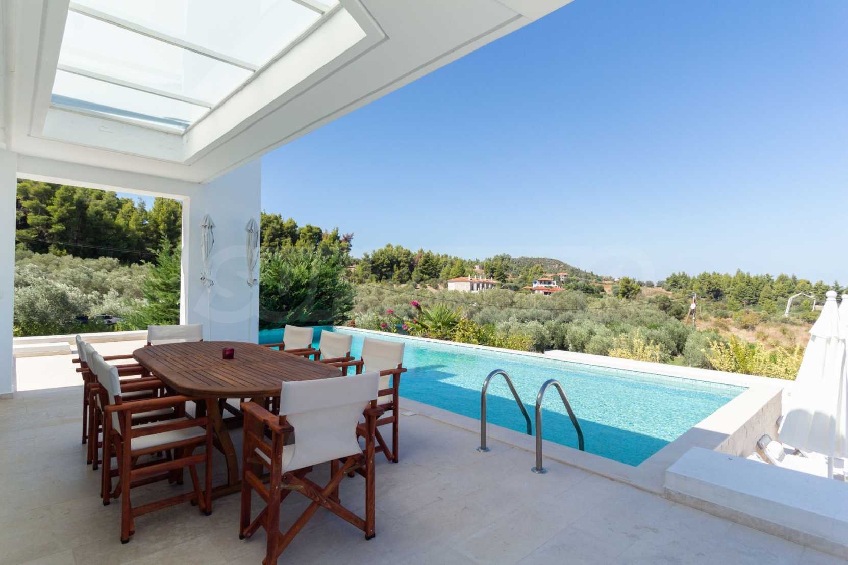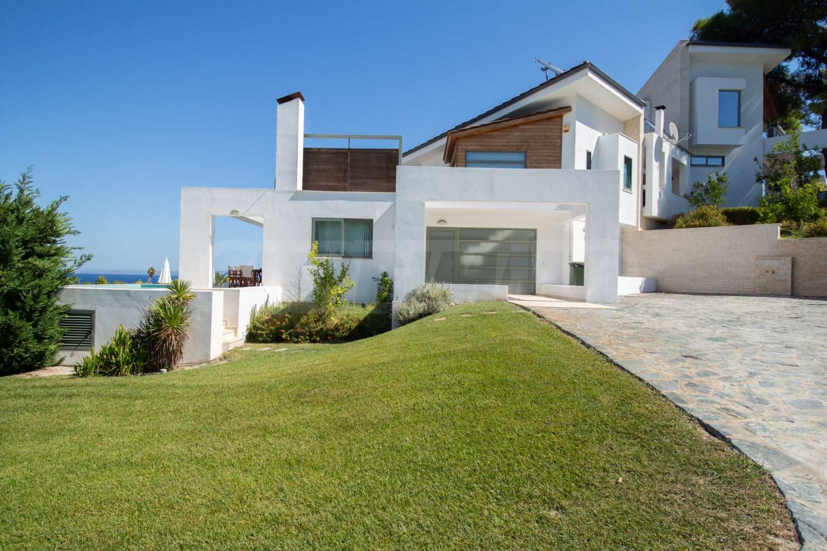 Luxury Residency. Beautiful detached house with a luxurious swimming pool, at a remarkable spot in Kassandra , in the small paradise of Halkidiki. The property is located in an area of 2000 sq.m. , with exceptional sea view, It consists of 3 levels with a total of 330 sq.m. of living area. The property includes 5 bedroom(s) , 1 WC. , storage and 4 bathrooms(s)