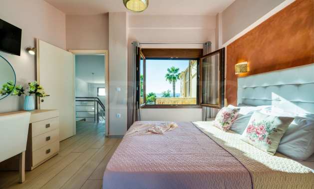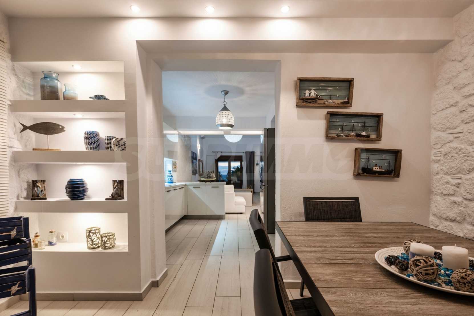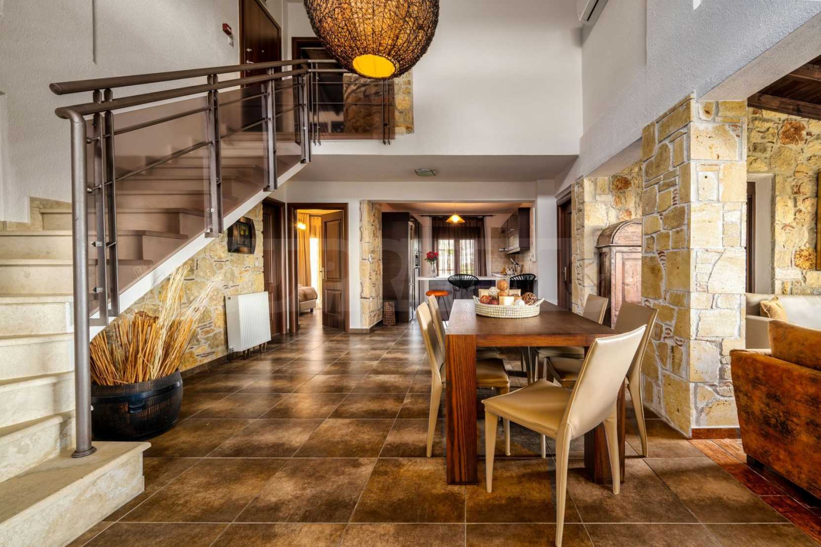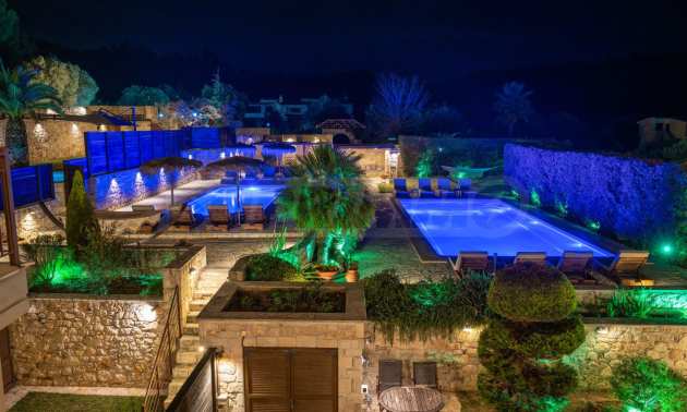 A complex of 5 independent villas on the beach is for sale. Each villa has its own outdoor private swimming pool, on a total land surface of 6.600s.qm.. The 5 villas have in total 14 bedrooms, 9 bathrooms, 1 WC and several storage places. A great sea view exists from almost everywhere in the complex. The interior is designed with high-end materials and custom made furniture. Air conditions, electric appliances, heating, and everything a house might need are already installed. This specific project is ideal for investment purposes since it already has its own clientele and its ready to work immediately!