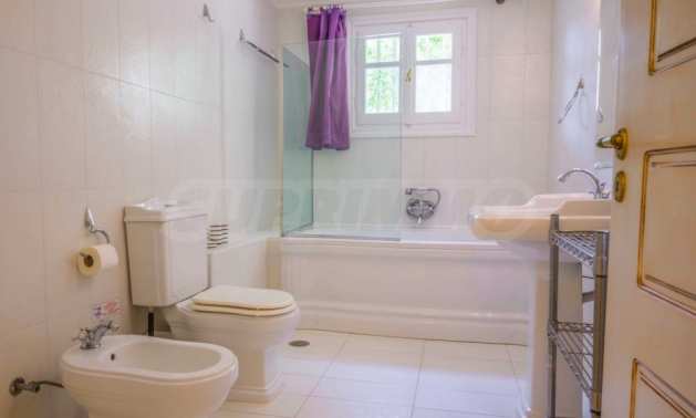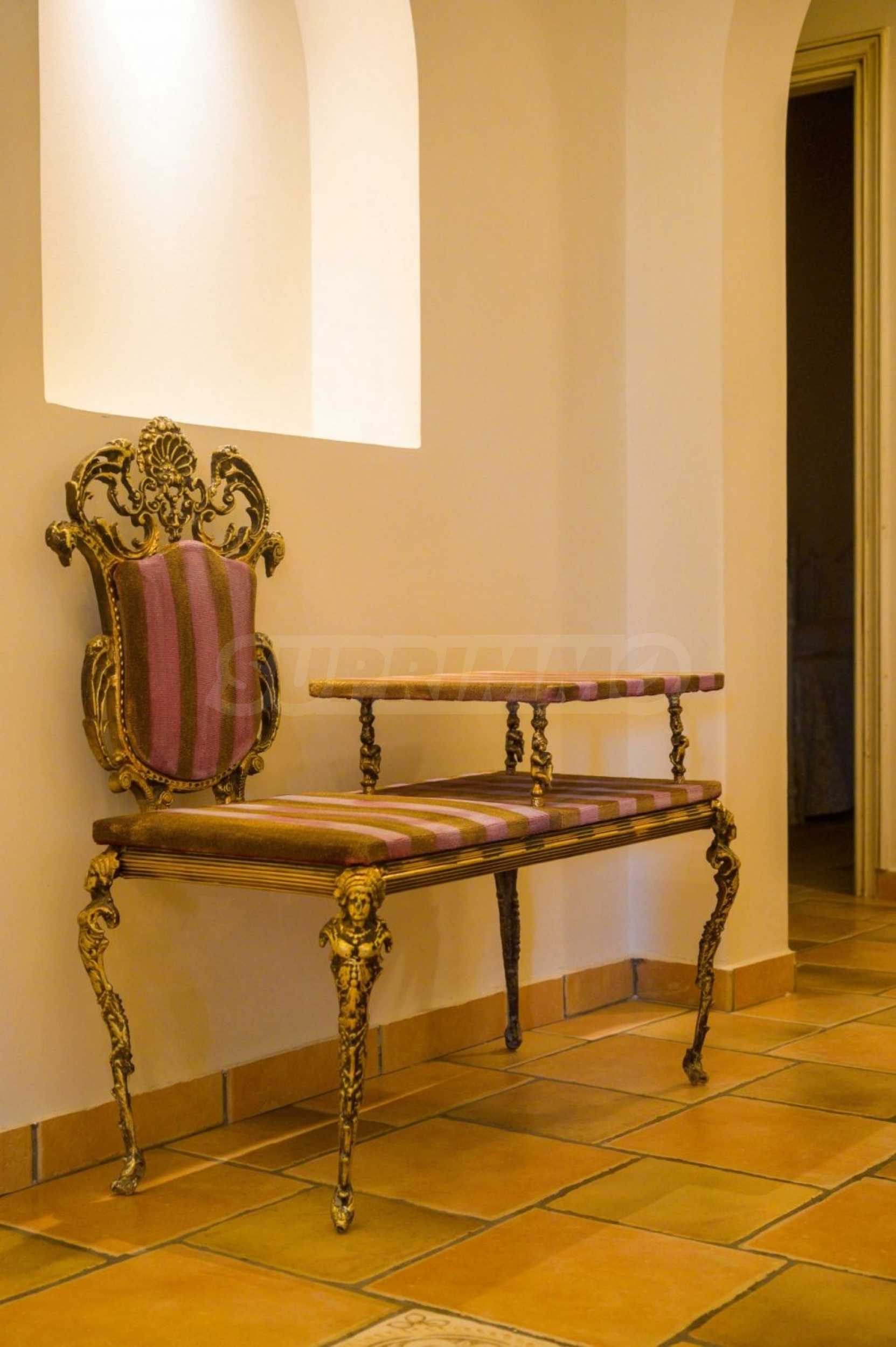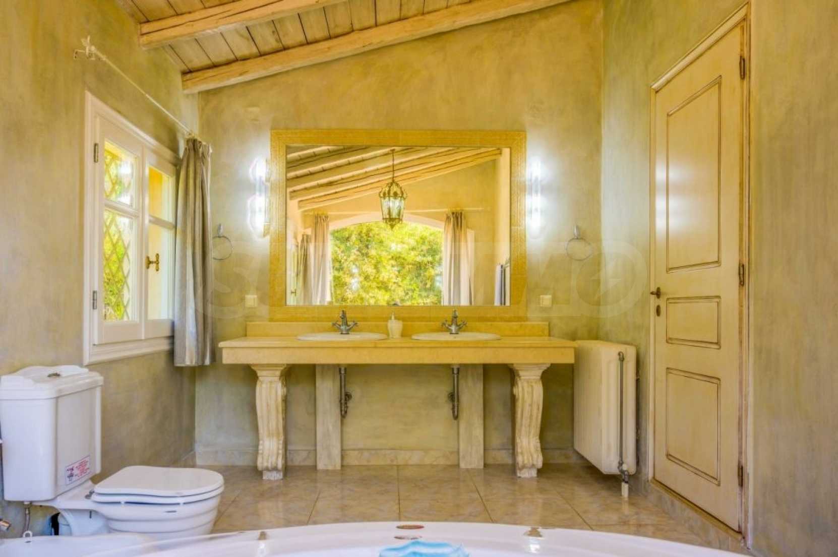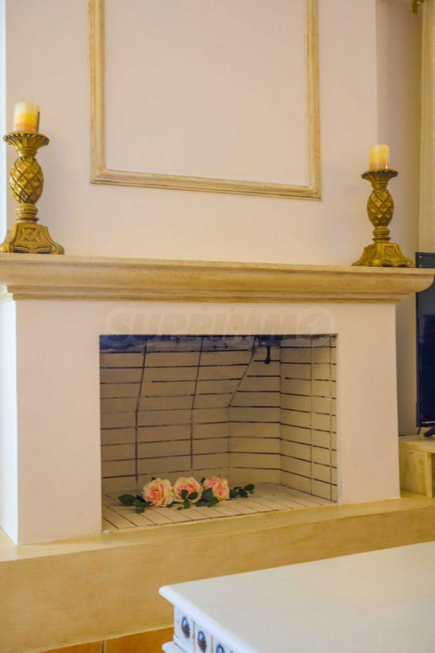 The villa is arranged on two levels and consists of 6 large en suite bedrooms with fitted wardrobes, air conditioning and access to balconies. Each floor has an open plan kitchen-dining room with fireplace and exit to the garden. The special red living room and the tv room can offer moments of relaxation for young and old. The levels are joined by an internal staircase, but can also be accessed separately.
