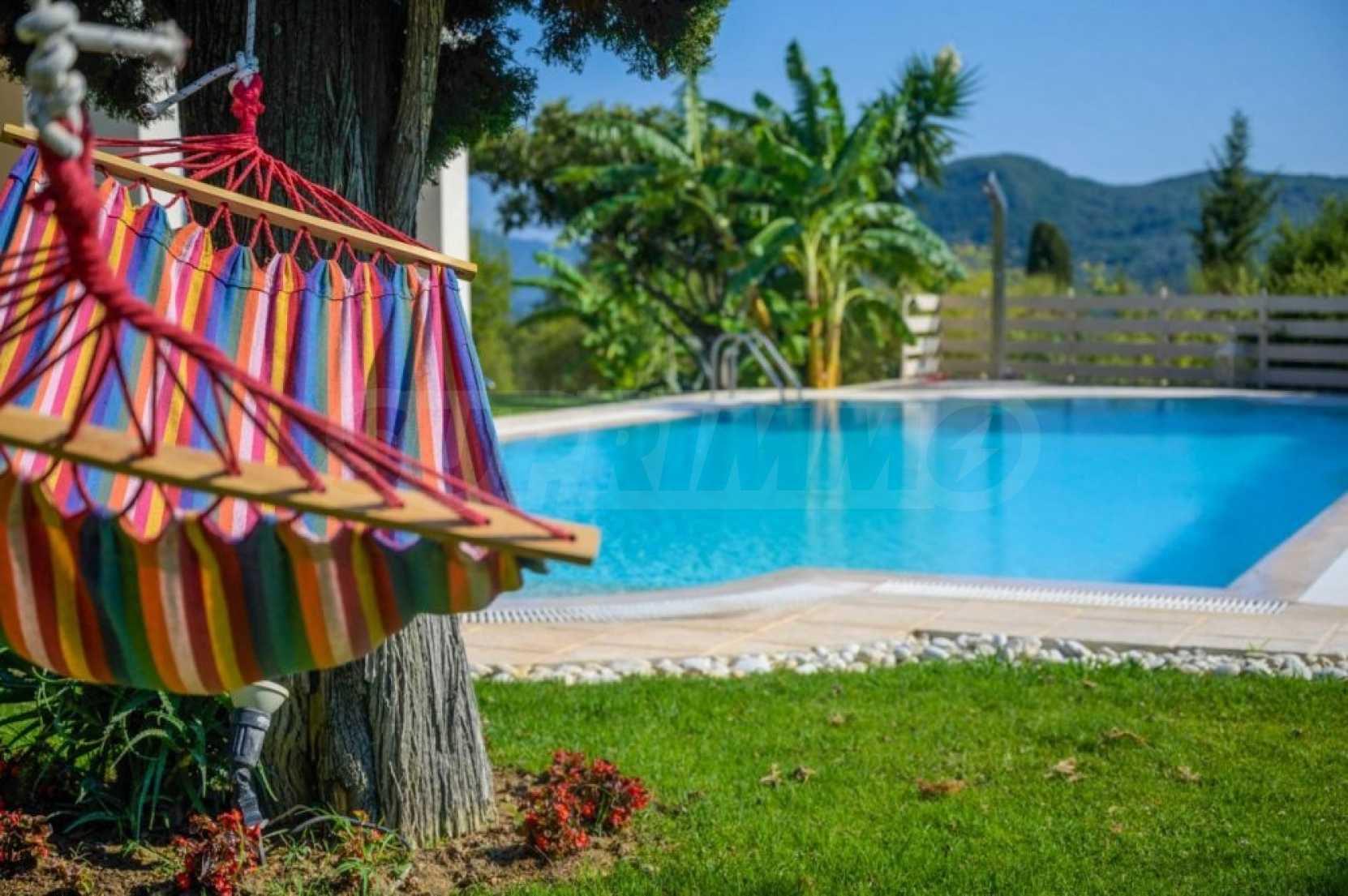 The plot of 4.021sqm is beautifully surrounded by lush vegetation and planted with ornamental and fruit trees. How beautiful to enjoy the fresh fruit every day!