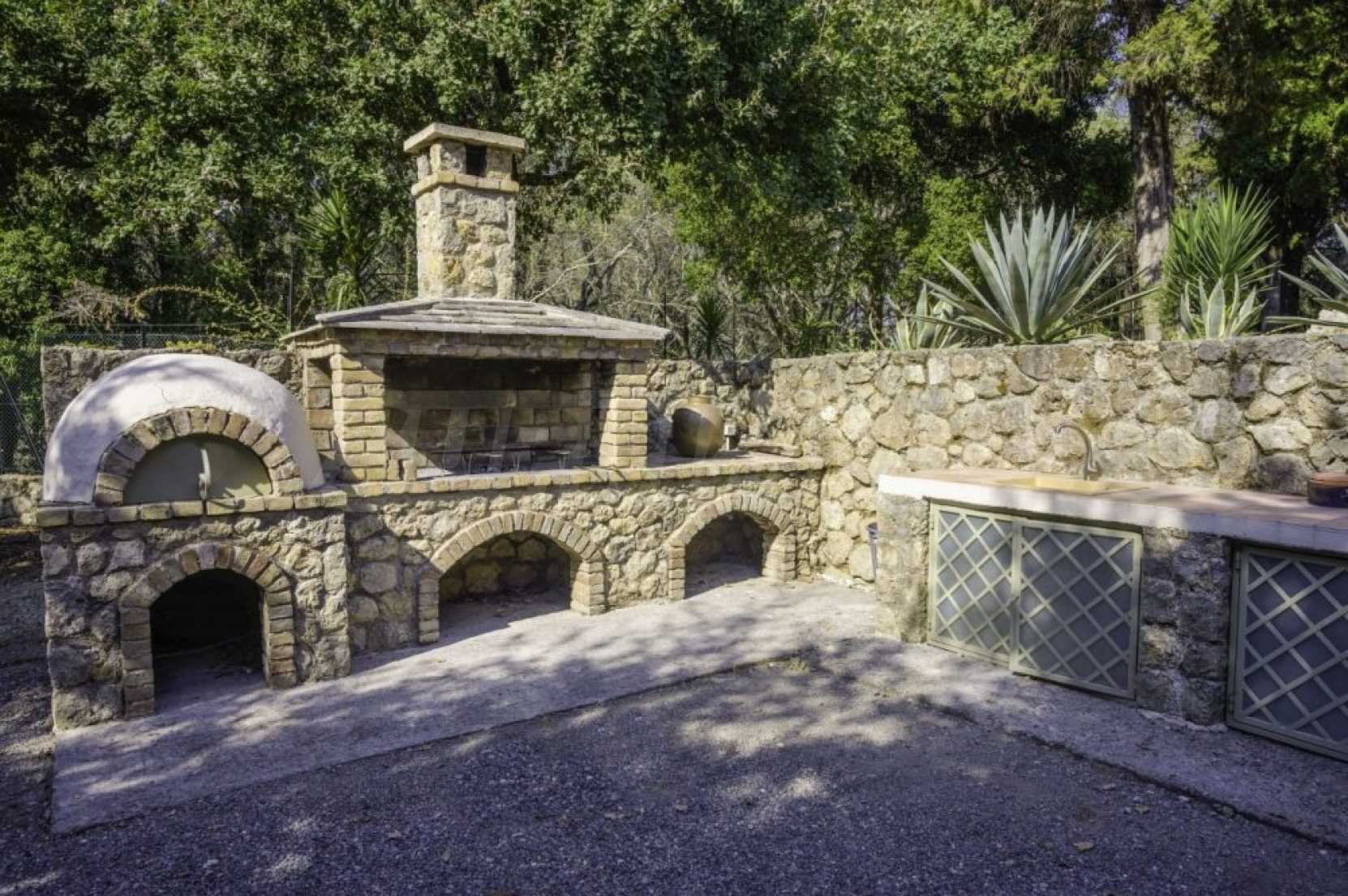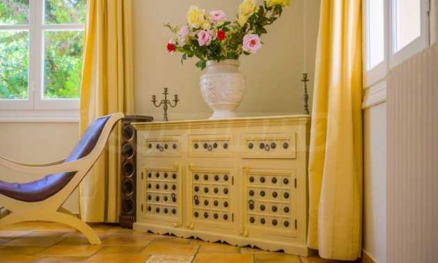 The large swimming pool, which is the center of interest in summer, is located on the edge of the garden and is surrounded by lawns. Around it, there is enough space to relax and enjoy your food or drink under the stars, in one of its sitting areas or the outdoor dining room. Right next to it is the stone bbq where to enjoy evenings with family and friends.