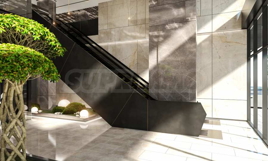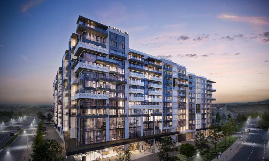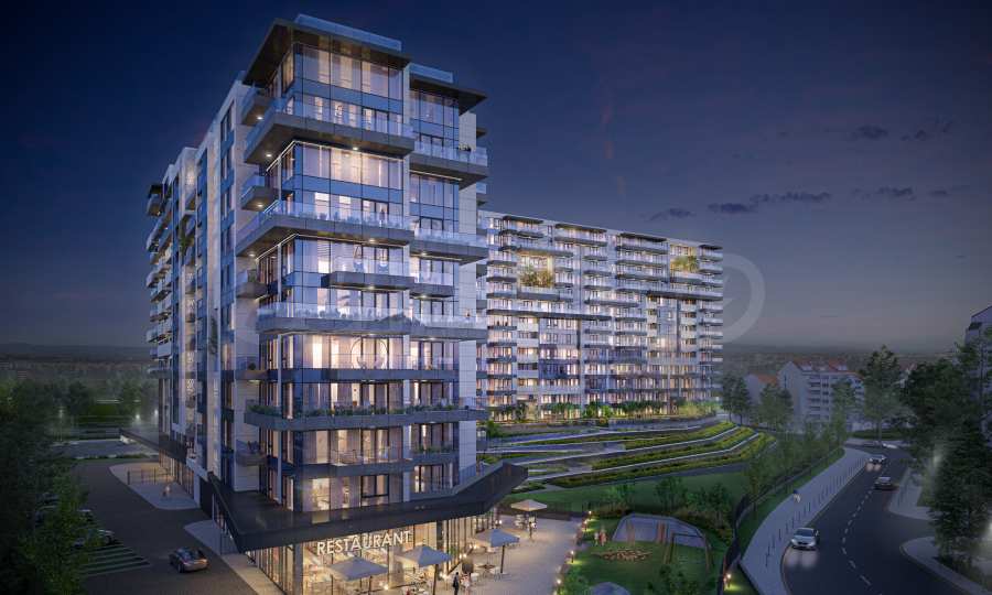 The building has an underground area of 25,833.30 m2, above-ground levels - 44,065.59 m2 and a total built-up area of 69,898.89 m2. The residence has its own internal park, landscaped interior spaces and common terraces for relaxation and entertainment. On the ground floor there is a Kaufland supermarket, a beauty center, a cafe, shops and a fitness center on two levels.