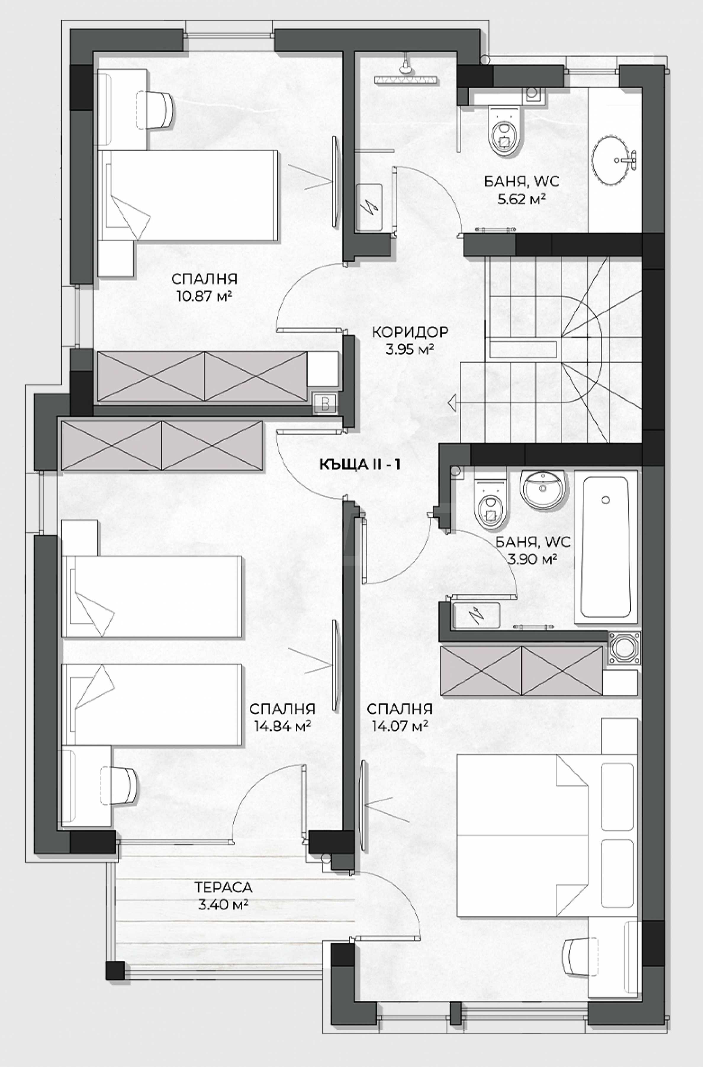 We present a new house in a gated complex, in the village of Markovo near Plovdiv. Excellent location and panorama 3 km from the city, next to Trakia Motorway and the Ring Road.