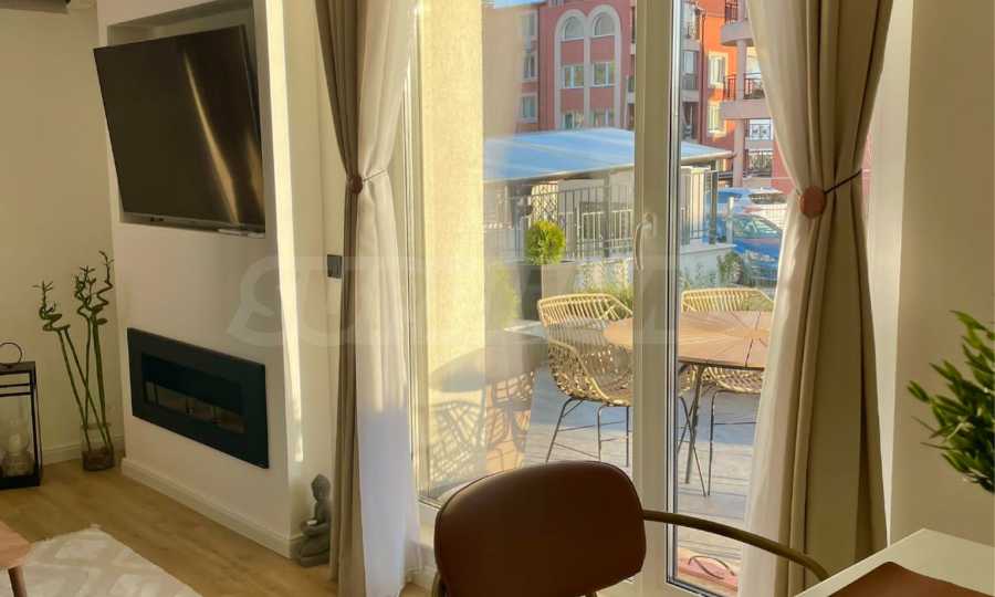 The property is offered fully furnished, with the entire interior design included in the listed price.