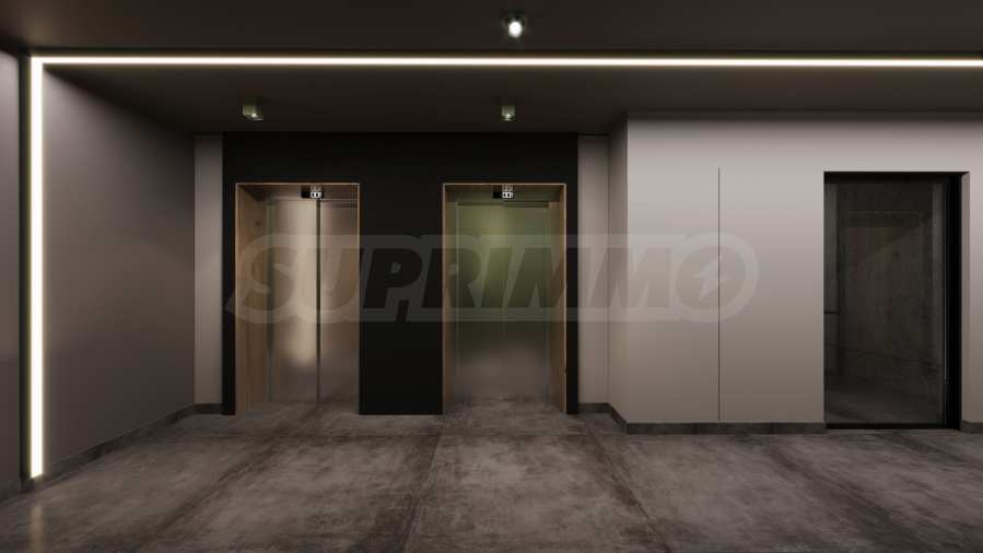• Stairs and landings – floor - cement screed and granite flooring, metal railing and handrail, walls - painted with latex on gypsum putty, ceilings - painted with latex on gypsum putty, with designer lighting according to the project.