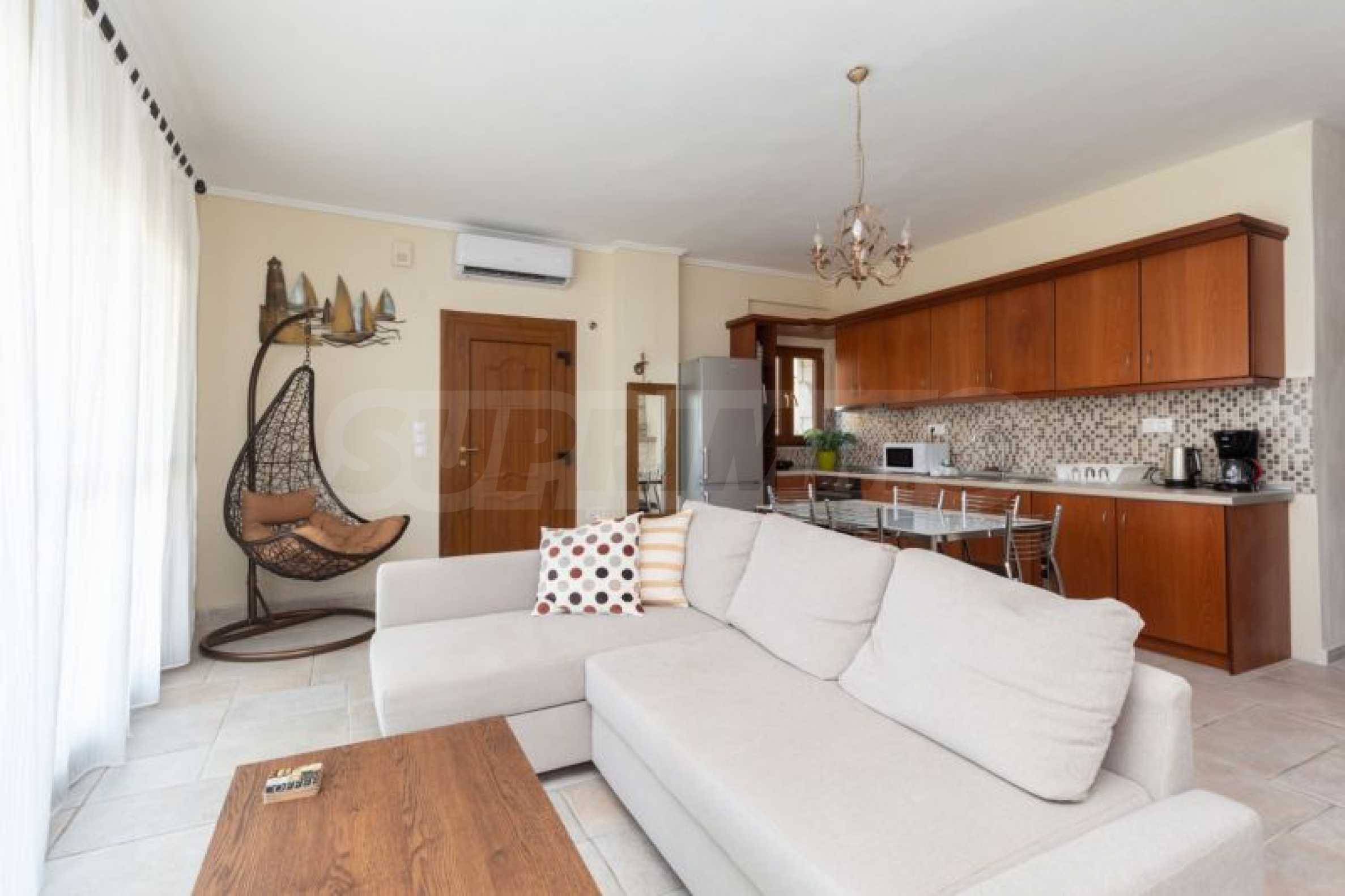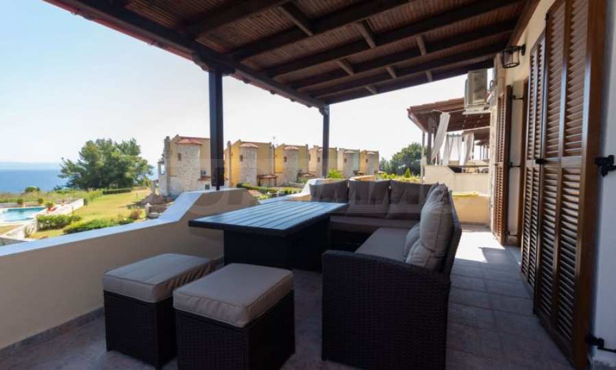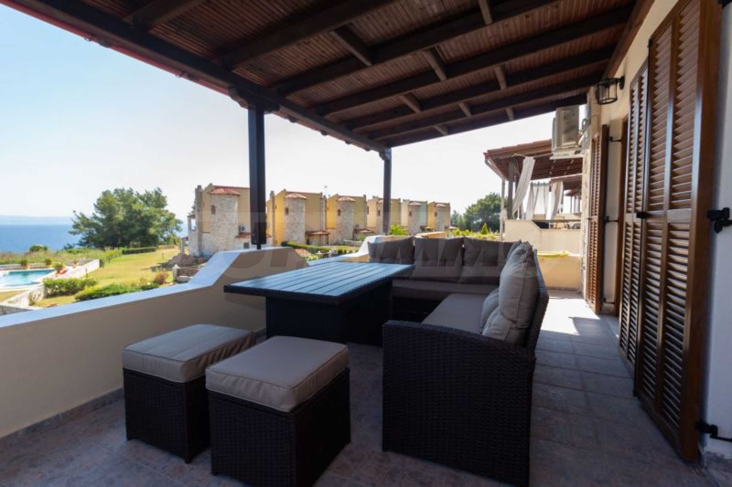 Maisonette, Kassandra, 160 m², sea view, open view, Eastern orientation, Unobstructed permanent view, Corner property, Outside village, Sea view, Close to sea, Southern orientation, Lighted, Fitted kitchenware, Public pool outside, Furnished, Appliances, Security door, Window screens, Renovated, Can be separated into two houses, Big balconies