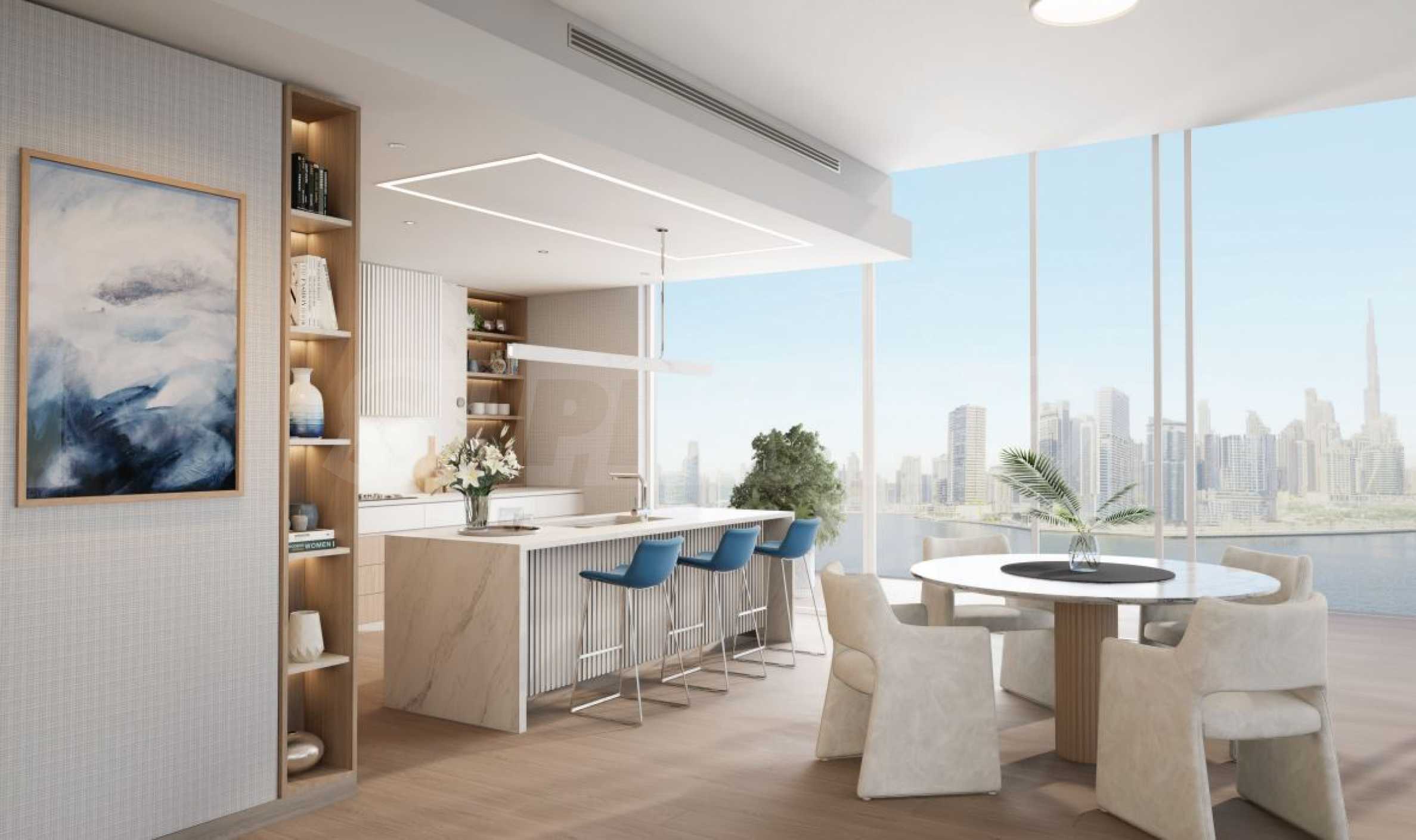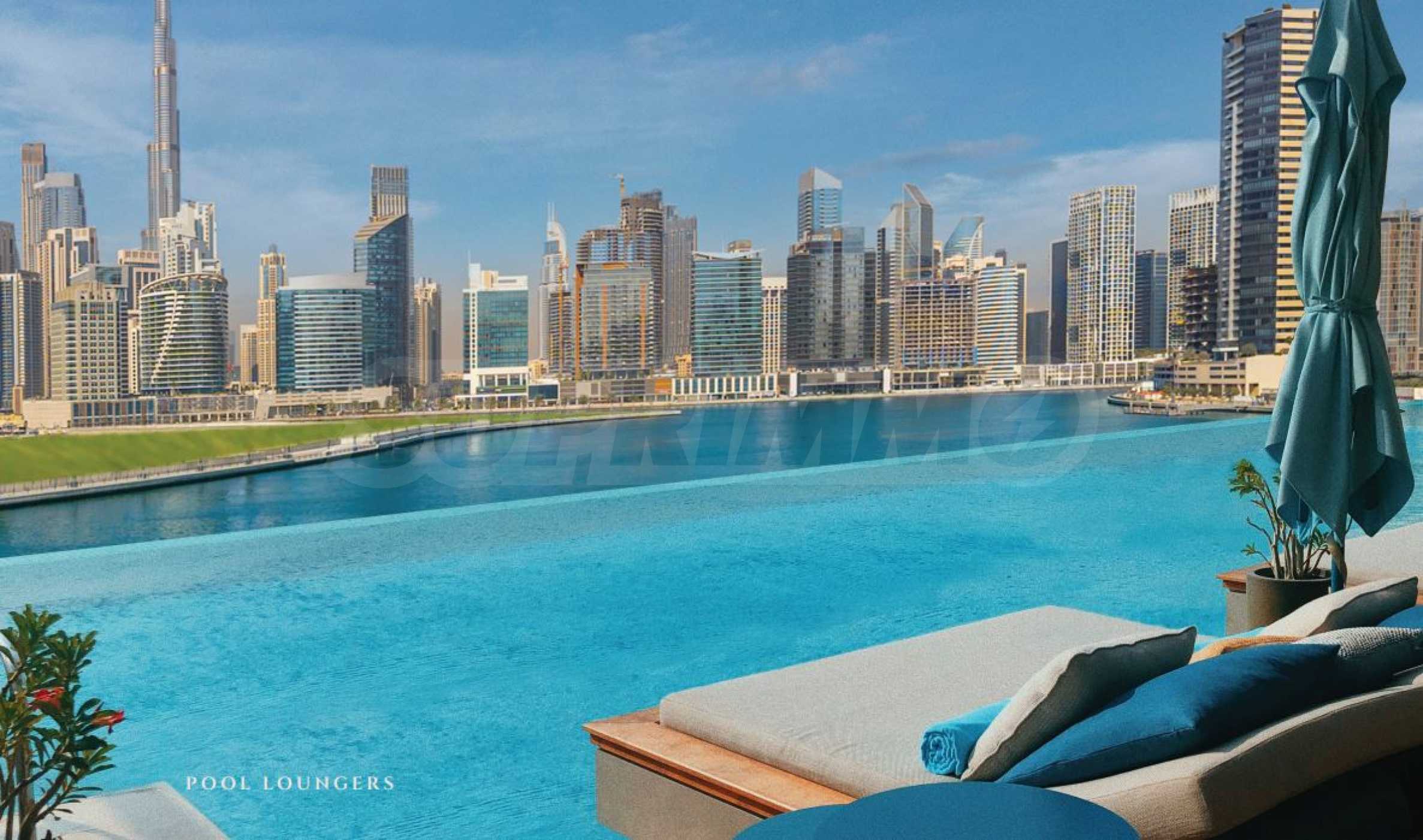 The units offered are 1, 2 and 3 bedroom apartments. The apartments are bright and spacious, and the minimalist design is elegant, with a neutral color palette. Each residence has a balcony and uninterrupted views of the captivating waters of the Dubai Canal and the city's skyscrapers in the background. Each property has a parking space.