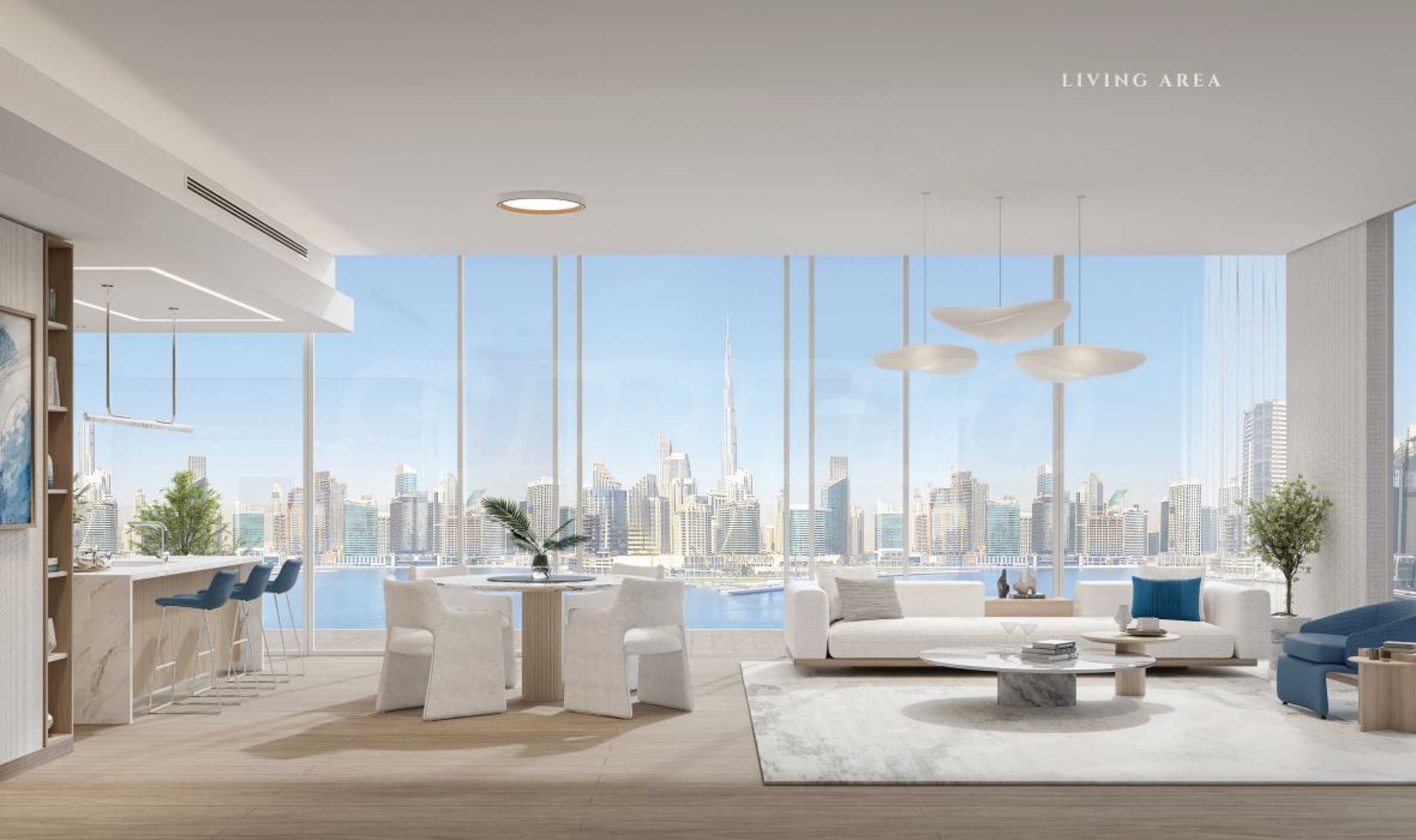 The units offered are 1, 2 and 3 bedroom apartments. The apartments are bright and spacious, and the minimalist design is elegant, with a neutral color palette. Each residence has a balcony and uninterrupted views of the captivating waters of the Dubai Canal and the city's skyscrapers in the background. Each property has a parking space.