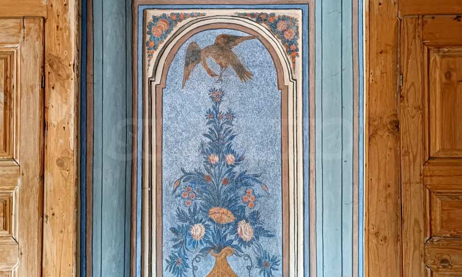 The architecture of the revival house, characteristic of this area, has been completely preserved. The rooms are bright with wooden ceilings and wooden floors. The yard is surrounded by a massive stone wall, and an authentic old wooden gate opens to the road.