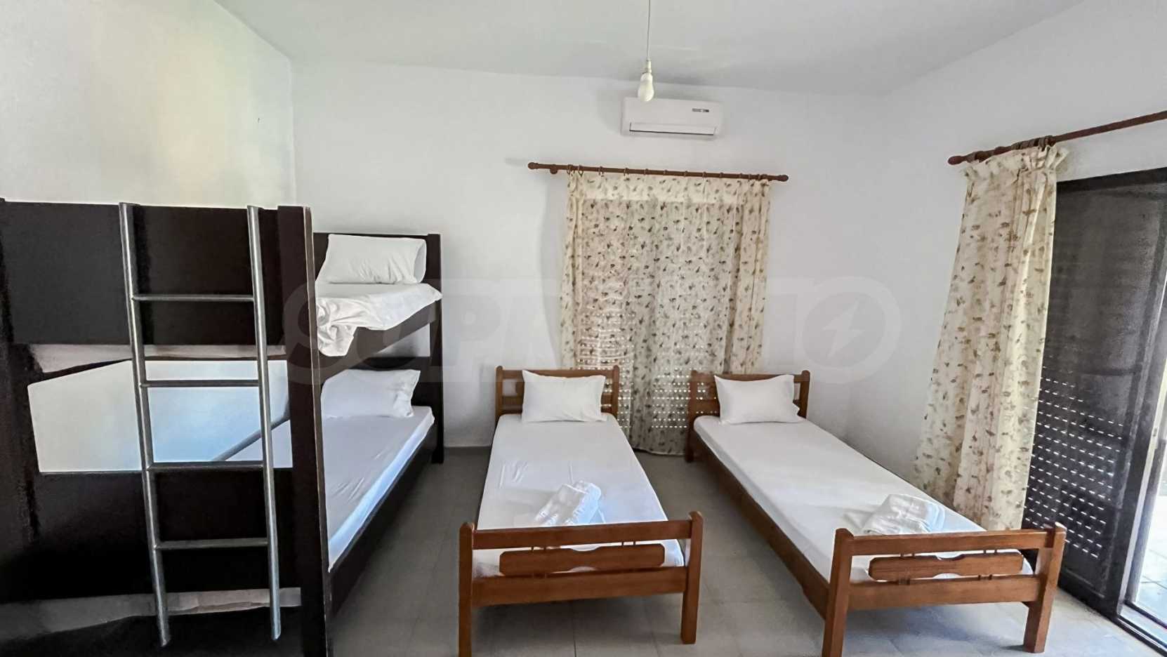 This detached house in Halkidiki, Greece, is a great investment opportunity. Located just a short 5-minute walk from the sea, it offers the perfect location for a relaxing beach lifestyle. The property is in need of renovation, presenting the opportunity to redesign and rebuild completely. With 9 bedrooms and 4 bathrooms, there is plenty of space for a large family or to accommodate different guests. The house also features a parking area with room for 3 vehicles. Situated in the beautiful municipality of Kassandra, this property offers the potential to create a modern living space in a desirable coastal location.(possibly generated by AI)