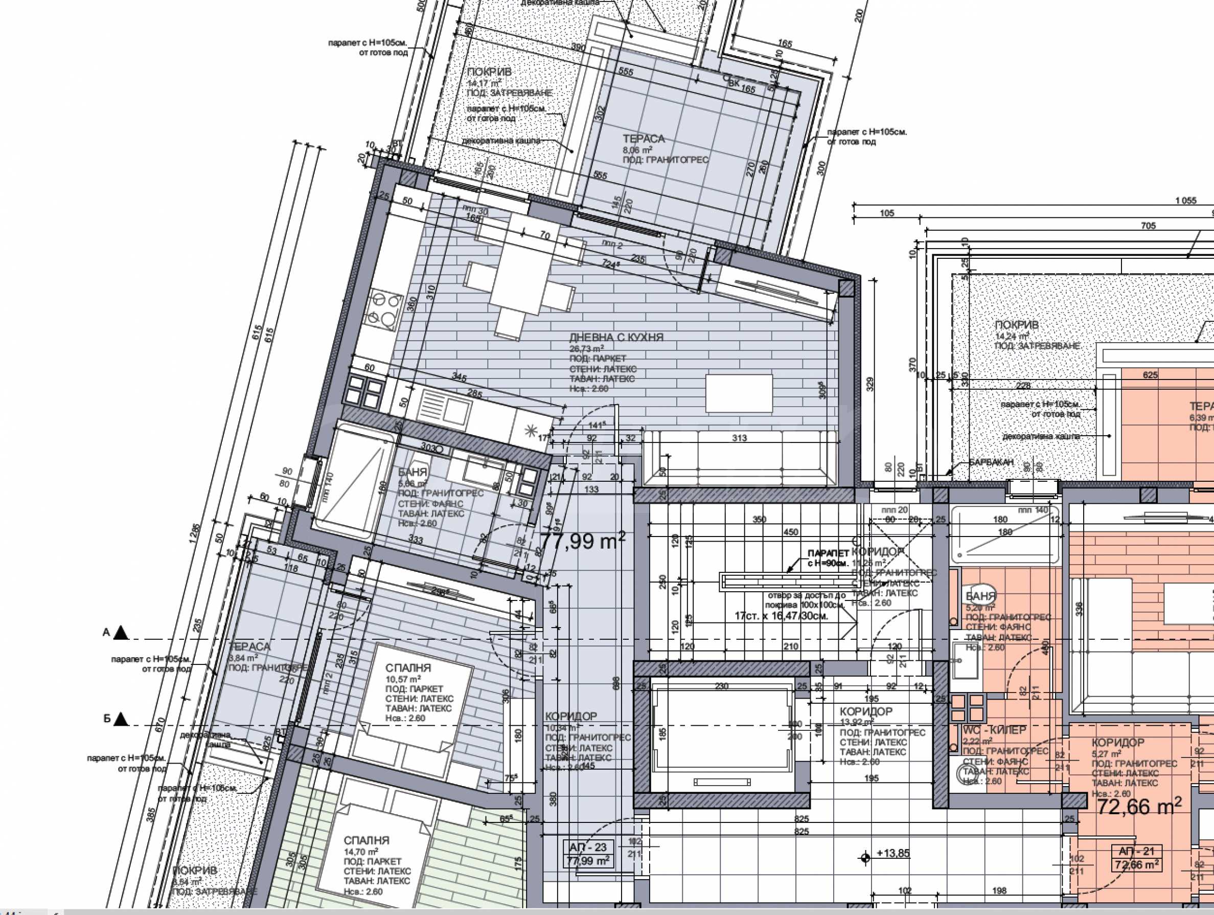 - fully finished terraces with granite tiles.
