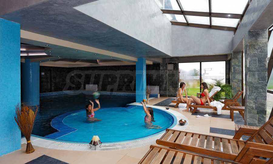 - outdoor and indoor heated pool with an area for adults and an area for children;