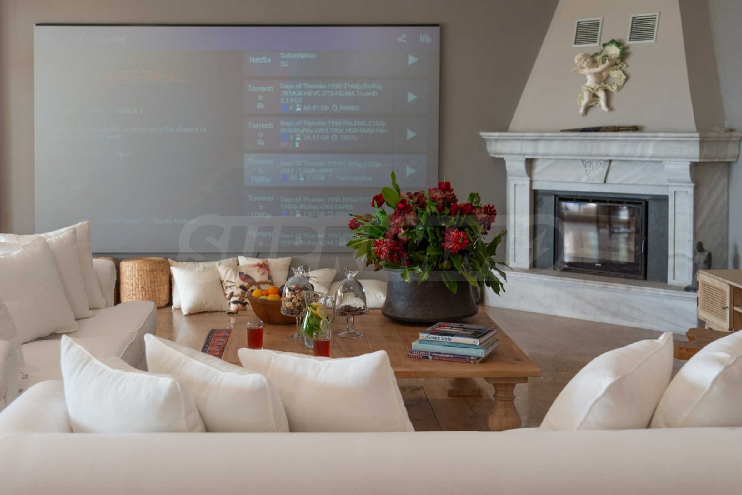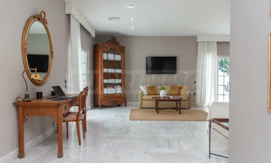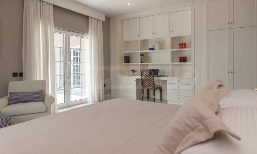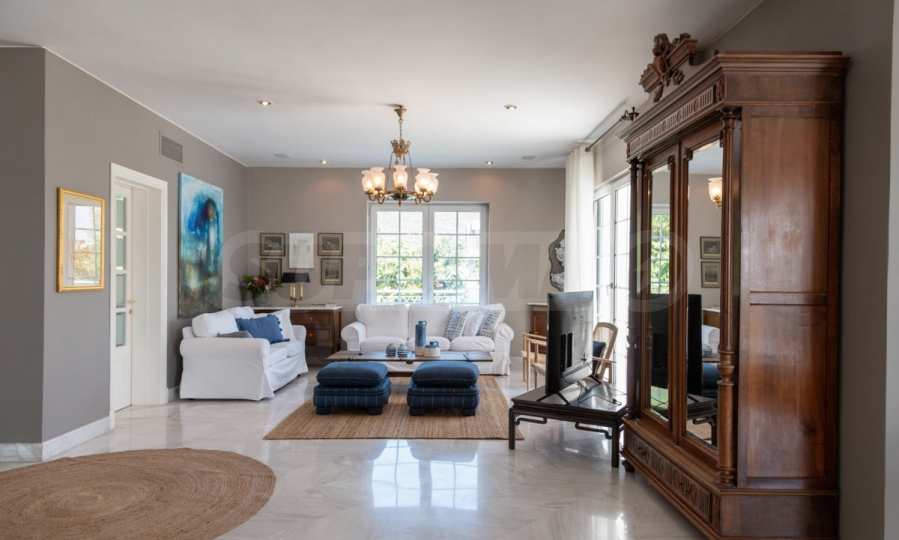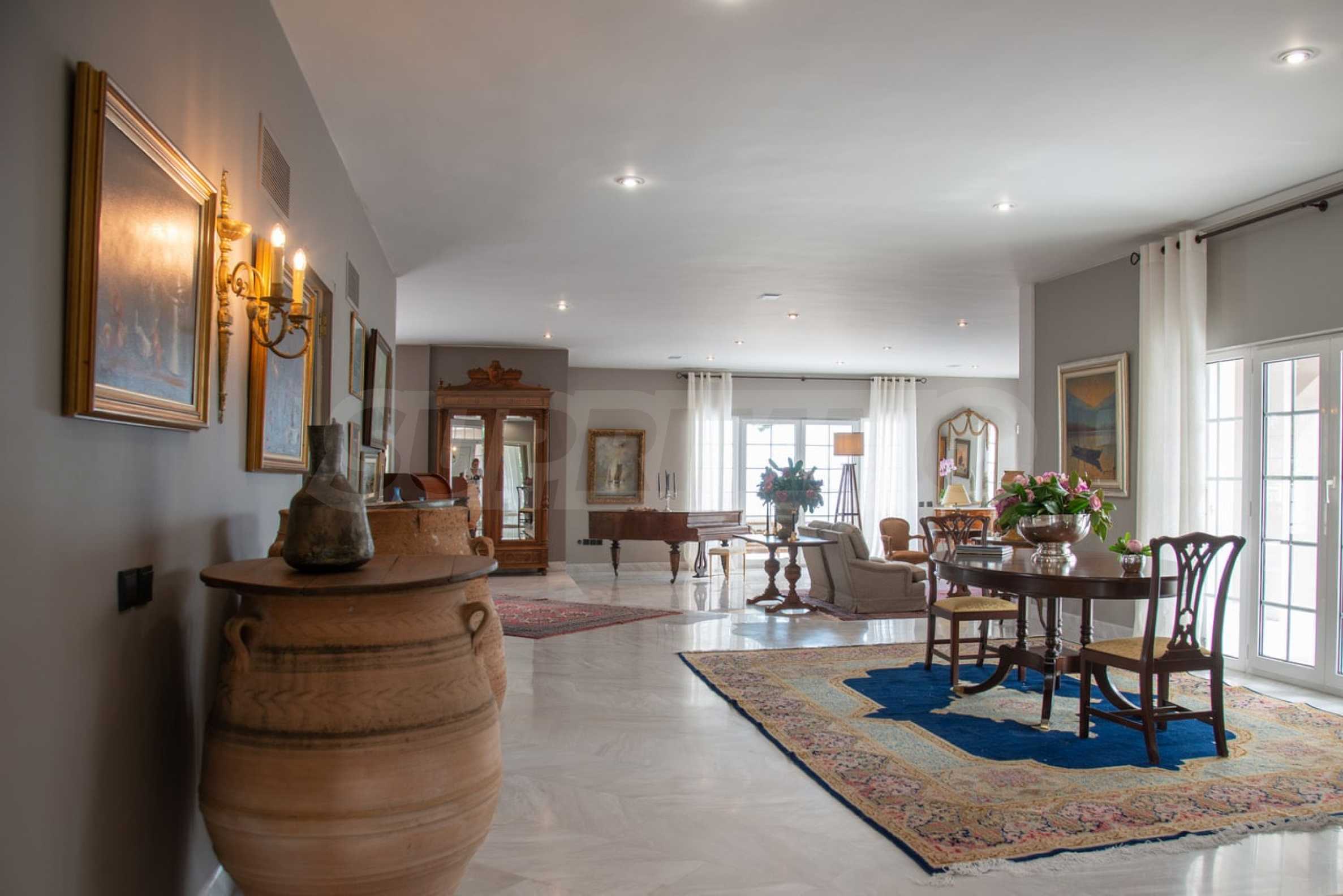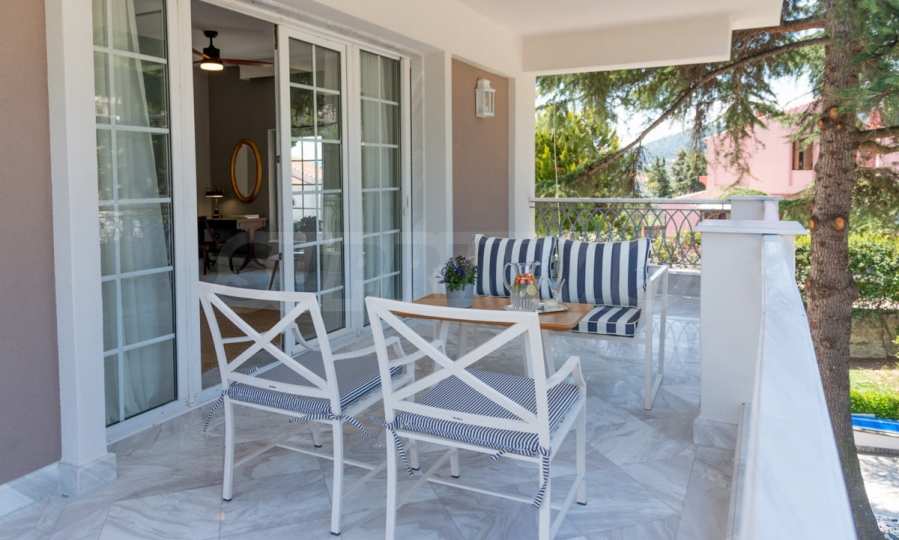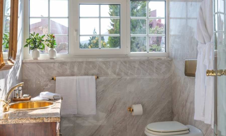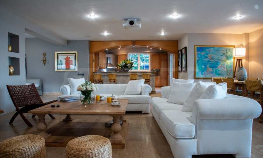 Come into this gorgeous property featuring 6 bedrooms, 8 bathrooms, 2 living rooms and 2 fully equipped kitchens, also with a playroom in the semi-basement. Five of the bedrooms have their own bathroom, as well as an outdoor sitting area, veranda or terrace. In the extremely well-maintained yard arranged with different types of trees, palms, pines, olives, oranges and lemons, you will enjoy a swimming pool, a summer kitchen with a pizza oven and BBQ, a dining room, and many corners from which you can admire the unique views of Aegean Sea.