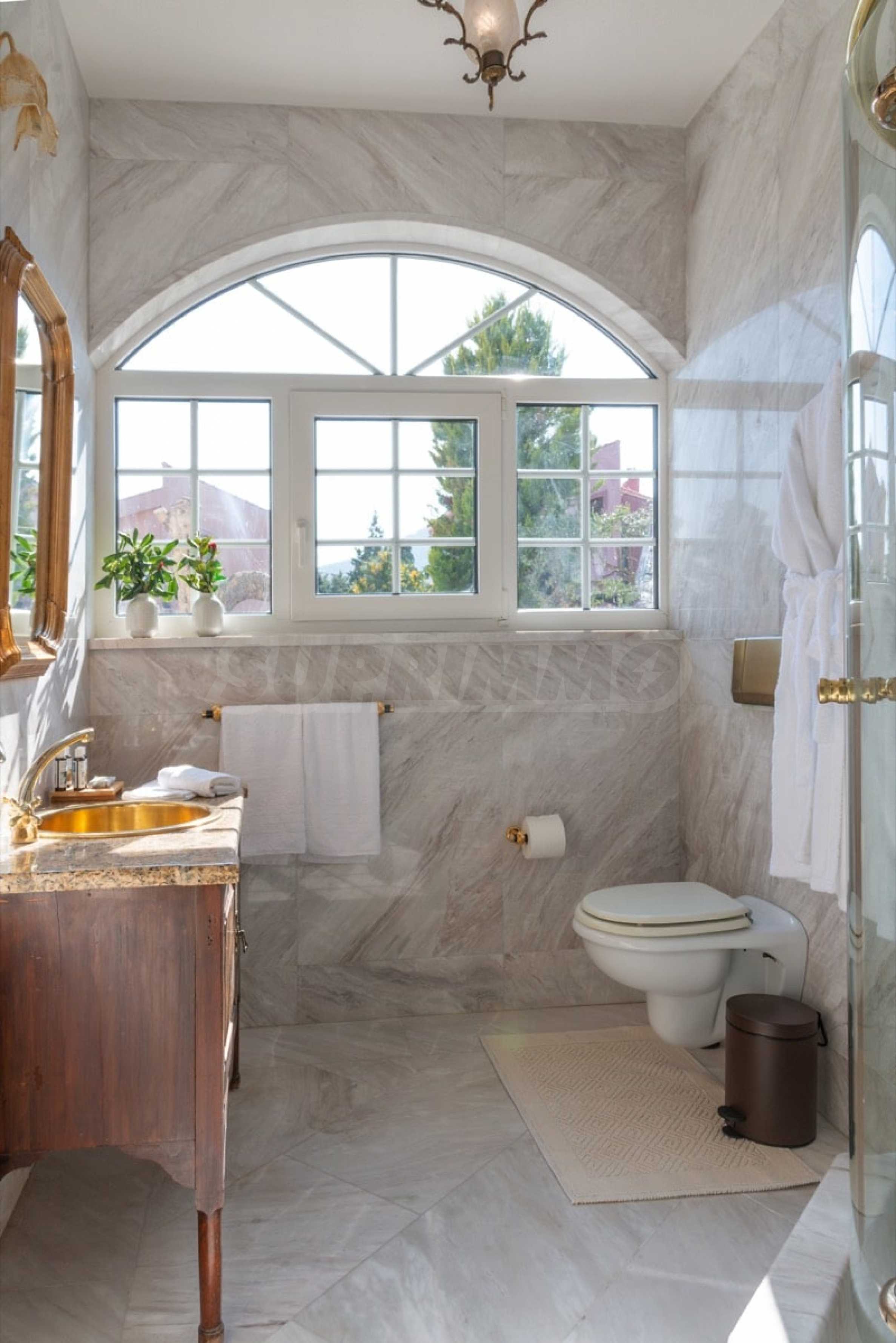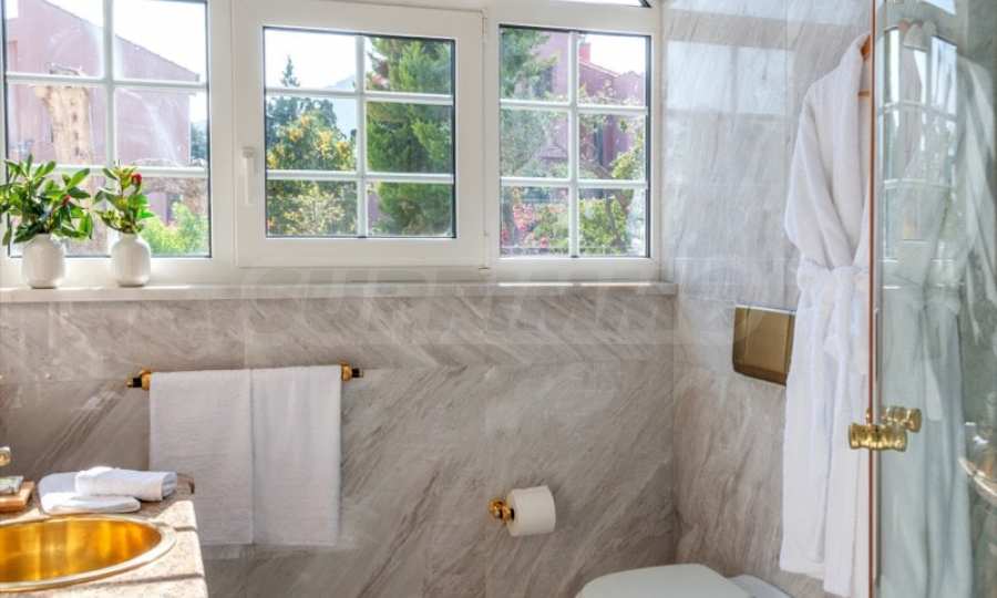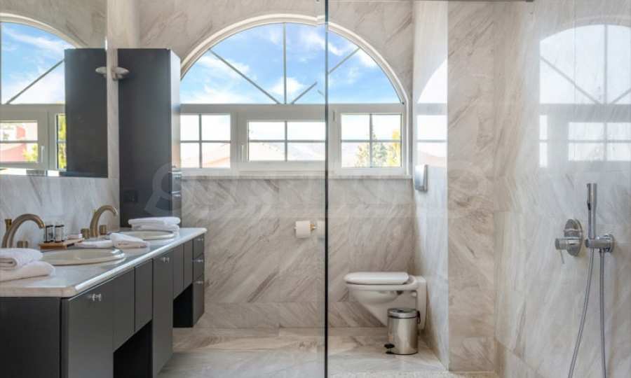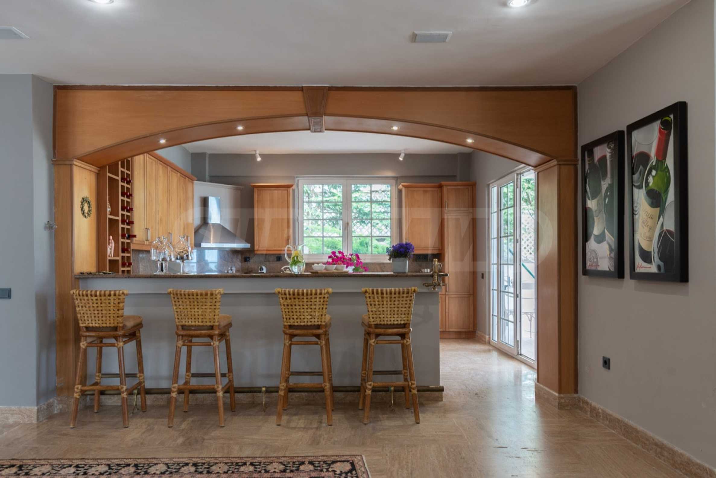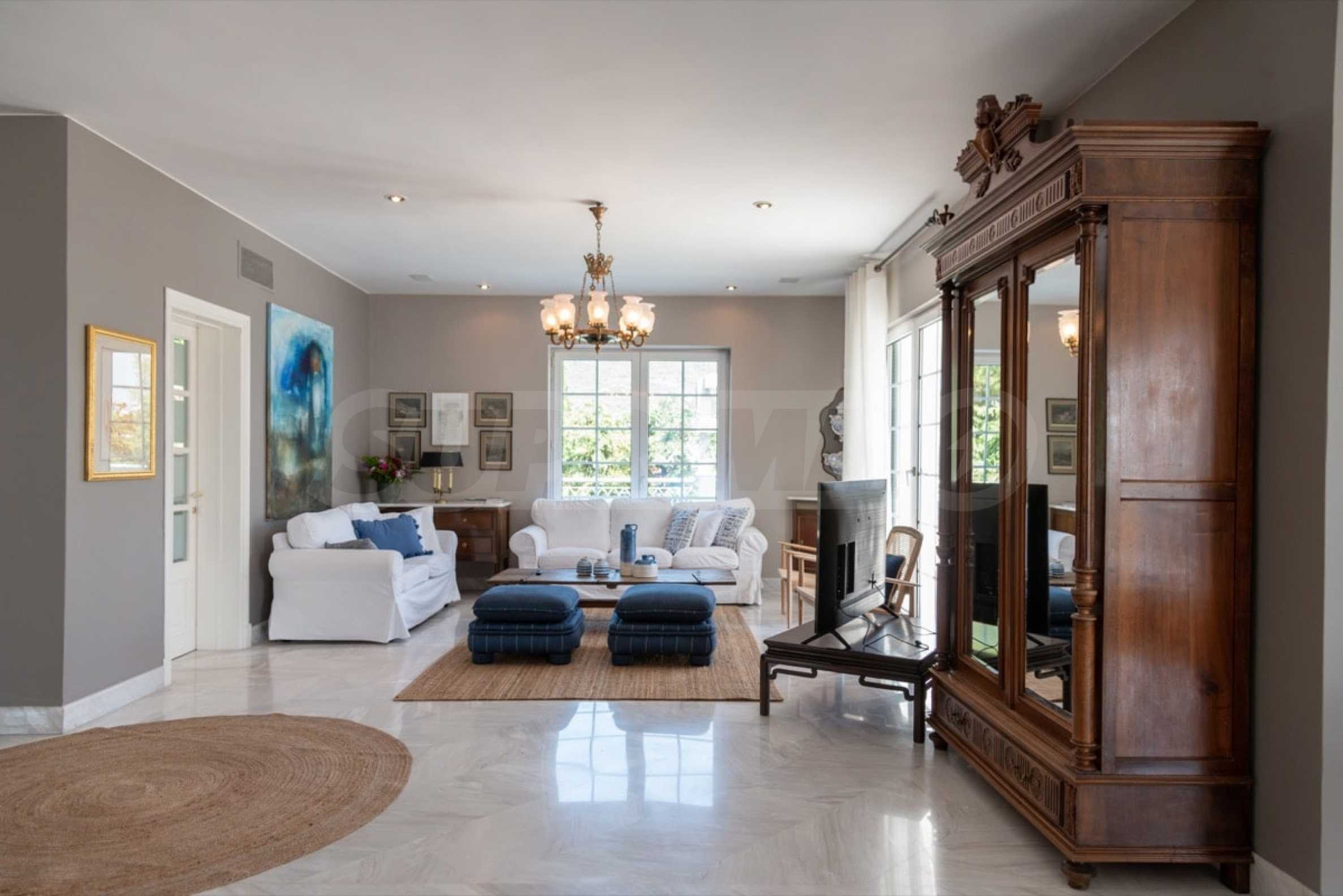 Come into this gorgeous property featuring 6 bedrooms, 8 bathrooms, 2 living rooms and 2 fully equipped kitchens, also with a playroom in the semi-basement. Five of the bedrooms have their own bathroom, as well as an outdoor sitting area, veranda or terrace. In the extremely well-maintained yard arranged with different types of trees, palms, pines, olives, oranges and lemons, you will enjoy a swimming pool, a summer kitchen with a pizza oven and BBQ, a dining room, and many corners from which you can admire the unique views of Aegean Sea.
