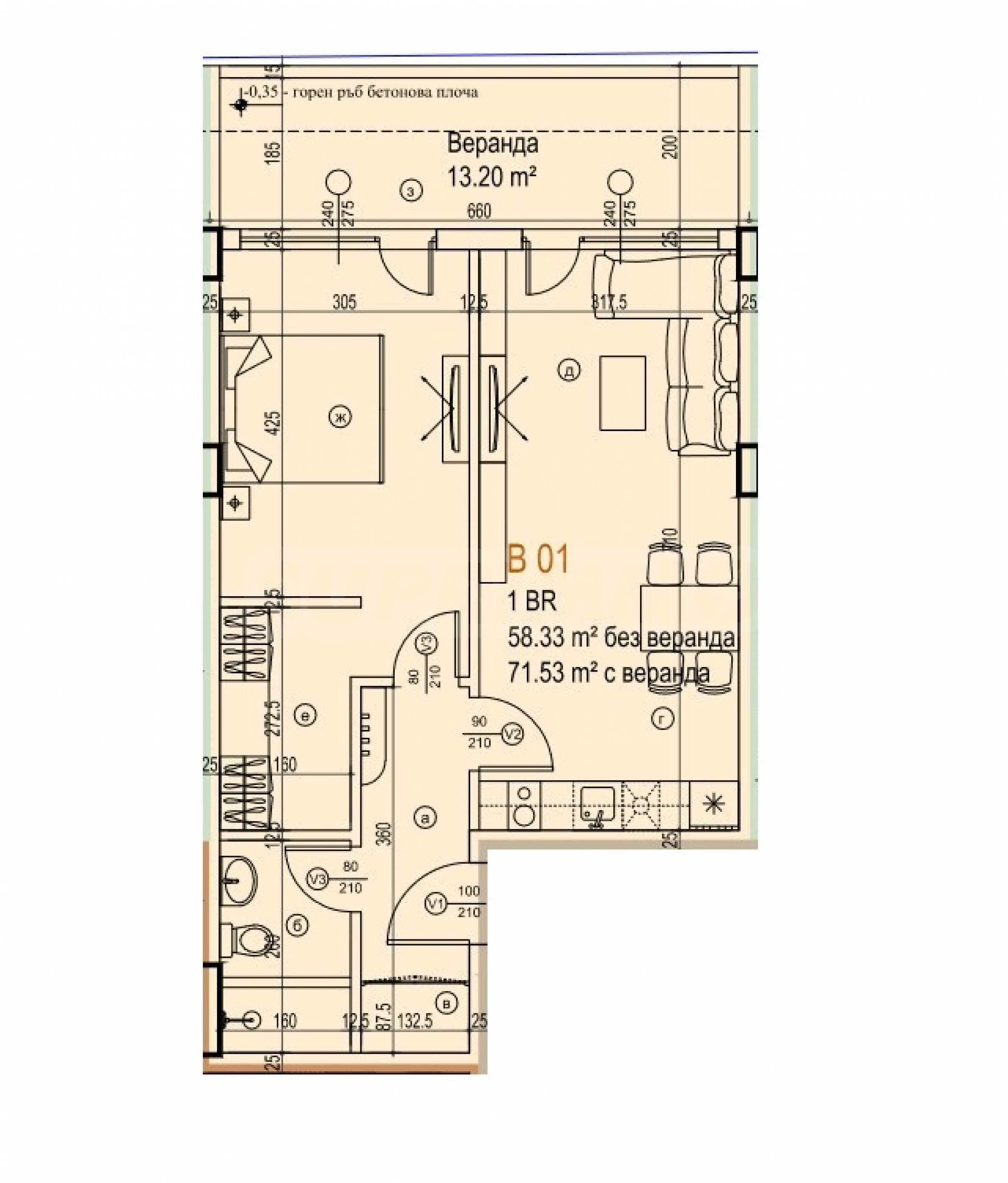 We present a one-bedroom apartment with a veranda in a new gated complex, which combines high-class performance, modern amenities and a peaceful environment in harmony with nature. The location is in the preferred "Manastirski Livadi - Iztok" quarter, close to the main roads "Bulgaria" Blvd. and "Todor Kableshkov" Blvd., as well as with easy access to South Park and Bulgaria Mall.