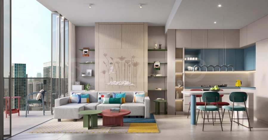 Homes at Rove Home are fully furnished and space-optimized through smart and modular ORI housing solutions never before seen in the region. You can turn your home into a comfortable living area whenever you want. Some units feature flexible spaces and even expandable walls when you want to have a few more guests – all of which come with integrated smart home systems. Residents will appreciate the built-in Italian appliances in the kitchen, the unique double-sided glass doors and the high ceilings that make the apartments visually more spacious.