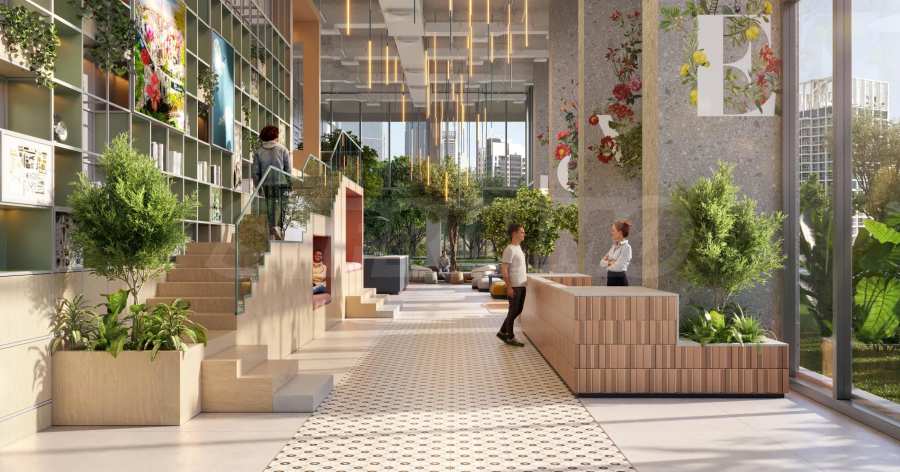 On the territory of the complex you will find a wide range of amenities, distributed on different levels. On the ground level you will find a cafe, co-working space, private meeting rooms, a double-height lobby lounge, shops and an outdoor terrace. Inside the podium level you will find a gym, multi-purpose room, guest rooms, climbing wall, karaoke, cinema with hammocks, MultiBall interactive games, arcade games and a game lounge. The outdoor area will offer a swimming pool, sunbathing area, outdoor gym, cascading pool, yoga area, water cycling, cabanas with beds, jacuzzi, terrace with outdoor games, co-working space. In addition to all this, the complex will feature an external staircase that connects the podium level directly to the adjacent park and scenic promenade. The Sky garden on levels 22 and 23 offers a swimming pool, steam bath and sauna, padel, table tennis, co-working space and relaxation areas, an amphitheater and a multi-sport court. Finally, the roof will feature a barbecue area, a summer kitchen, cabanas, relaxation areas, a telescope and beautifully landscaped public spaces.