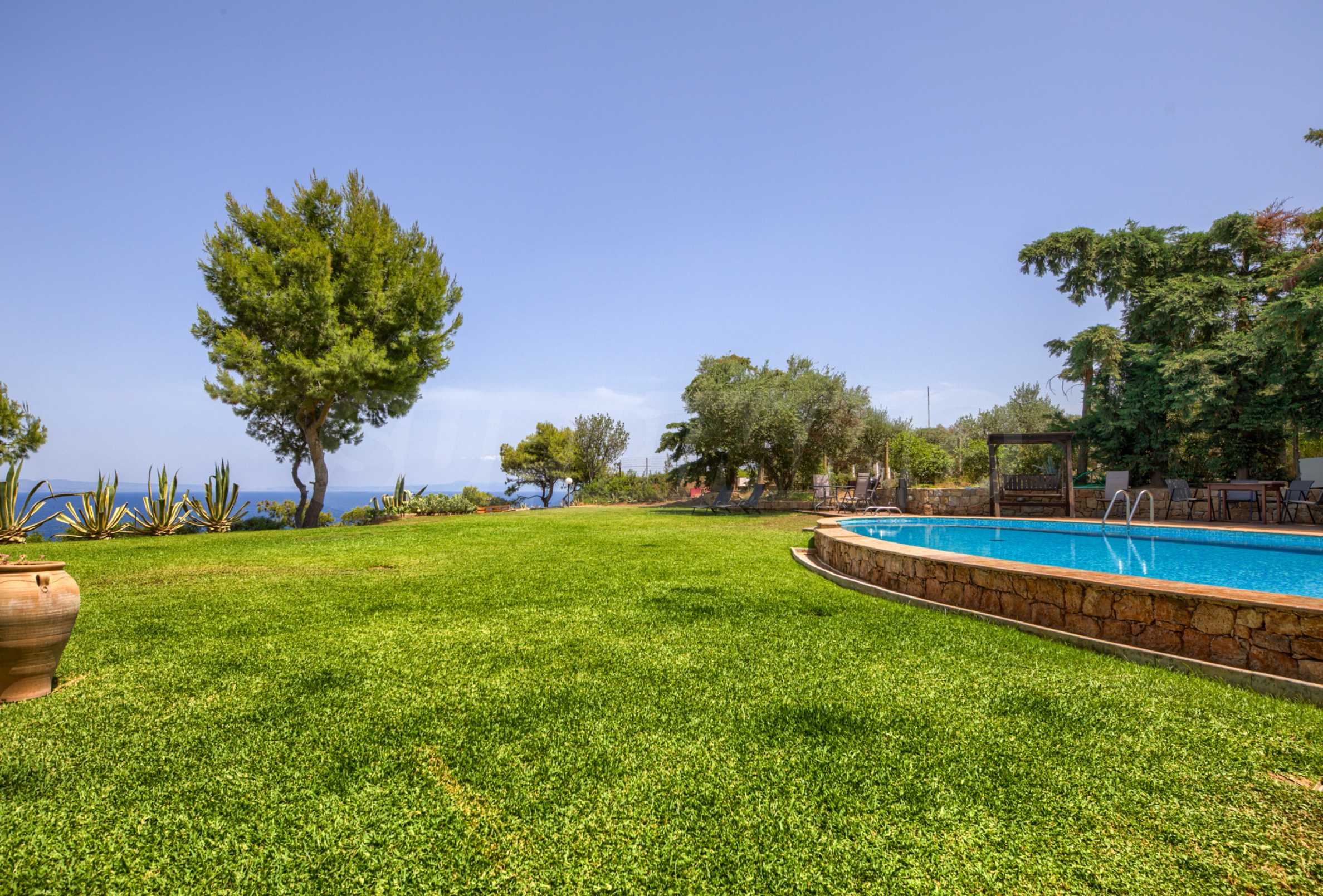 Touch that solidity skillfully woven with casual artistry and pristine timelessness. Enjoy the unique, vast views of the Aegean Sea stretching to Sithonia and even to Mount Athos/Athos.
