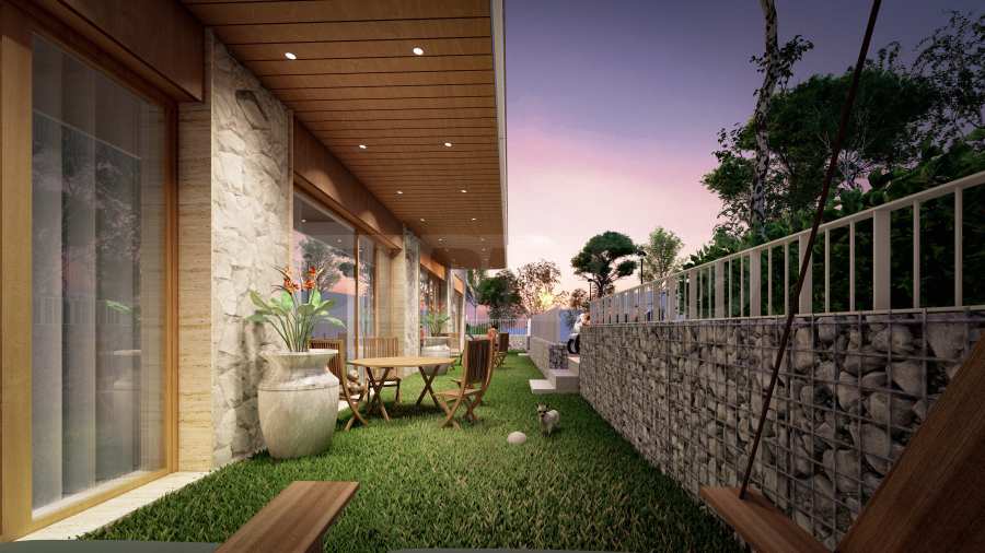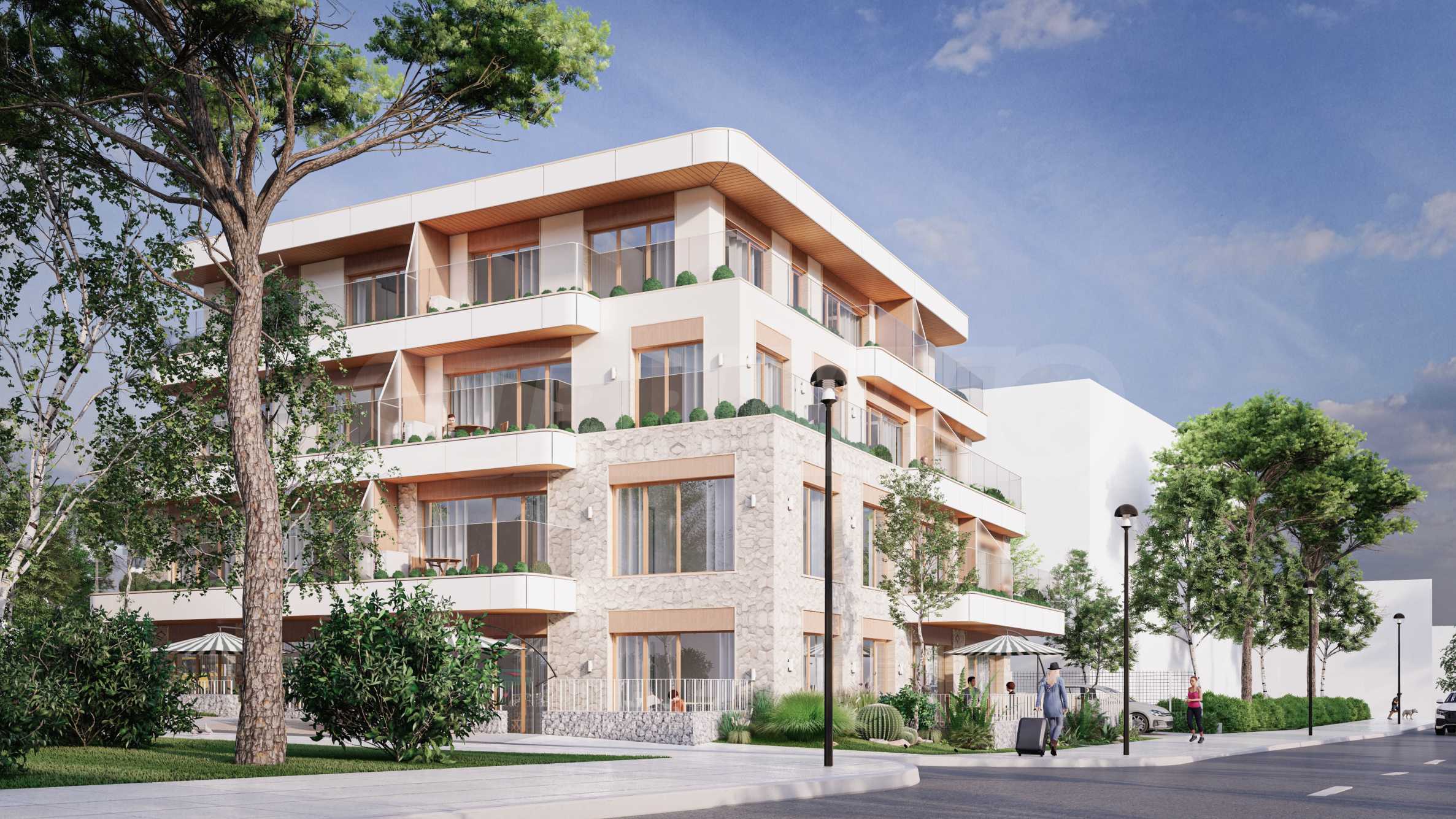• terraces clad with etalbond and bottoms with slats in wood flader;