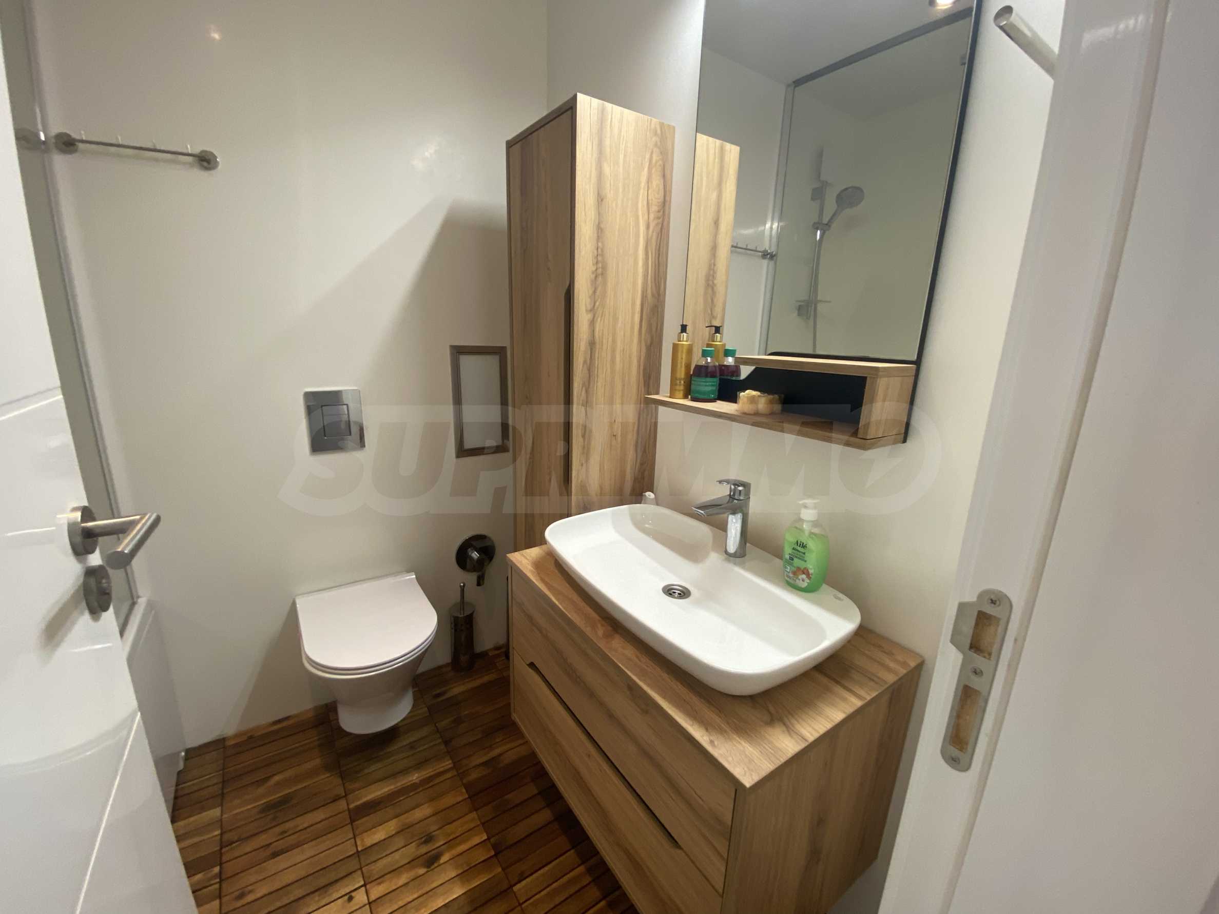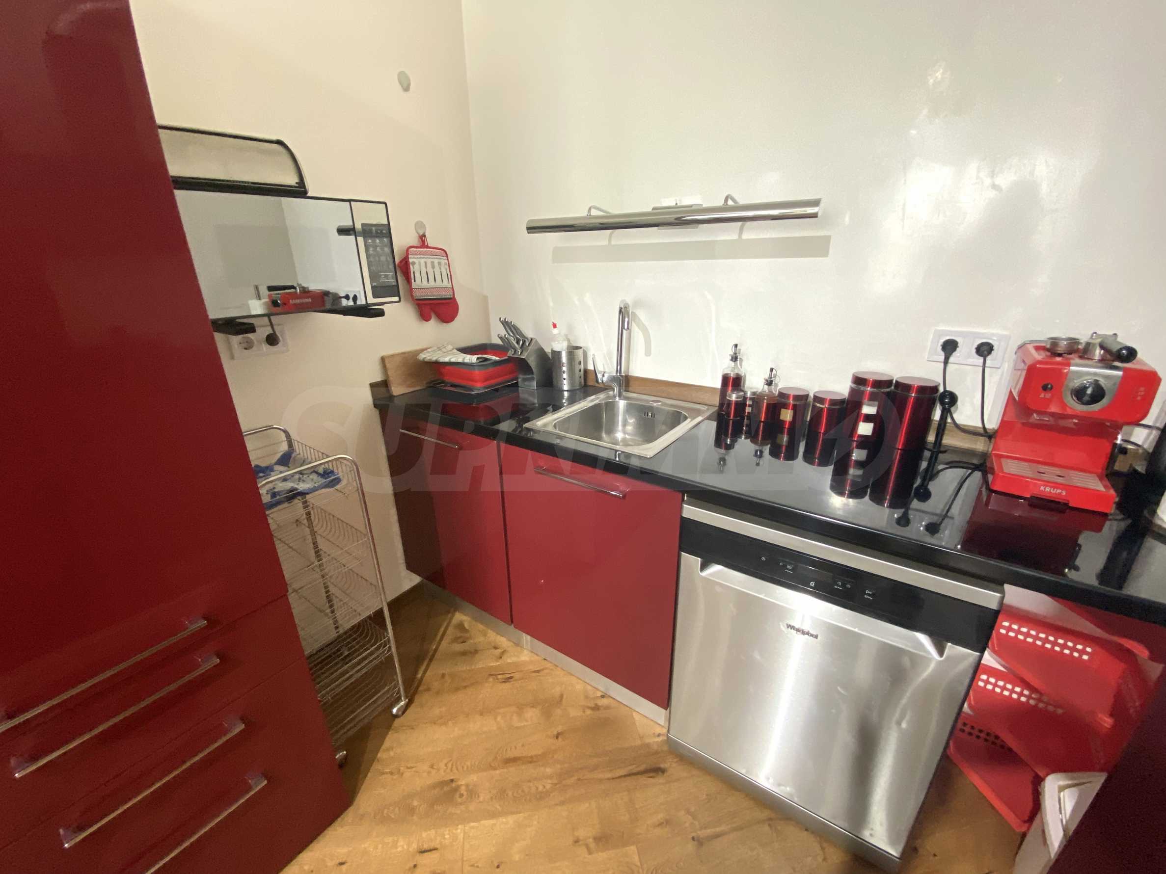 The apartment is fully furnished and equipped with everything necessary for living. It facilities natural carpet flooring and elegant Venetian plastered walls.