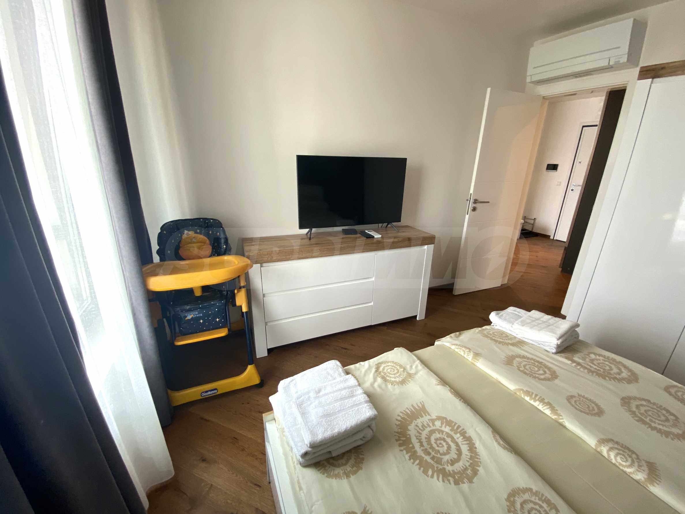 We present a stylish three-room apartment in a modern building, in the Chaika district of the city of Varna.
