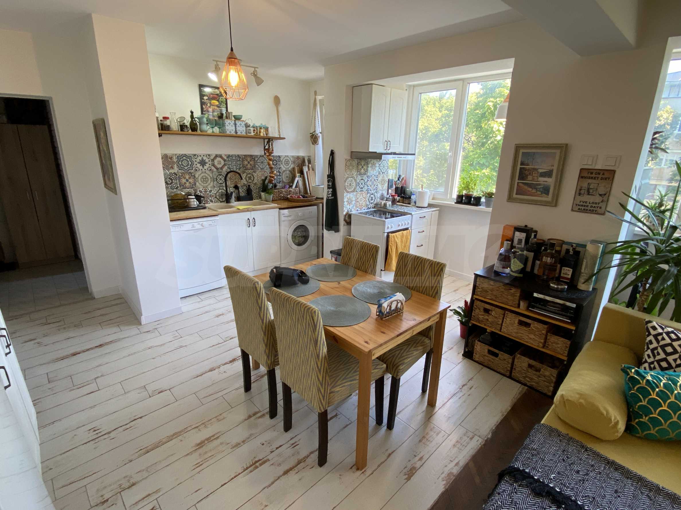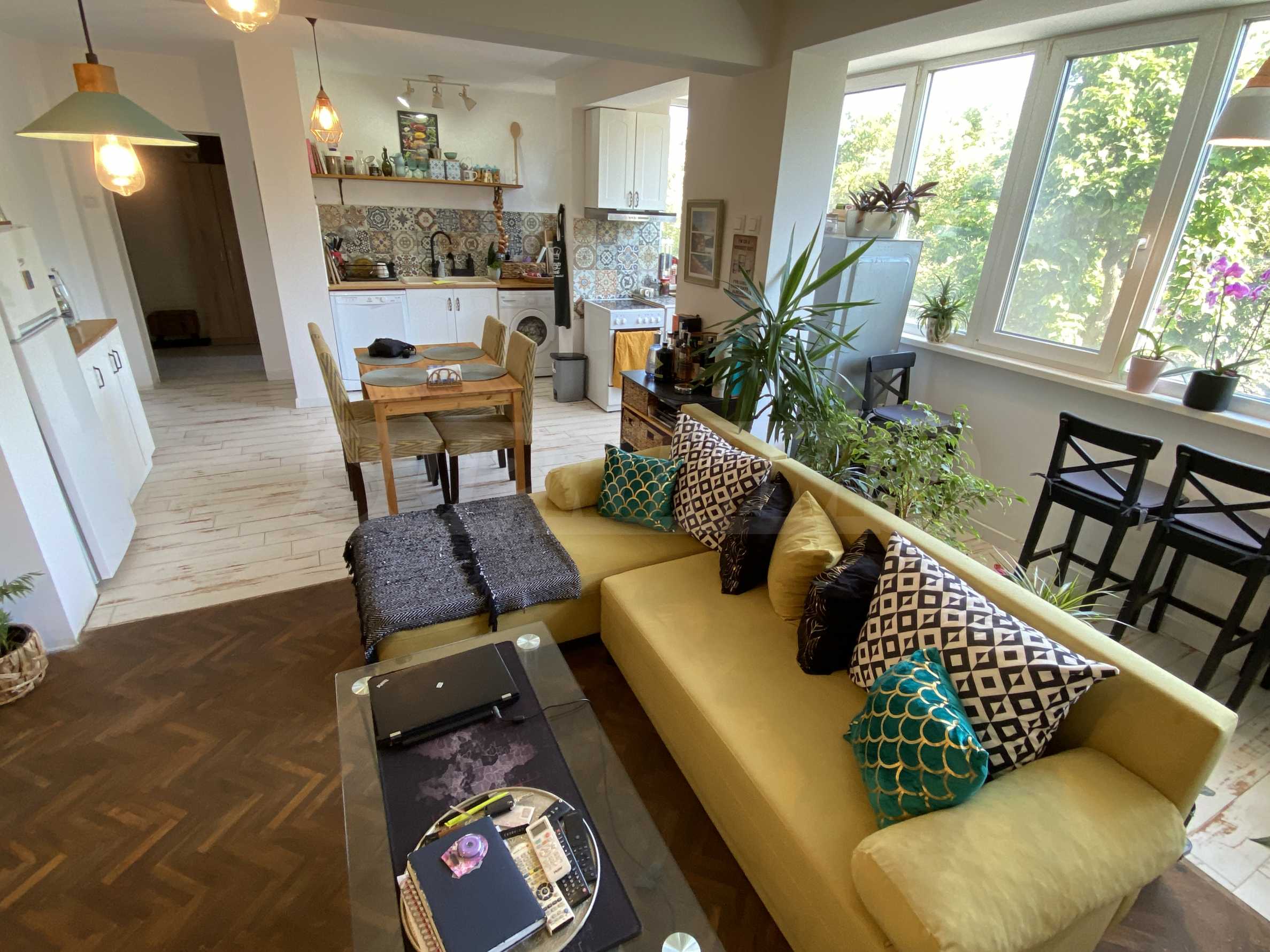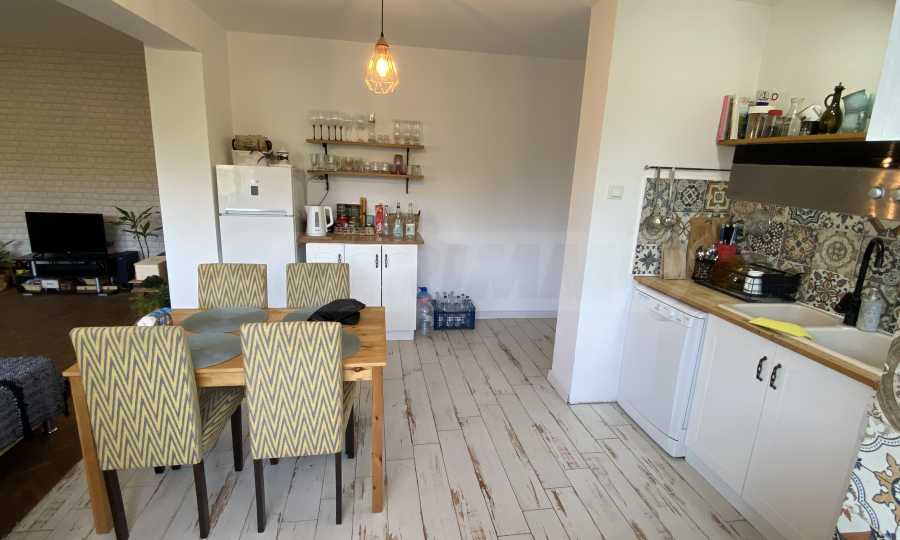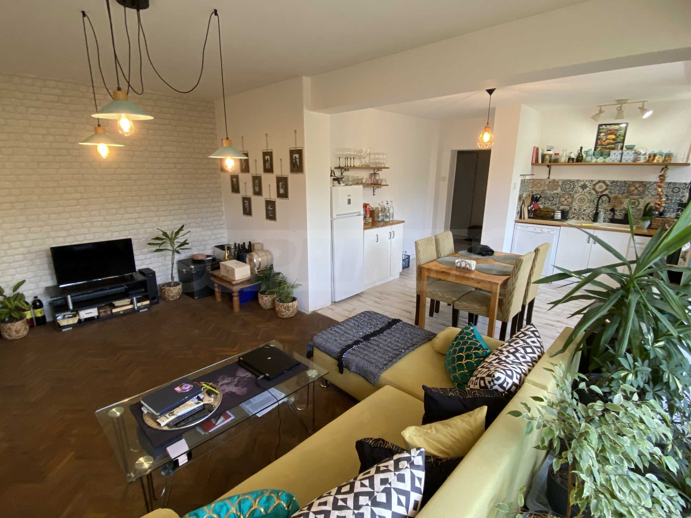 The apartment has an area of 97 sq.m. and is located on the third floor of a four-storey building without a lift. The flat has the following layout: hall, spacious living room with kitchenette and dining room, two bedrooms with access to a common terrace, bathroom and separate toilet.
