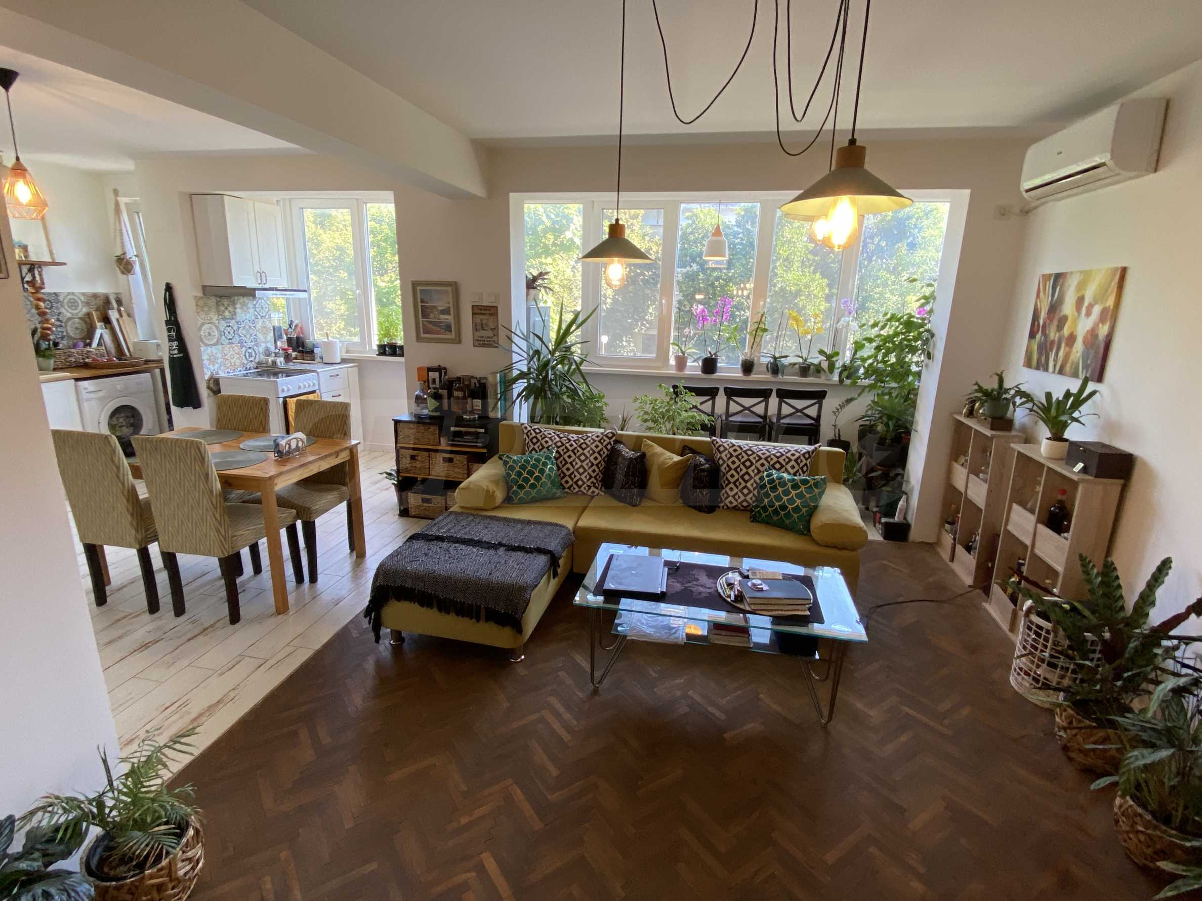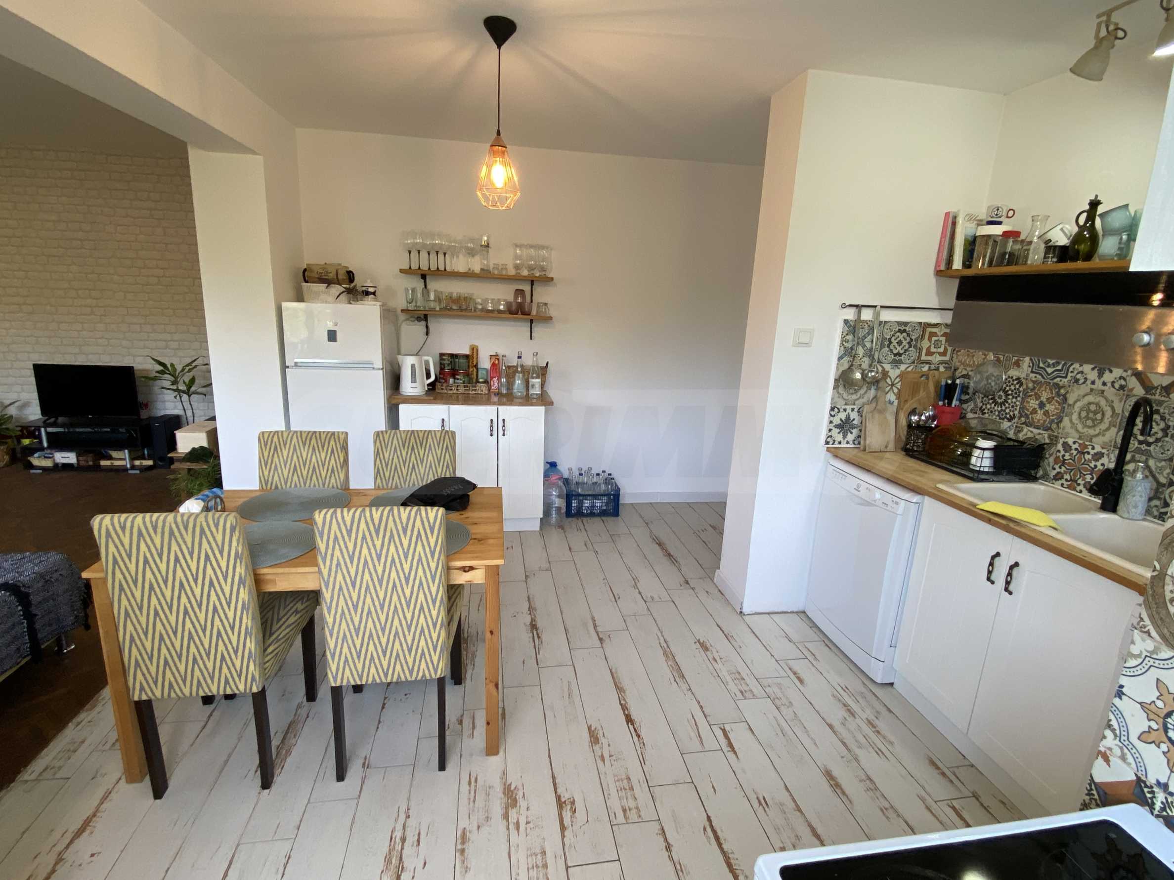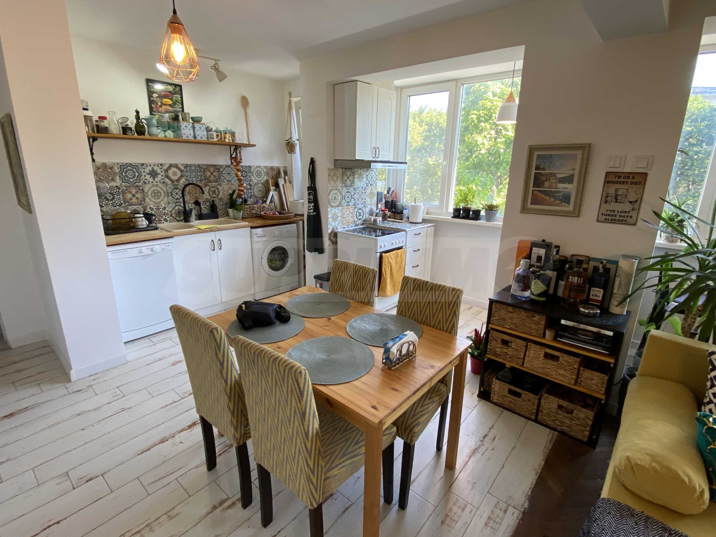 The apartment has an area of 97 sq.m. and is located on the third floor of a four-storey building without a lift. The flat has the following layout: hall, spacious living room with kitchenette and dining room, two bedrooms with access to a common terrace, bathroom and separate toilet.