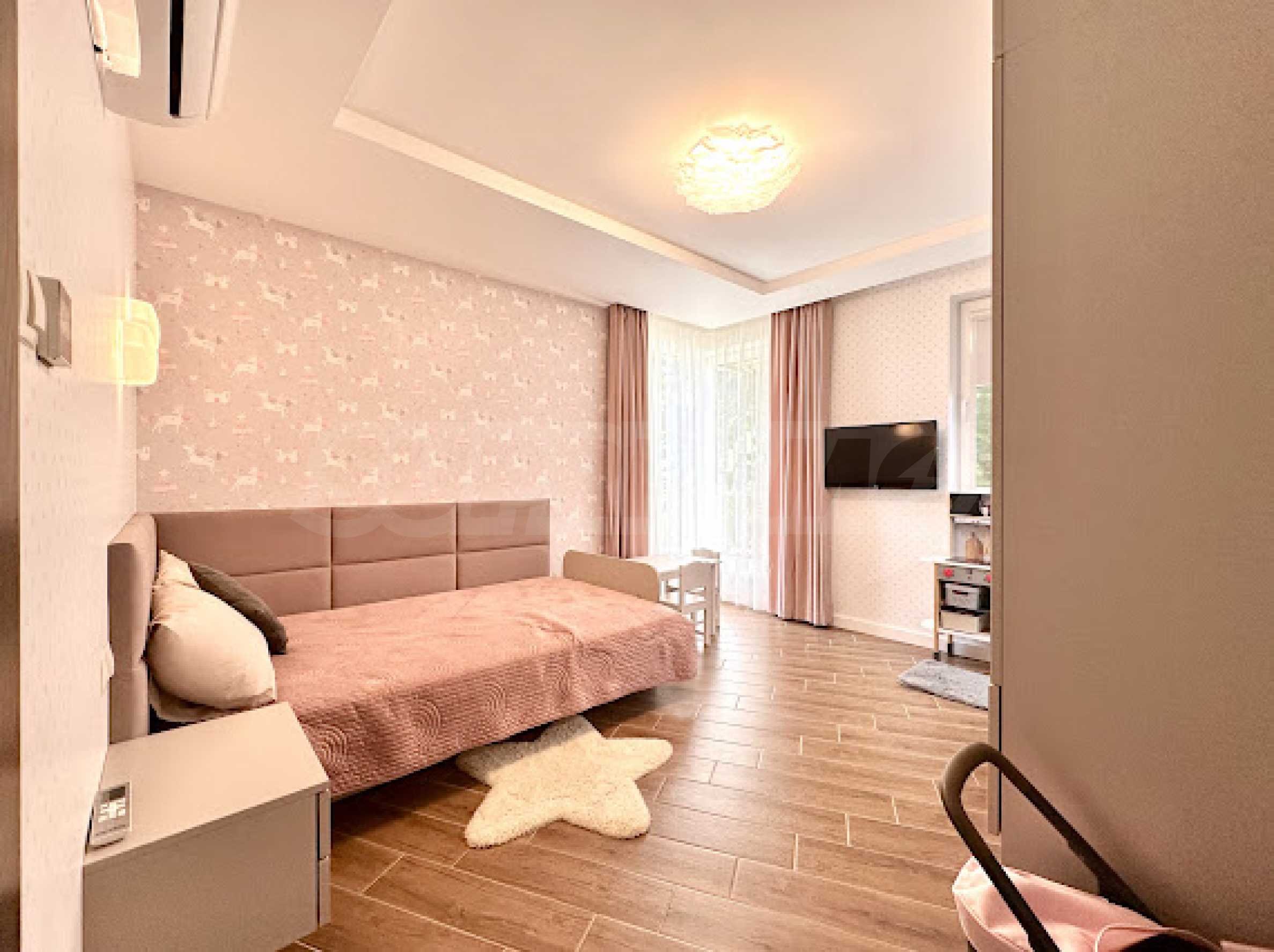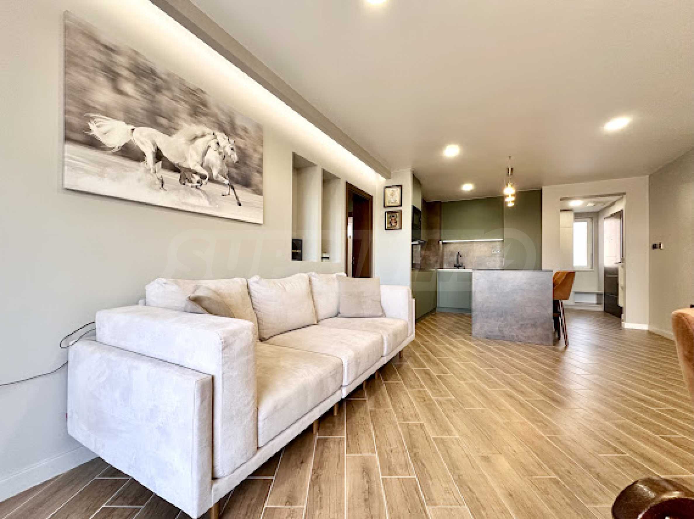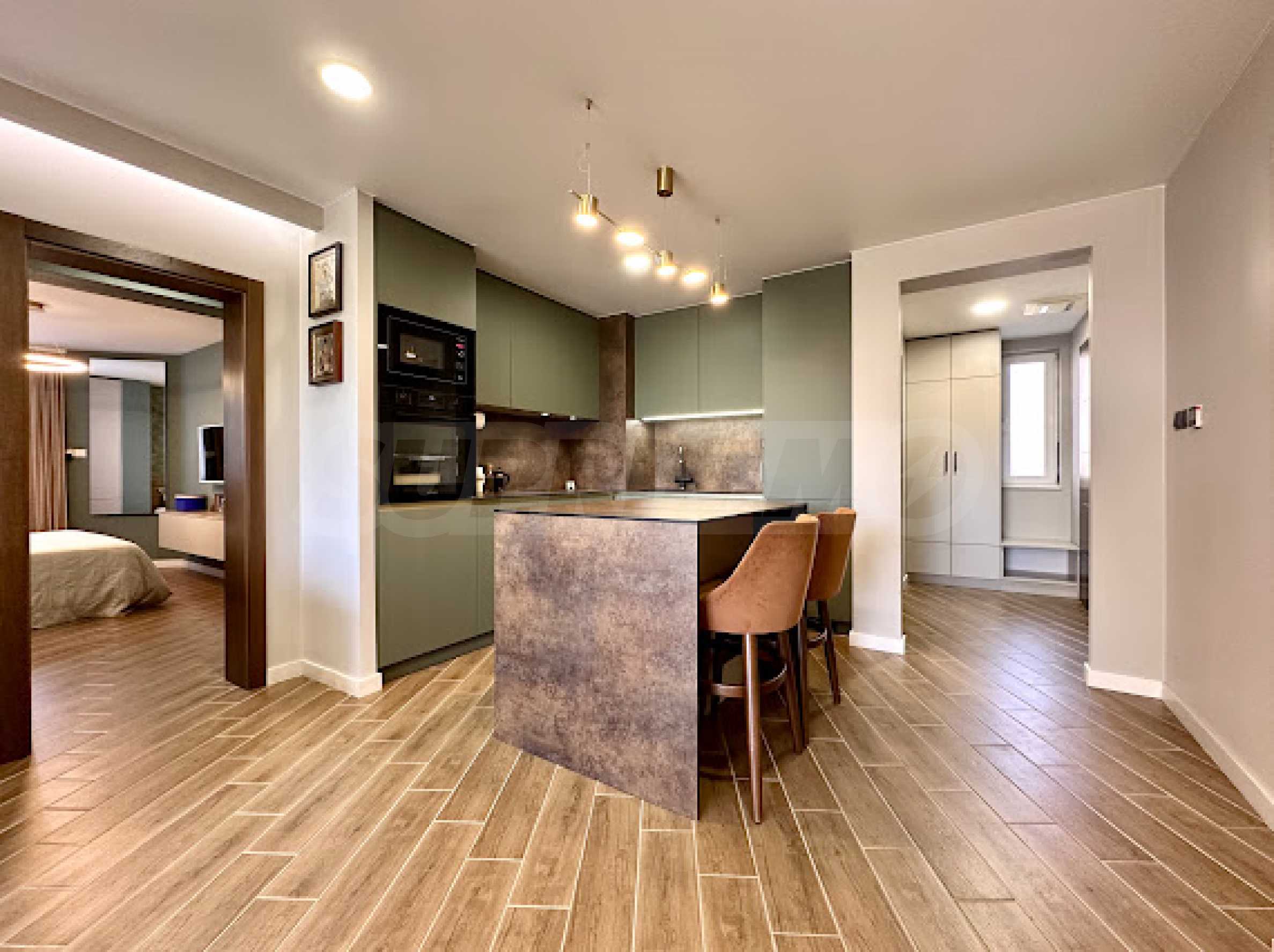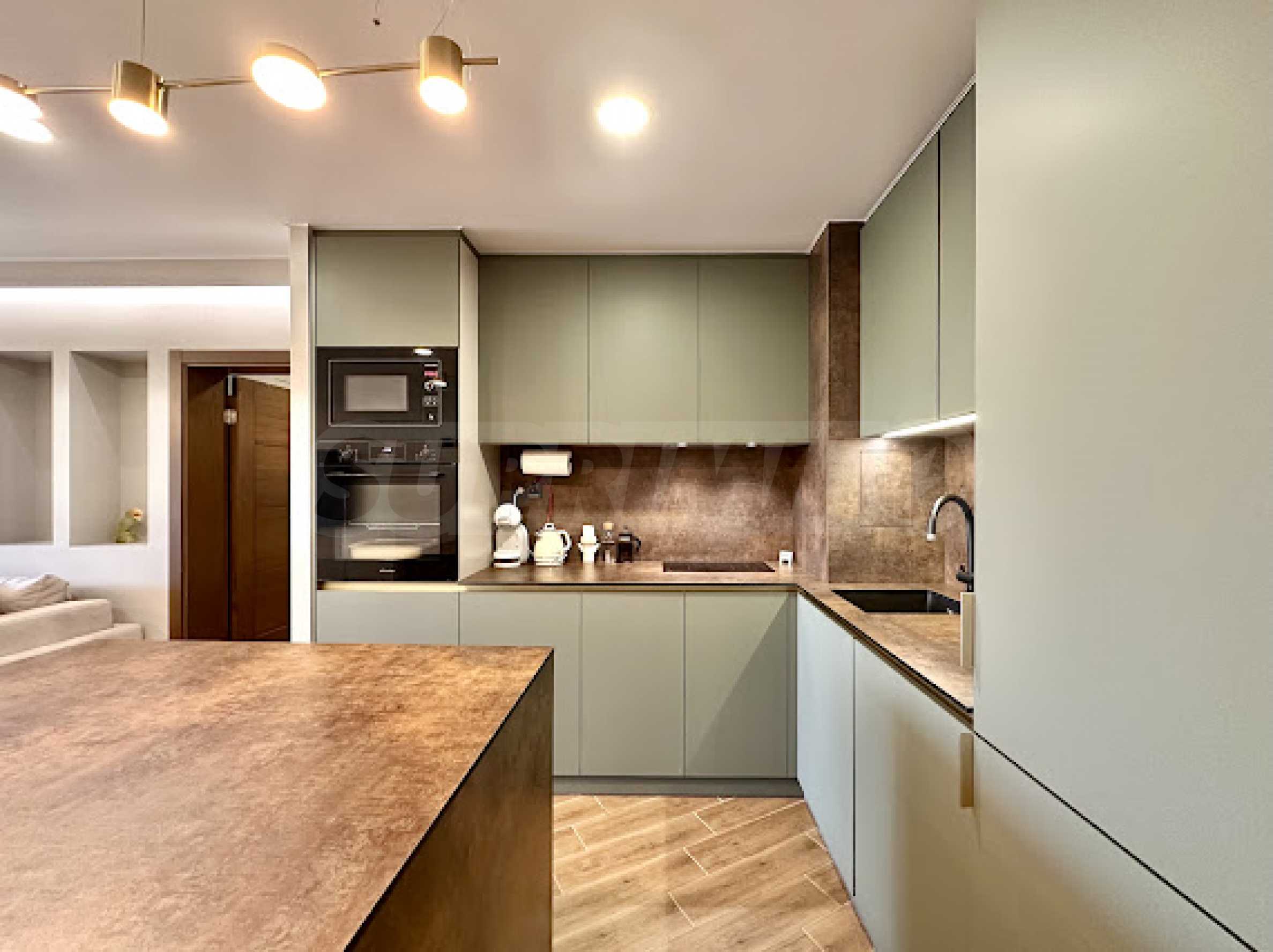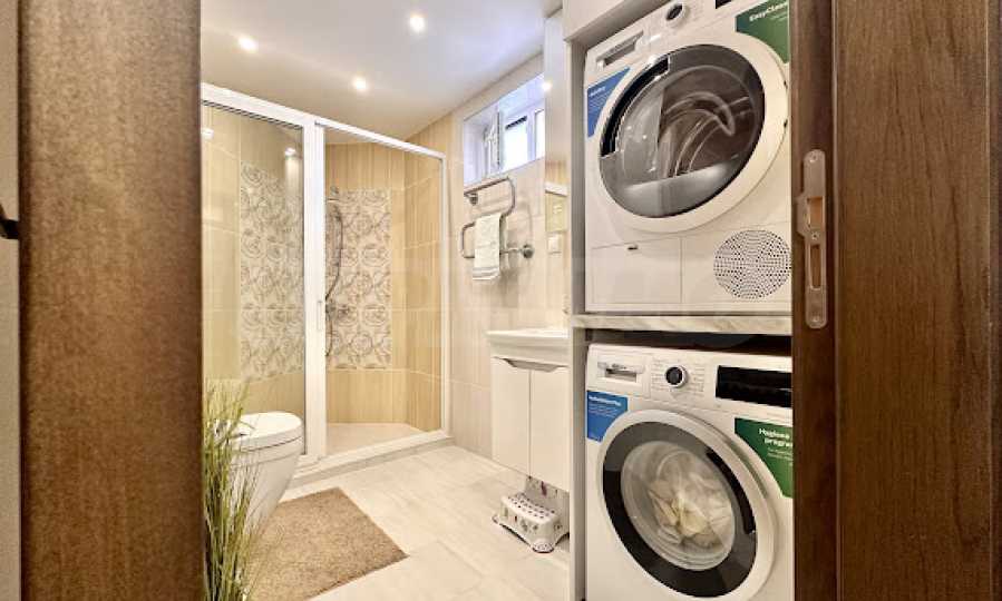 The apartment is first-class furnished with taste, with quality finishing works, furniture and appliances under warranty. All rooms, including the bathrooms, have underfloor heating.