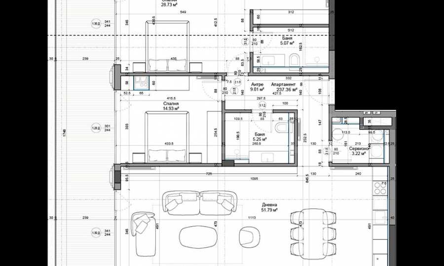 • spacious living room with kitchen and dining room - 51.79 sq m;