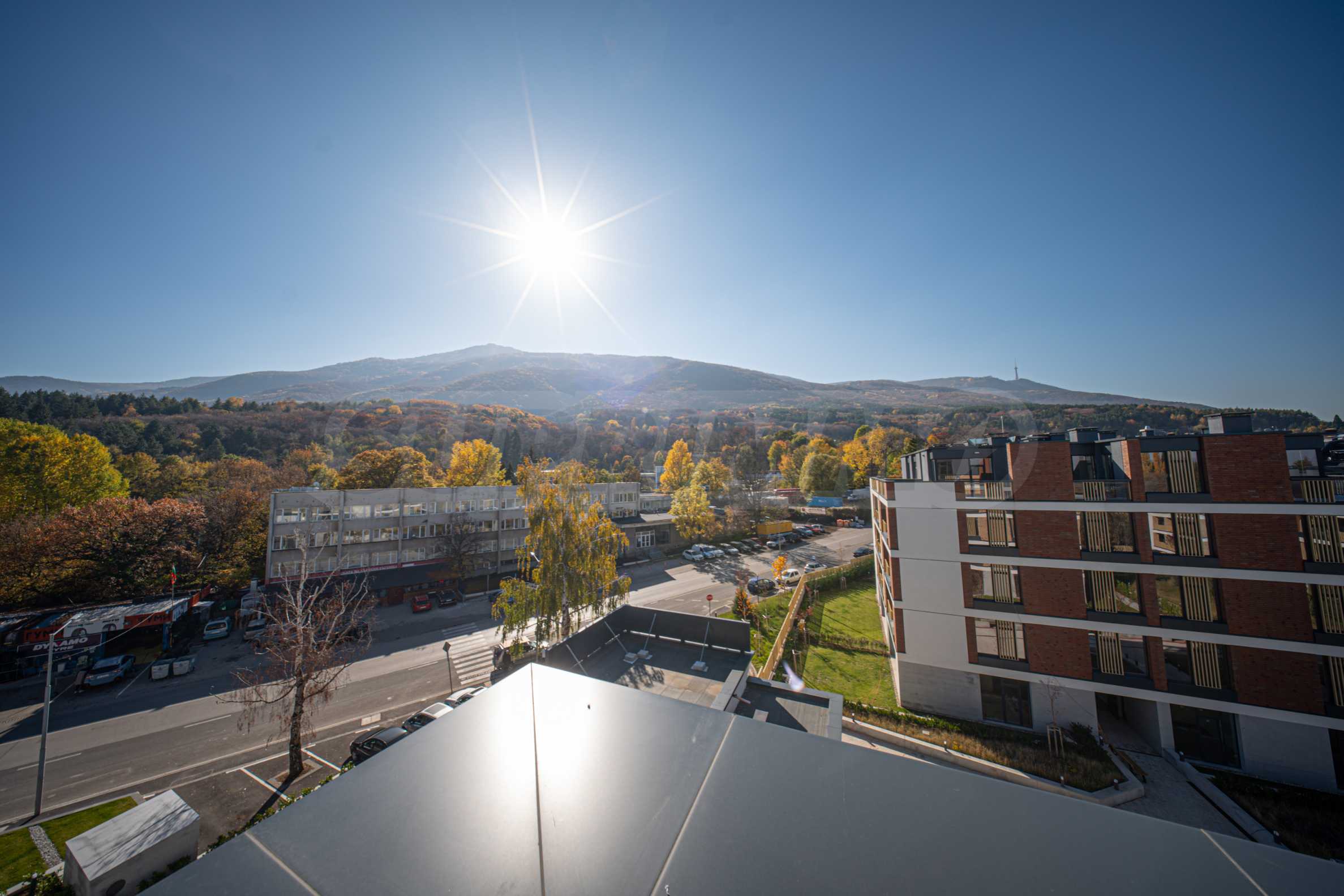 The complex consists of 8 buildings with a total of 204 apartments and studios with functional layouts and panoramic views of the city and Vitosha. The spaces between the buildings are designed with well-maintained gardens, walking paths, recreation areas and children's areas. The complex will also have a fitness center and a restaurant, and the security of the residents is guaranteed with controlled access and live security. Parking is provided with underground parking spaces and garages.