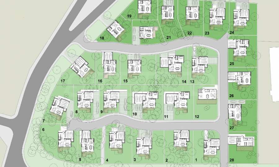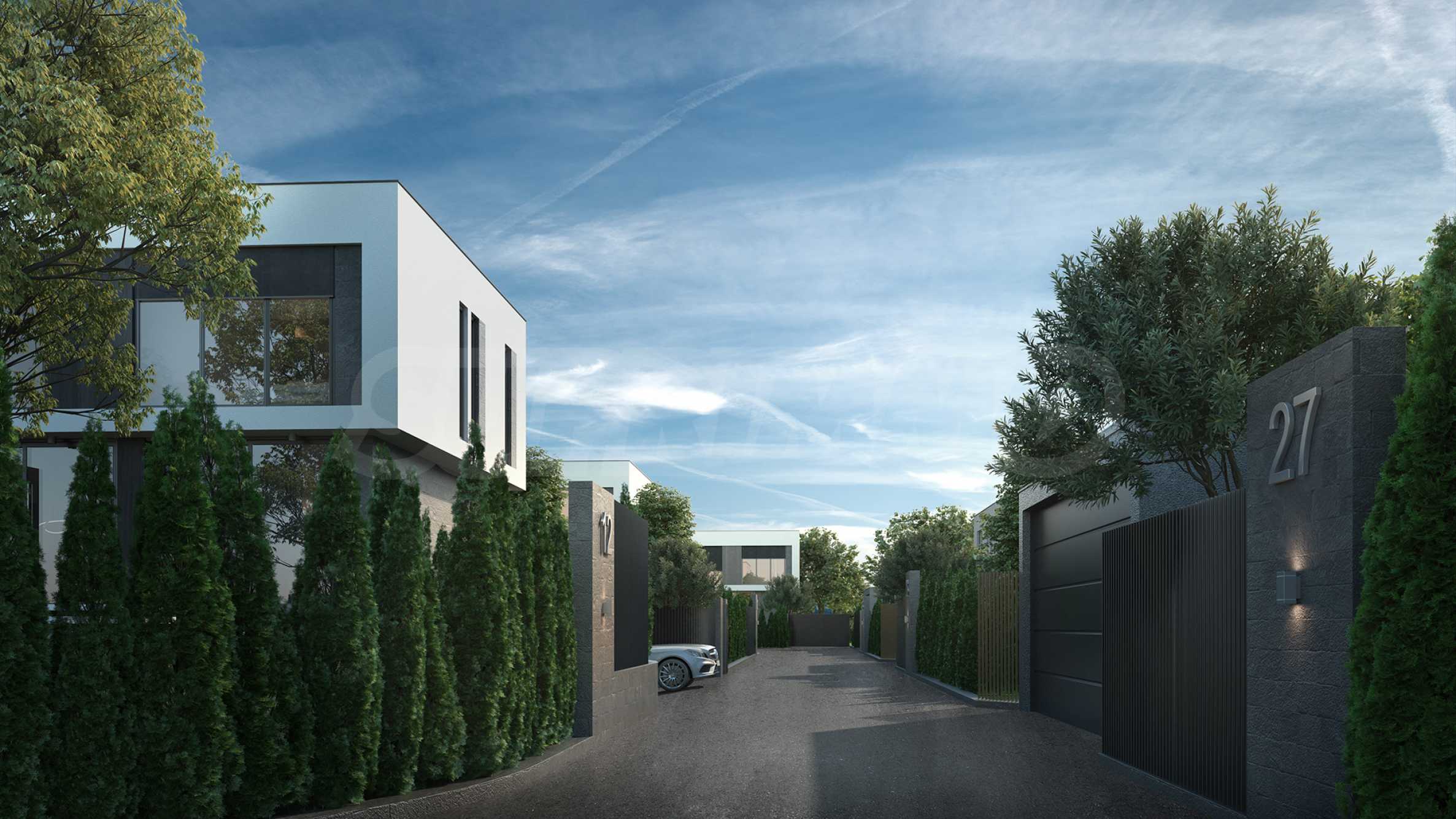 The unique thing about this project is the construction itself, built in a densely forested plot. It gives the feeling of a gated complex in the mountains, with wide alleys in a closed society. The project includes 14 houses with a modern and clean look. The regular geometric shapes used in the design express the feeling of connection with the land. The square shapes express static stability and enhance the feeling of coziness and security - your home is your fortress. All houses have a southern or southeastern exposure, guaranteeing coolness in summer, warmth and light in winter, comfort in all seasons.