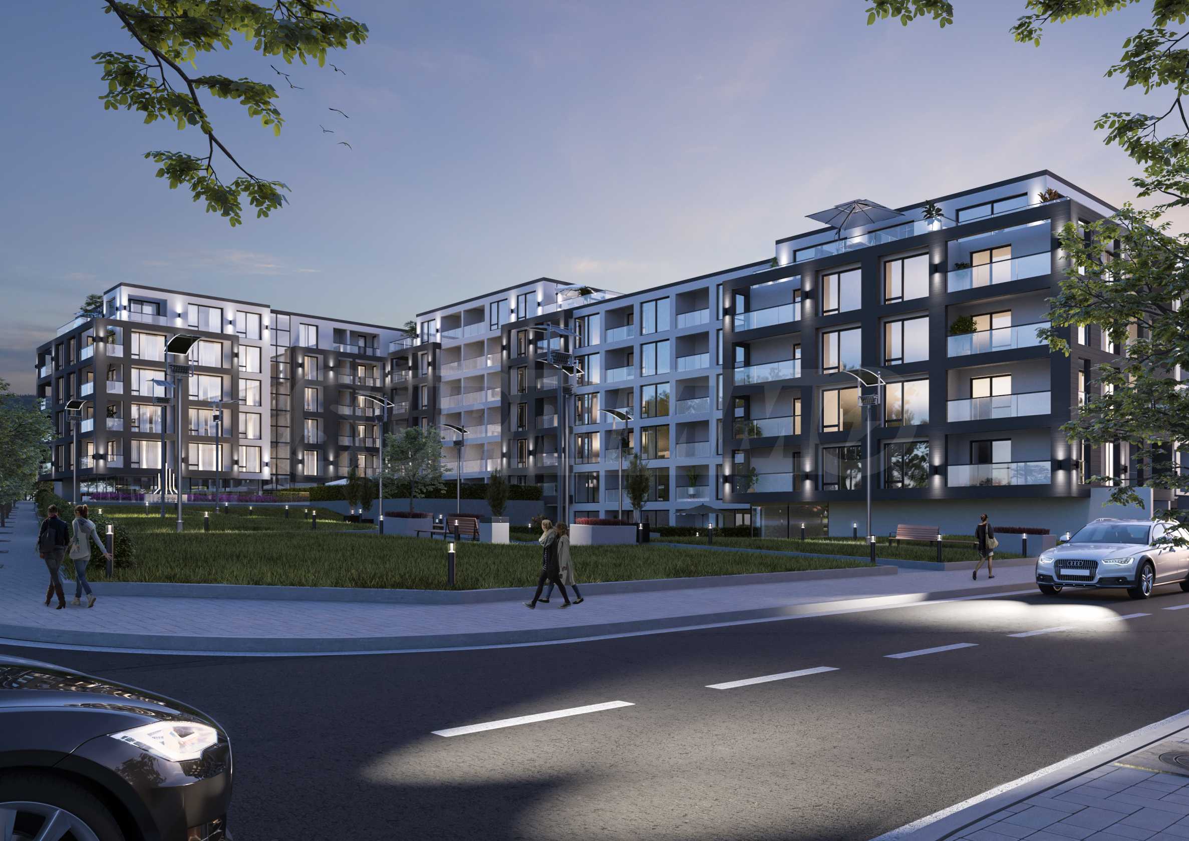 The complex offers 176 one-, two-, three- and four-bedroom apartments, 42 garages and 23 parking spaces. The building is distributed between three entrances, each with 5 residential floors. It has ground floor apartments with their own verandas and a landscaped courtyard. The overall vision is modern with a feeling of comfort and coziness, without compromising on the quality of construction.