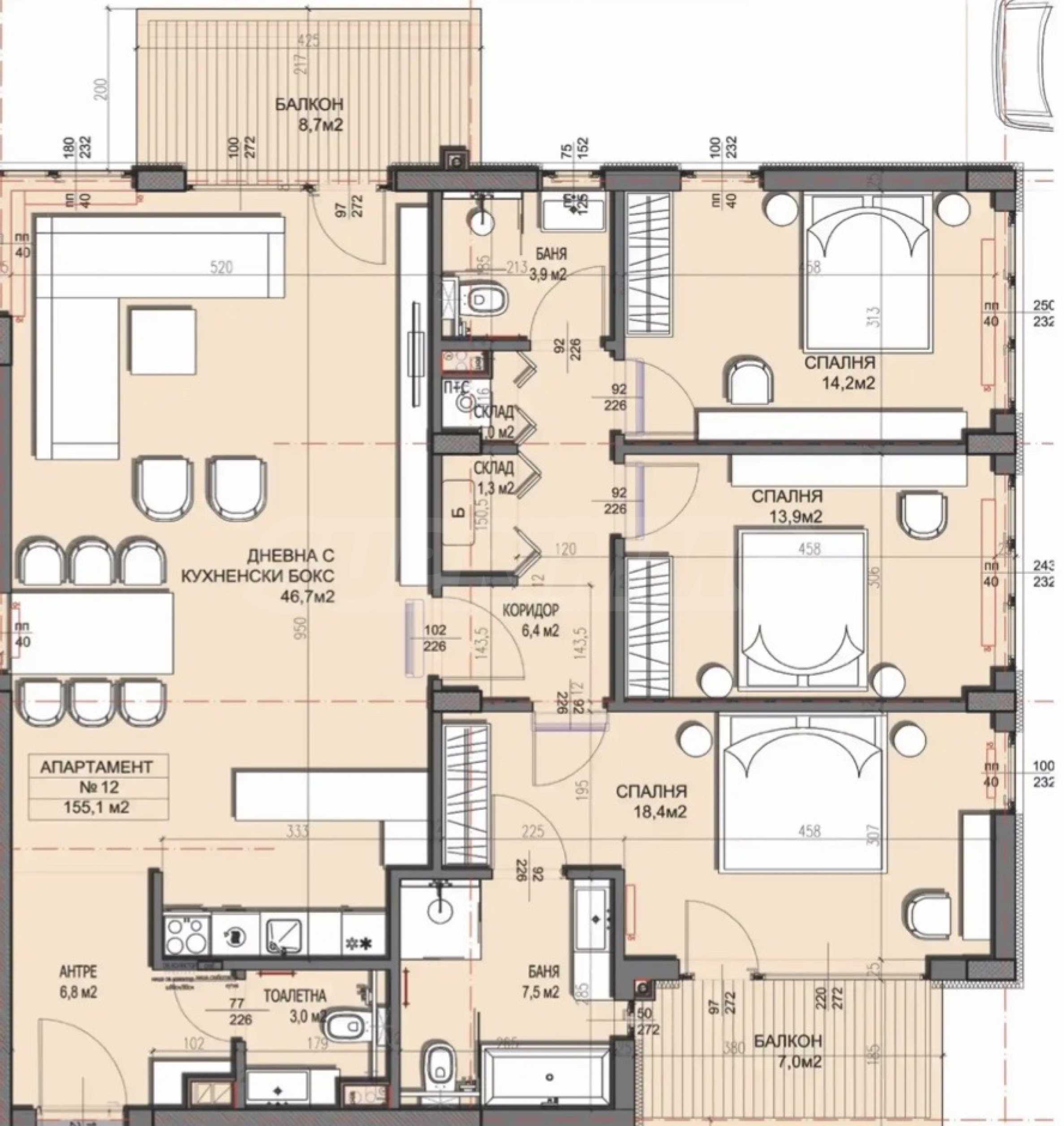 We present a four-bedroom apartment with views of Vitosha Mountain and Sofia, for sale in the heart of Dragalevtsi district, located on the 3rd floor out of 4, in a modern new building with Act 16.