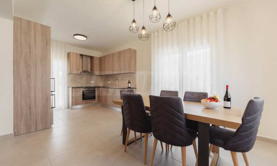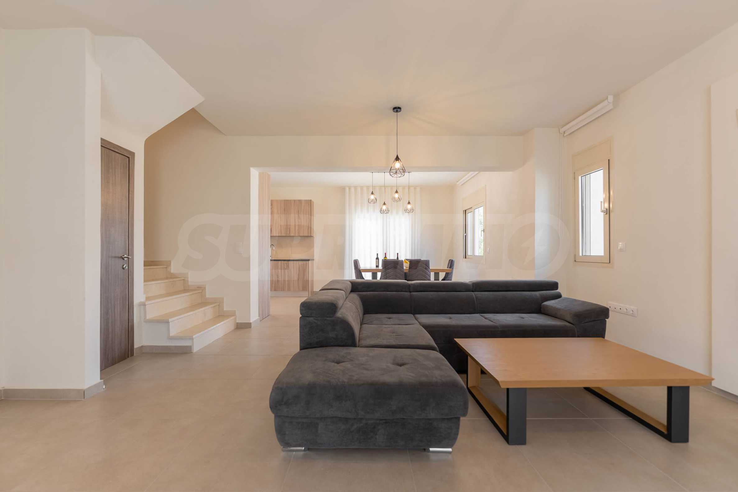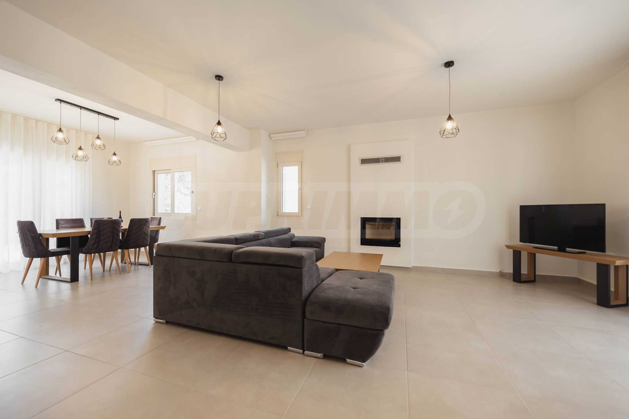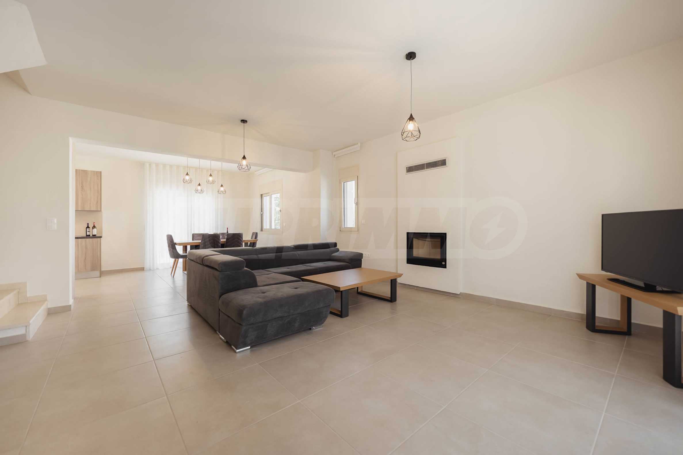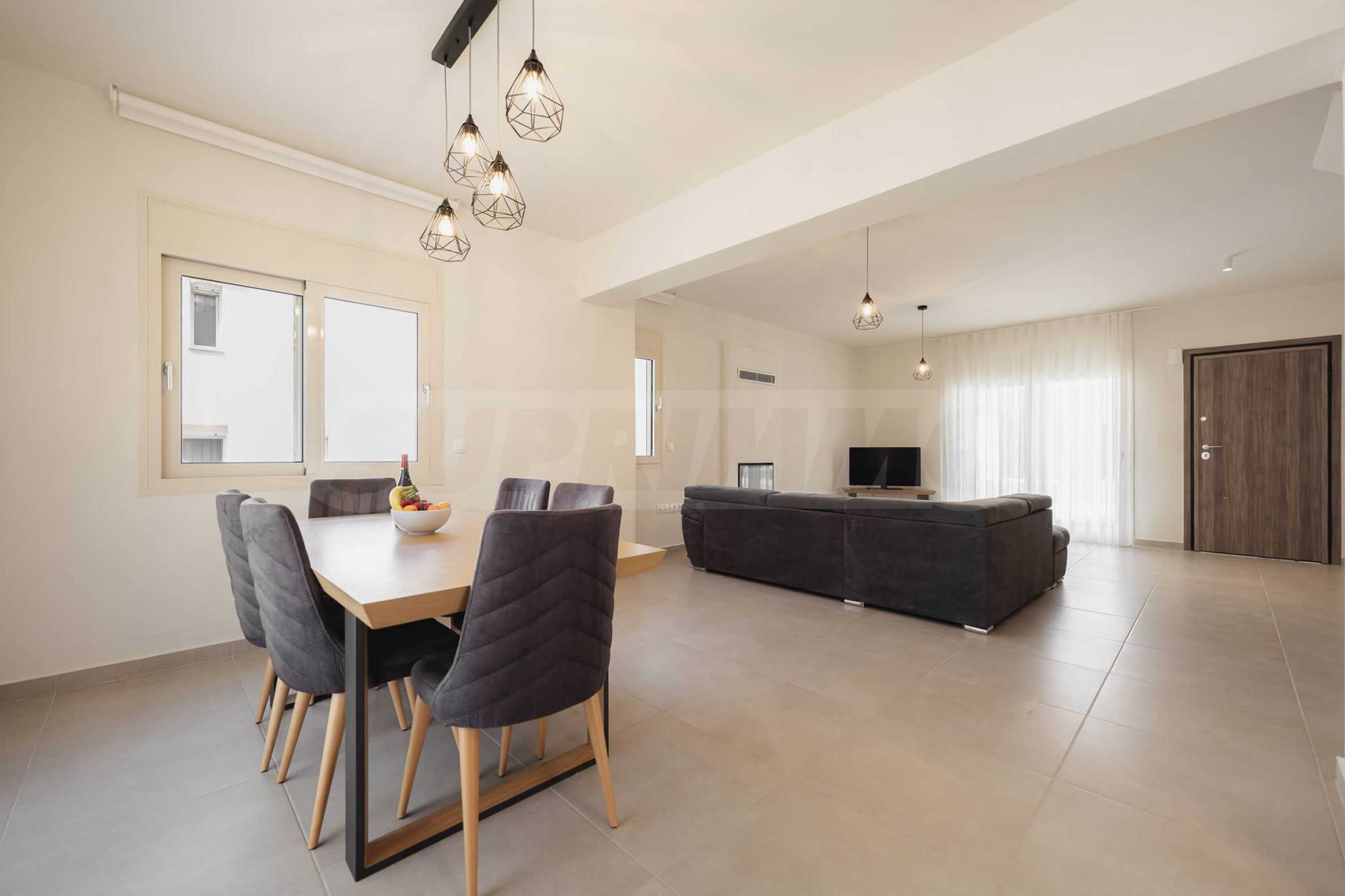 This newly built house with an area of 182 m2 offers modern comfort and style a few steps from the seashore. The house consists of a spacious living area with a kitchenette and a dining room, which creates an ideal space for family gatherings and pleasant evenings.
