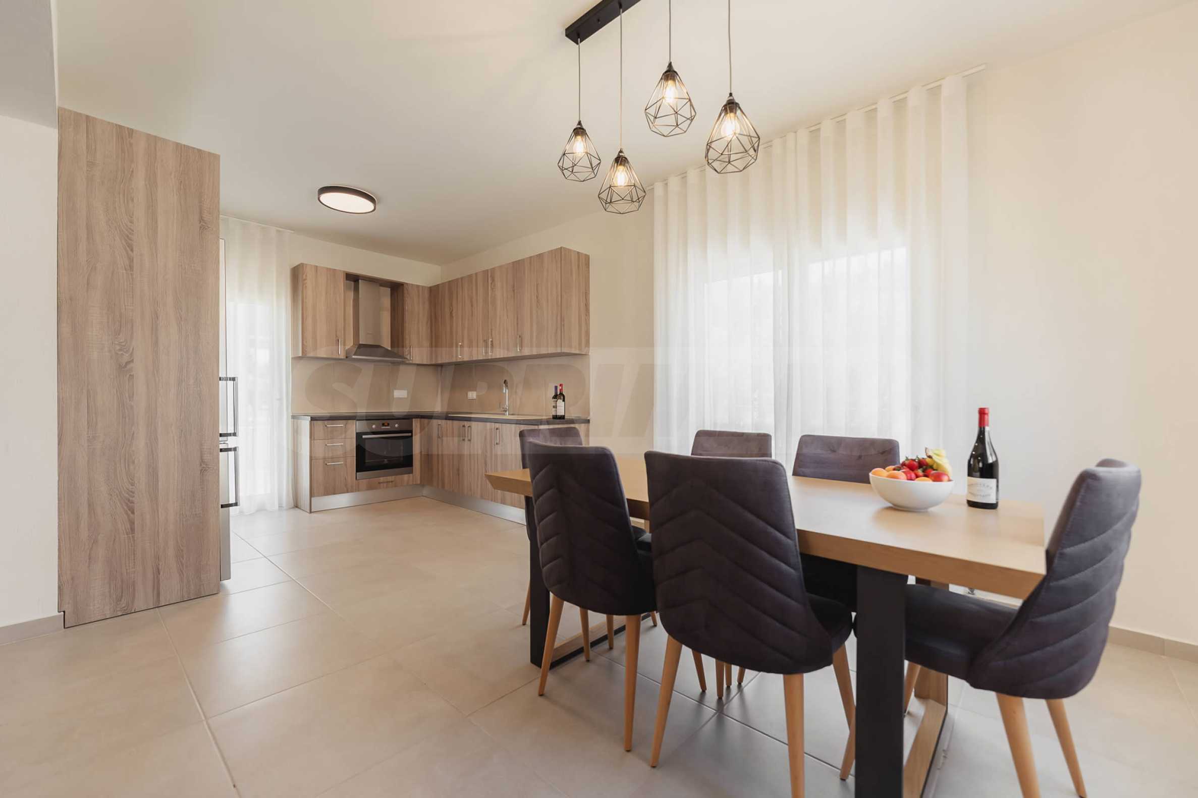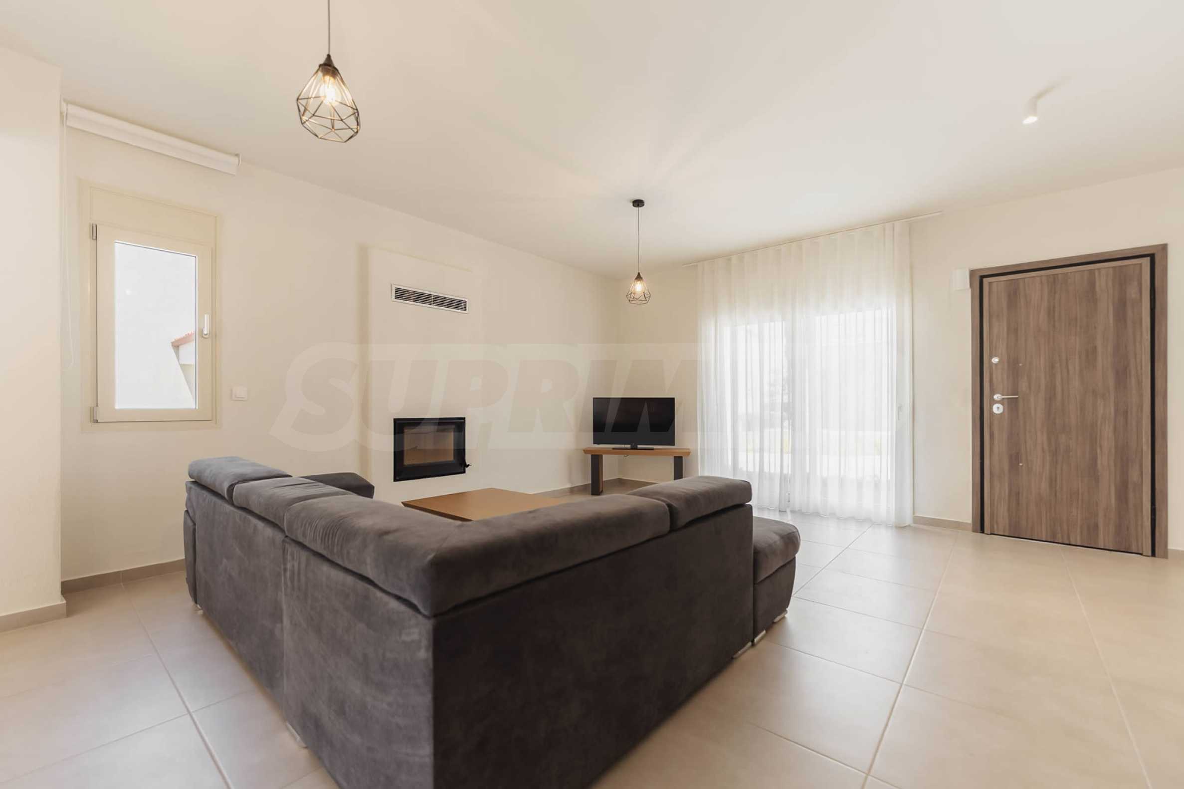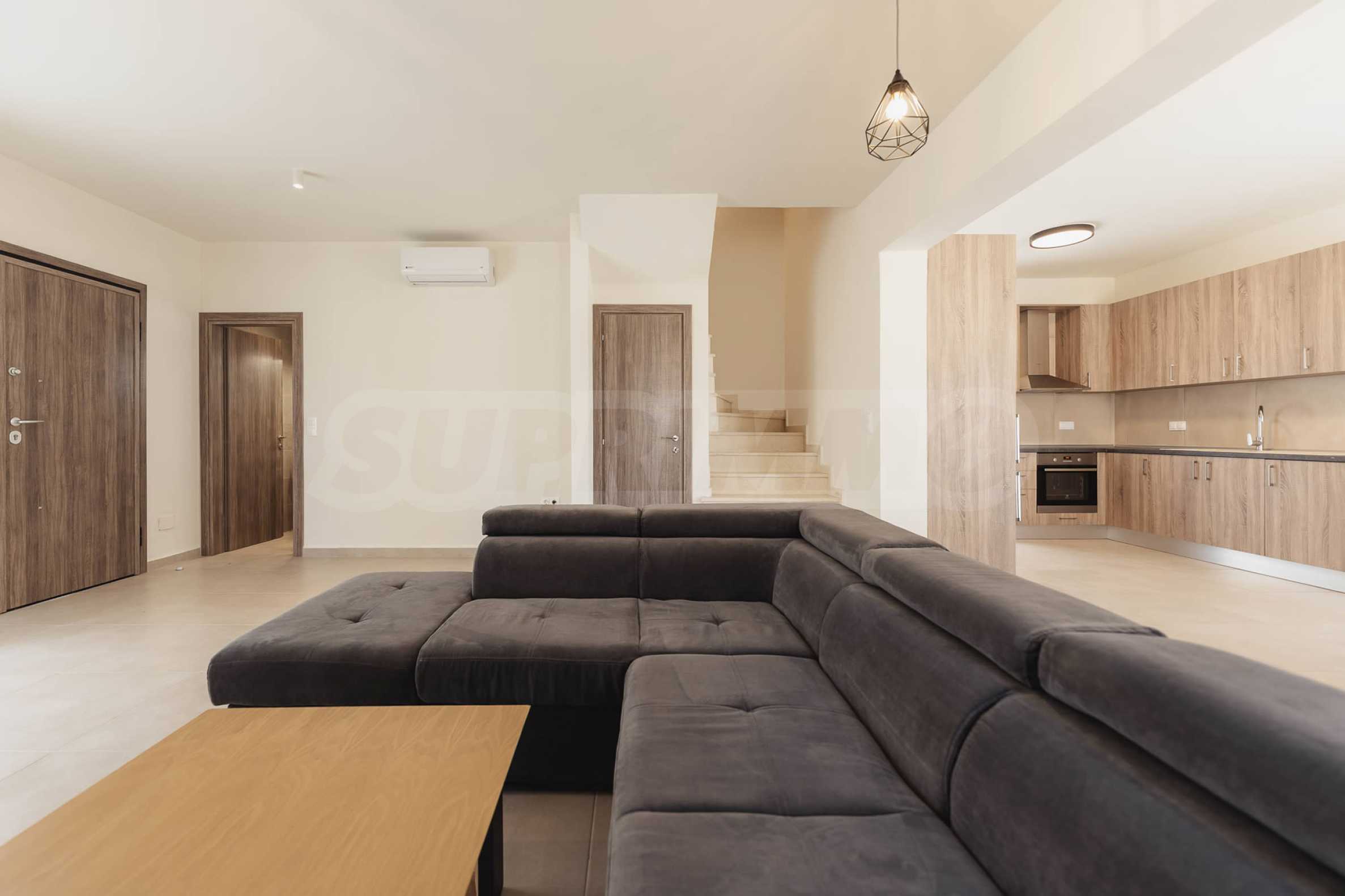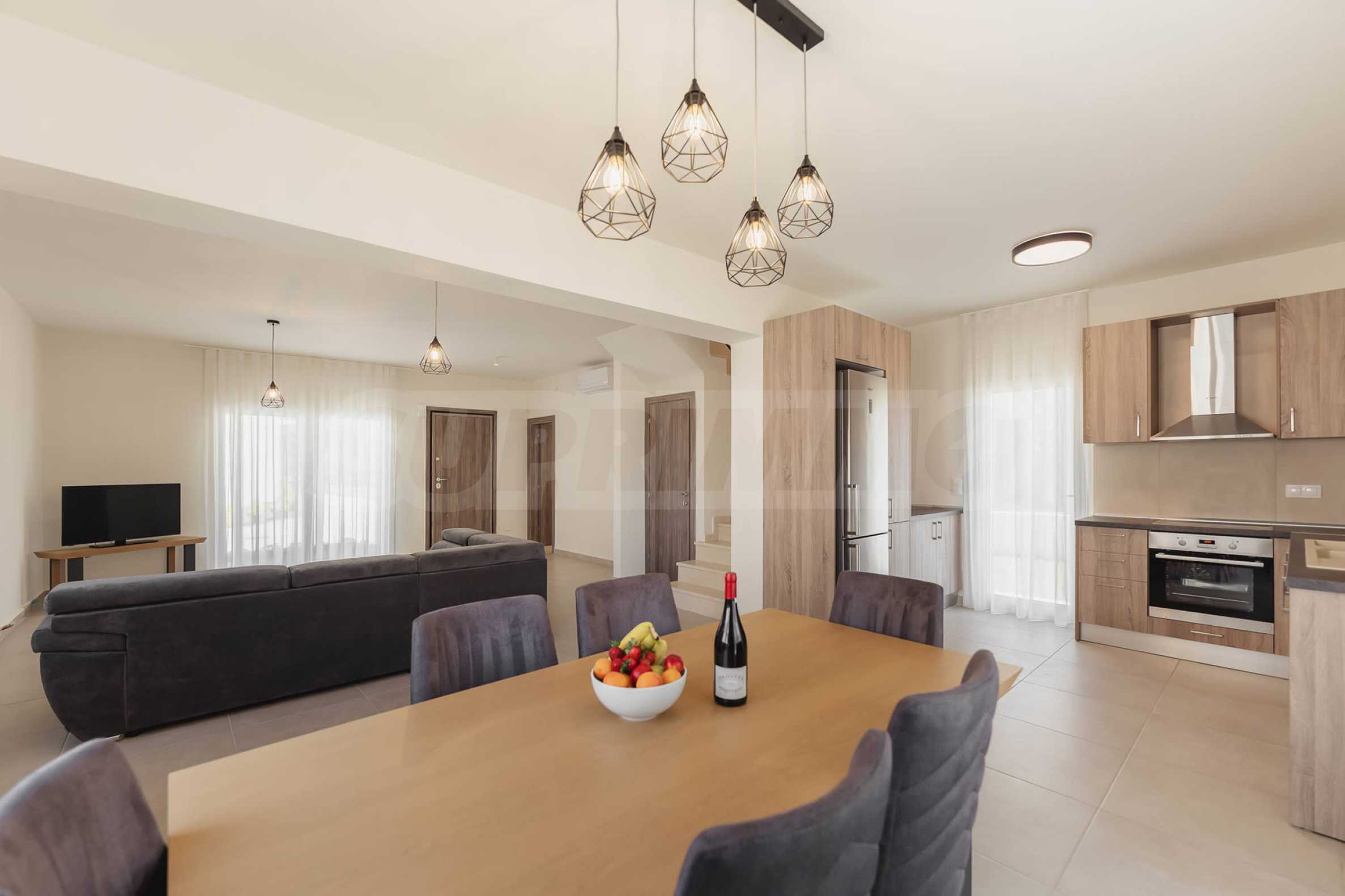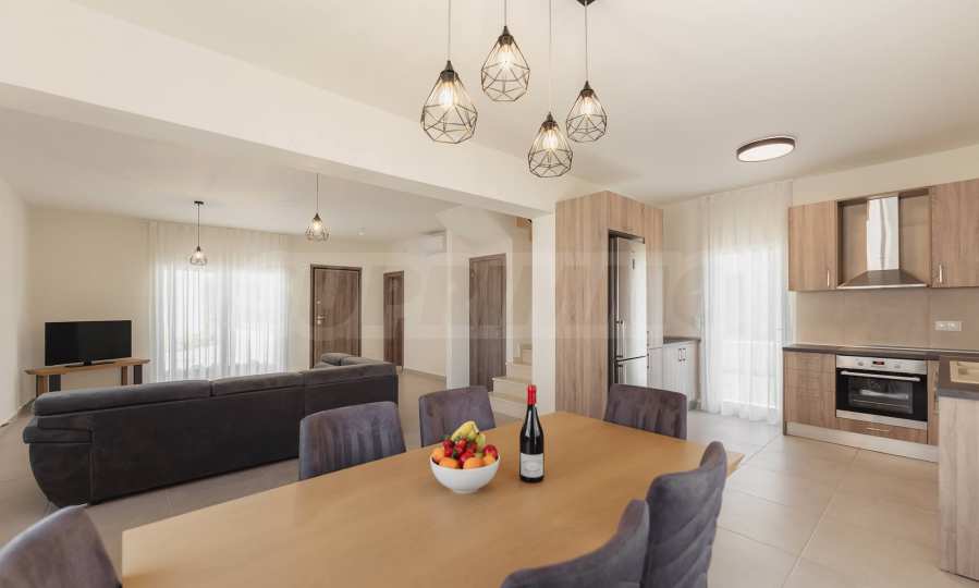 This newly built house with an area of 182 m2 offers modern comfort and style a few steps from the seashore. The house consists of a spacious living area with a kitchenette and a dining room, which creates an ideal space for family gatherings and pleasant evenings.